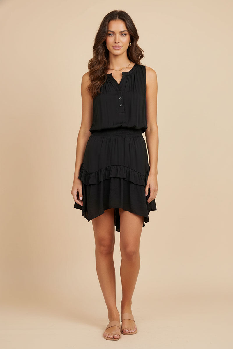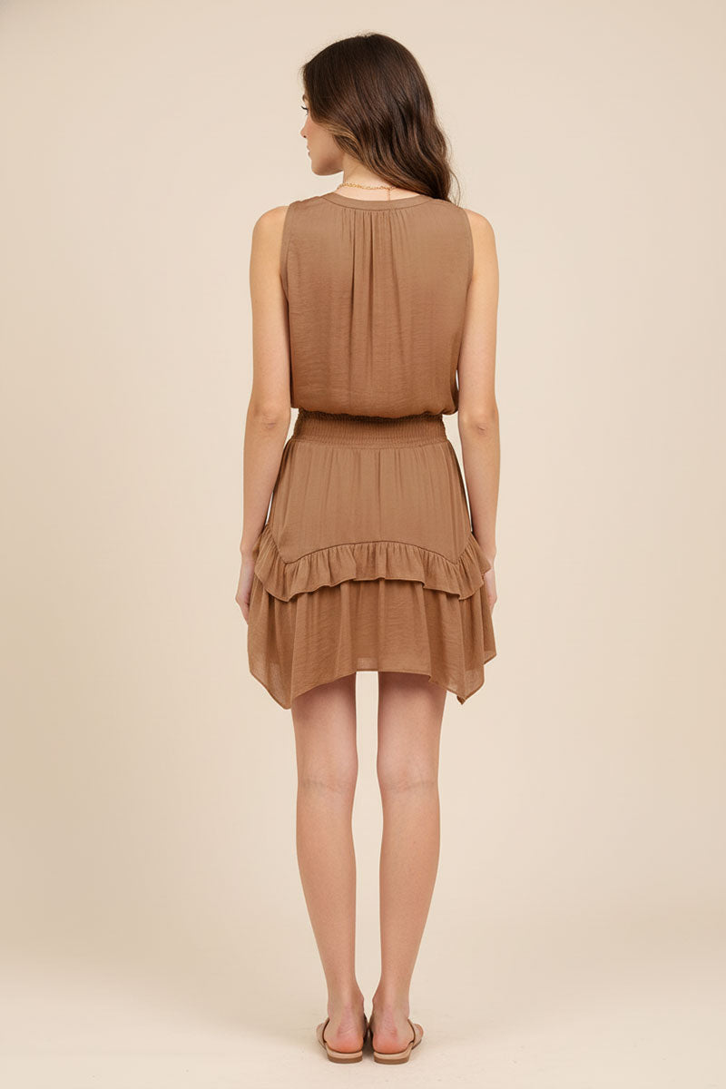 Asymmetrical Mini Dress With Smocked Waist