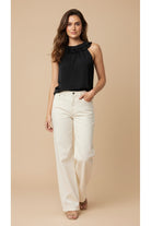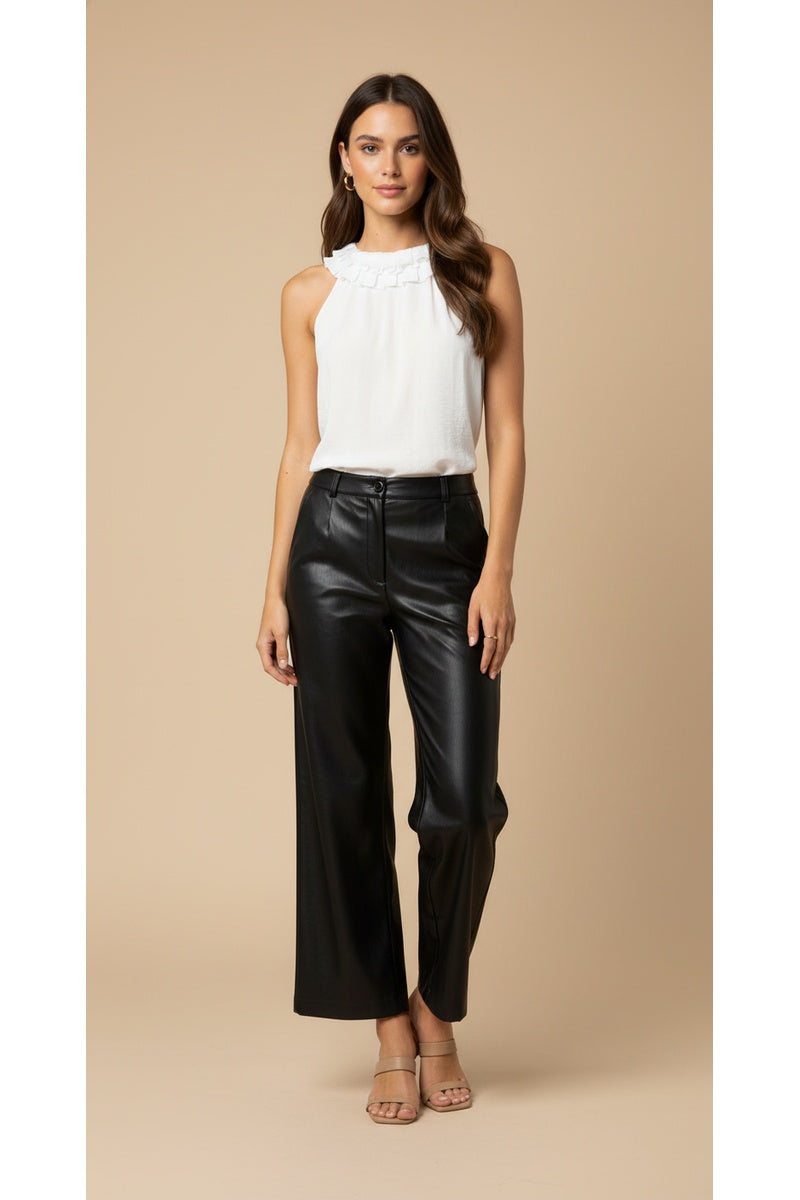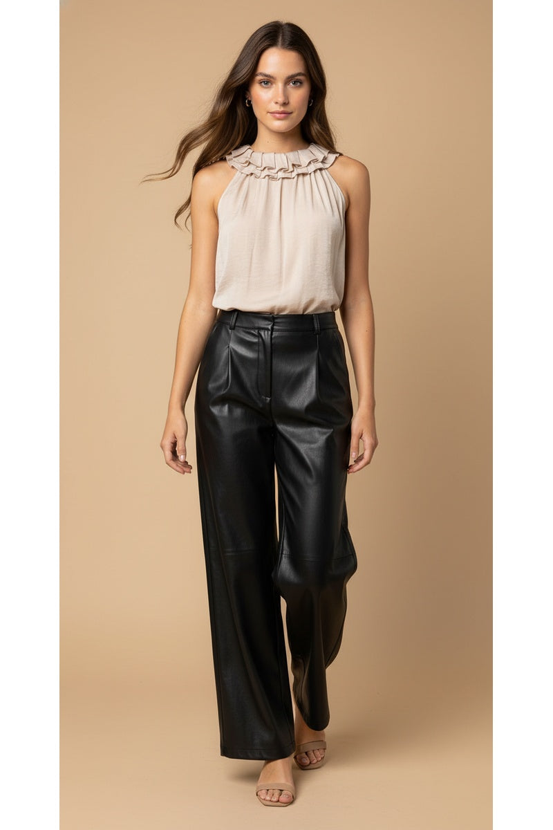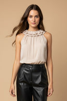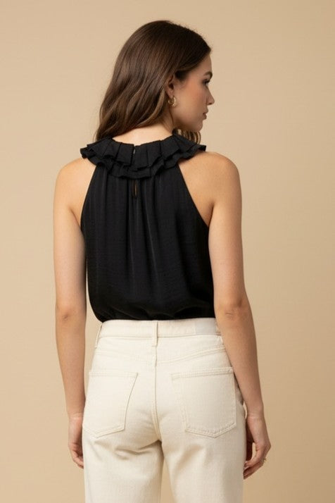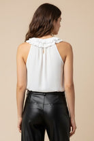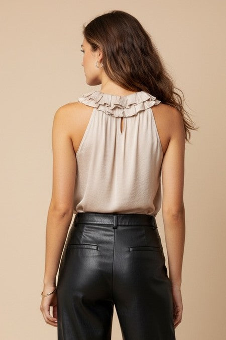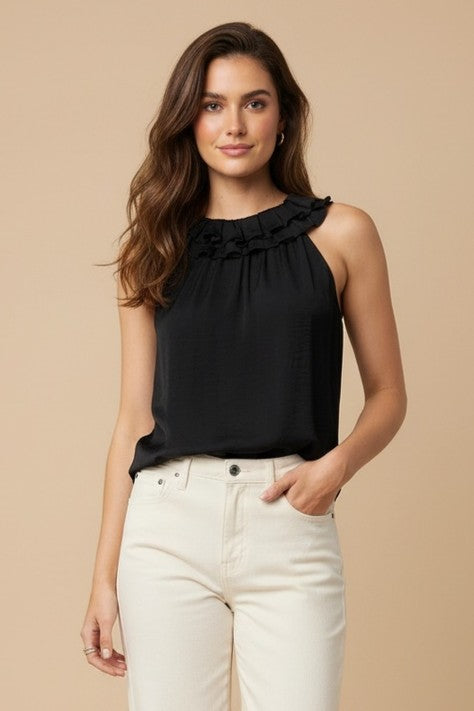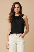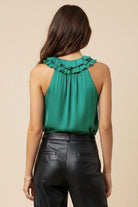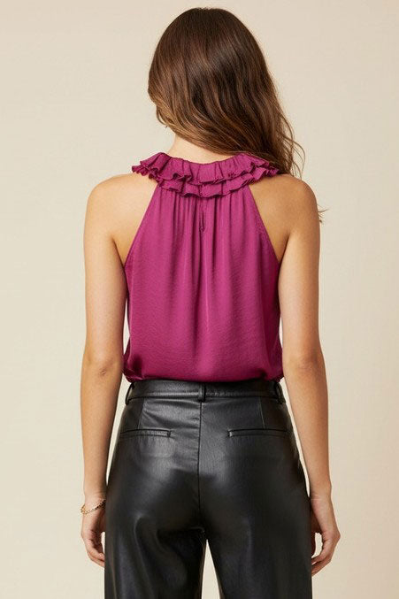 Introducing Naked Zebra's Ruffle Neck Satin Tank, a perfect mix of elegance and modern style. This tank top features a charming ruffle neckline and a luxurious satin finish, crafted from our high-quality polyester blend. Available in a wide range of vibrant colors, it adds a touch of sophistication to any outfit.