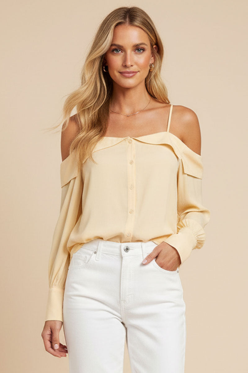 Tencel Button Down Shirt With Shirred Cap Sleeve