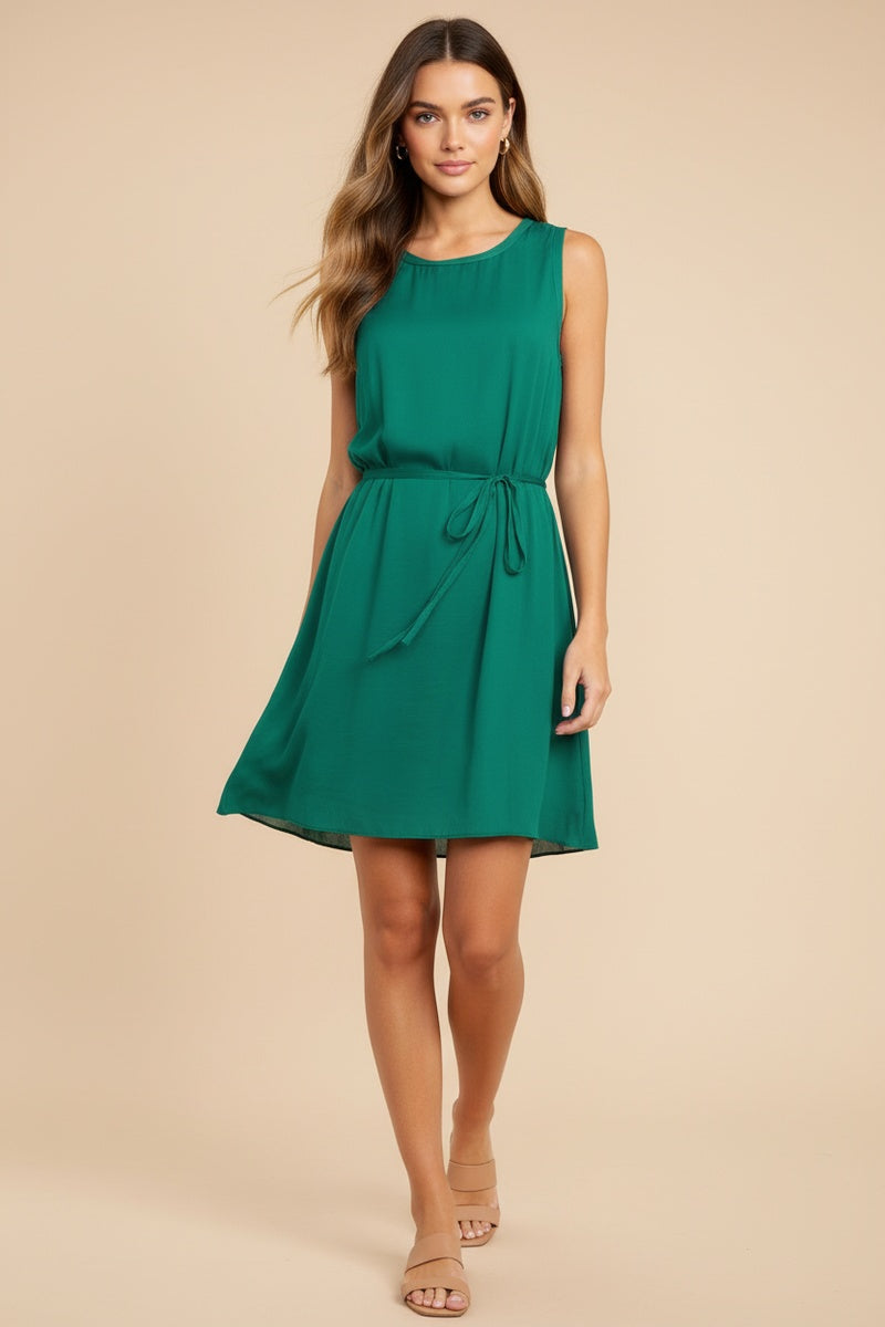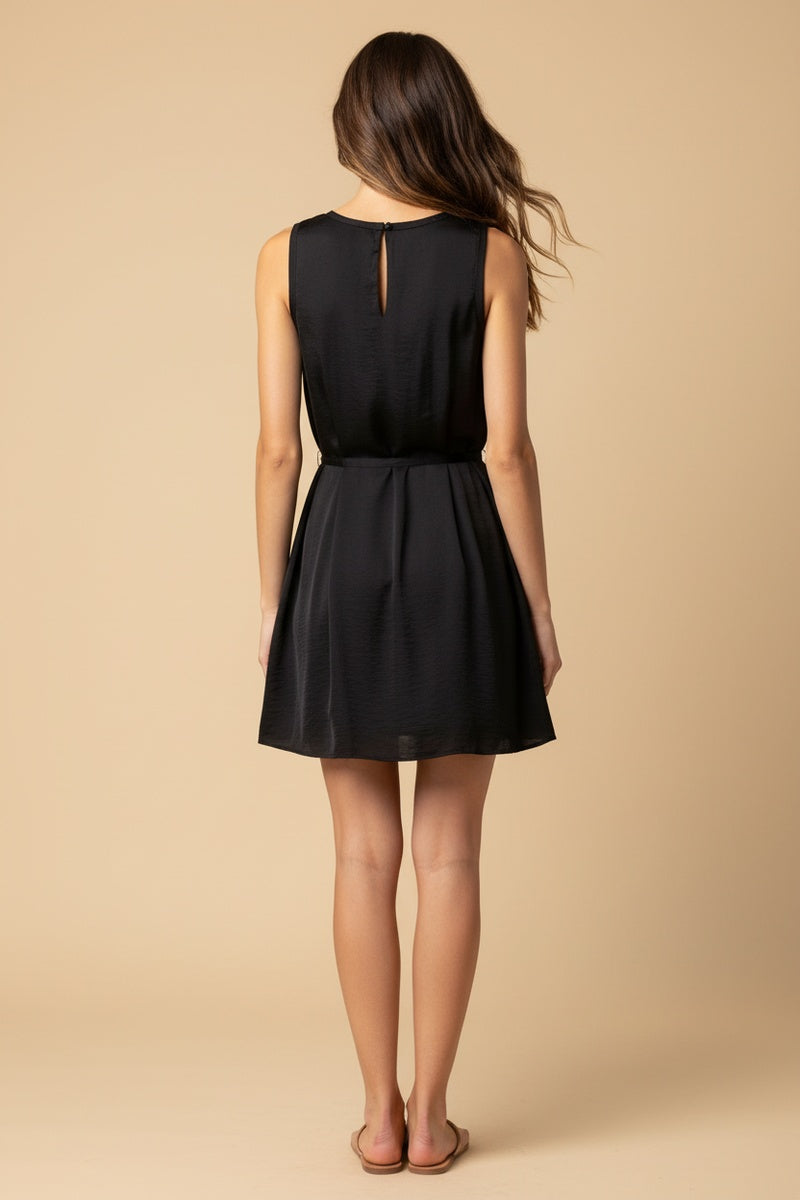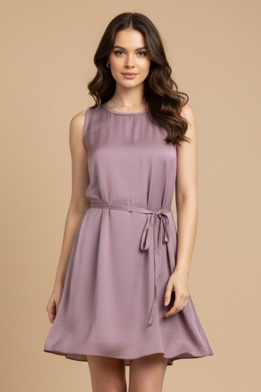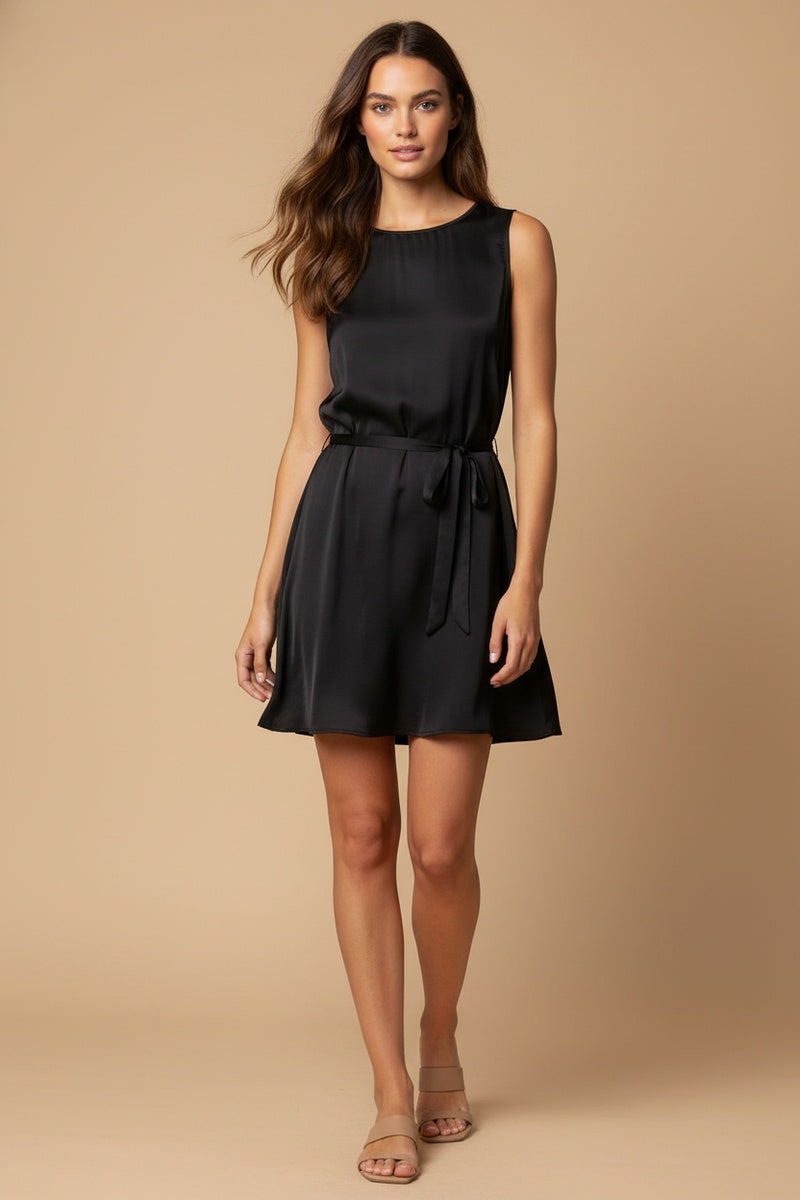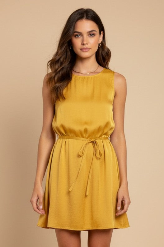 Silky Sleeveless Mini Dress With Waist Tie