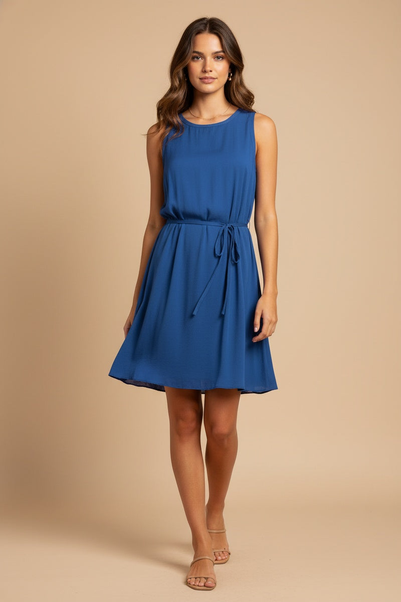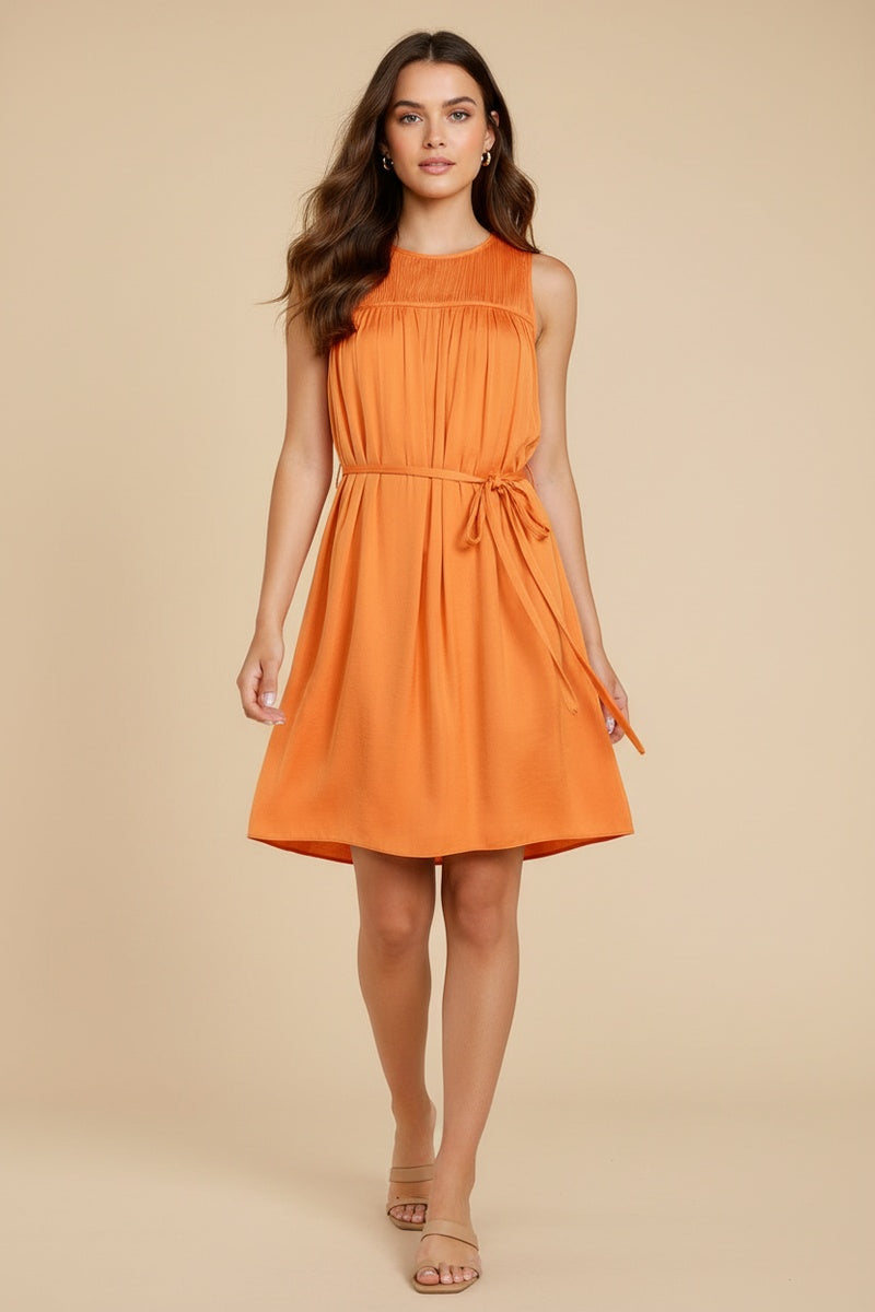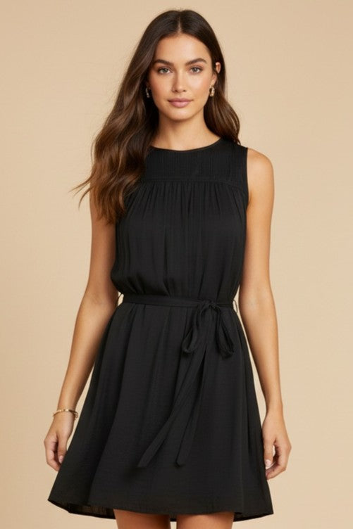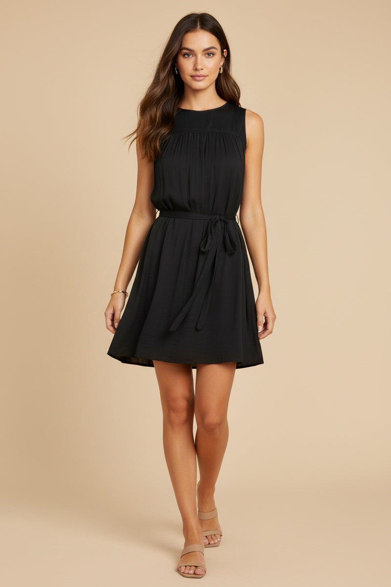Silky Sleeveless Mini Dress With Waist Tie