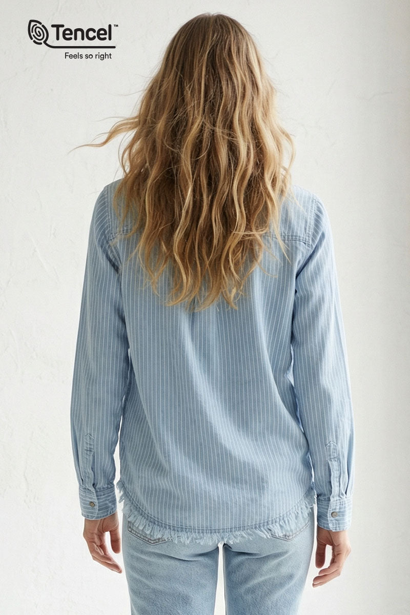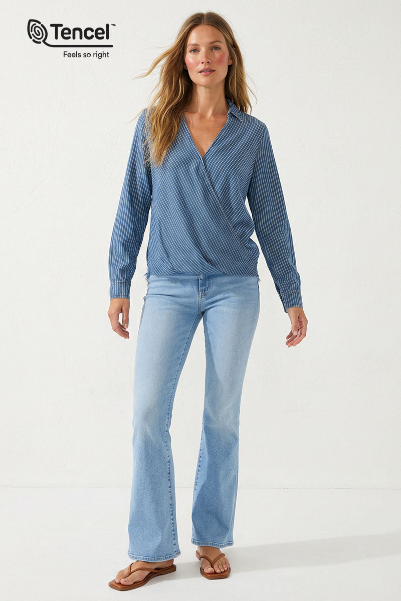 Surplice Collar Blouse With Back Frayed Detail