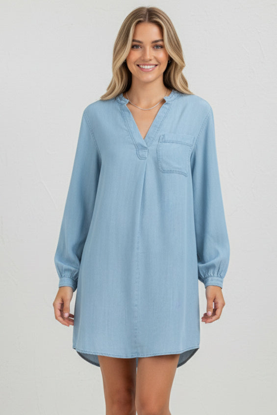 Tencel Chambray Dress With Puff Sleeves