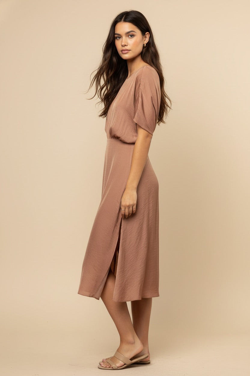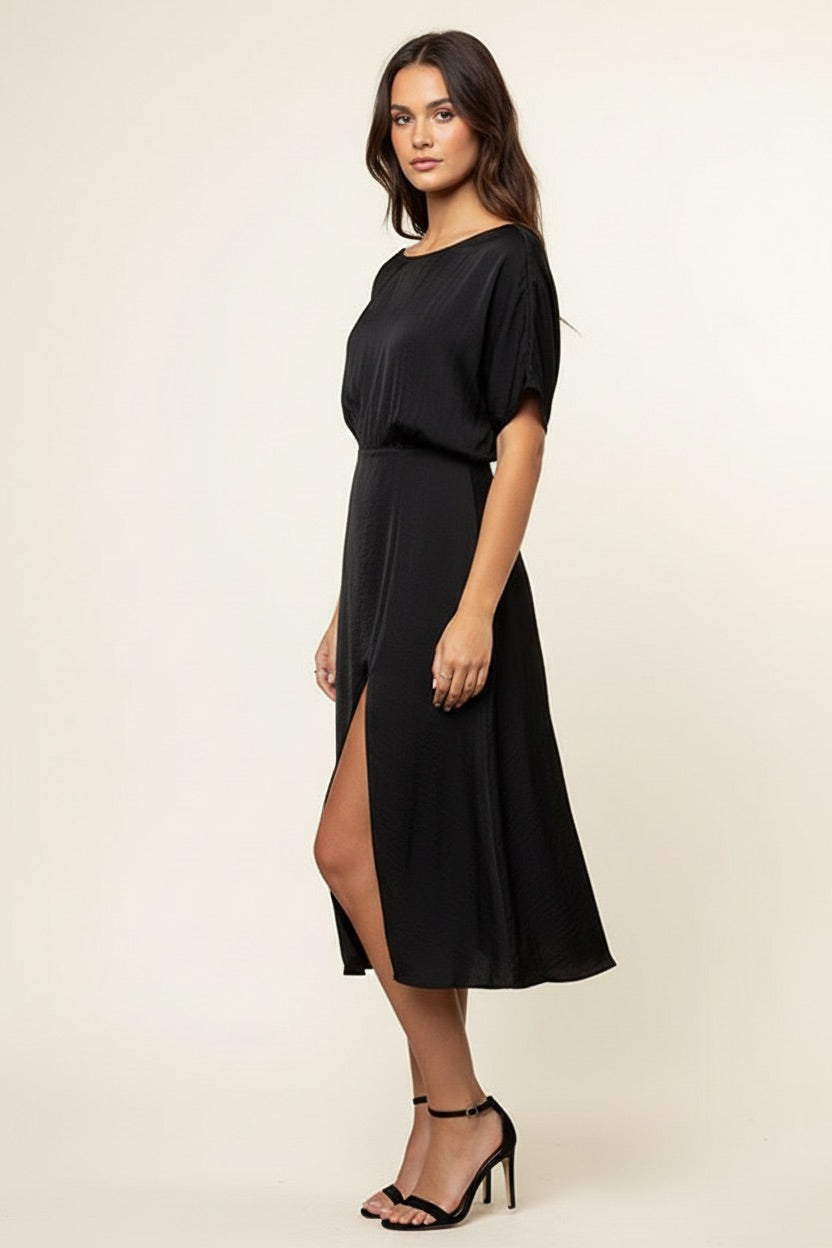 Boat Neck Dress With a Side Slit