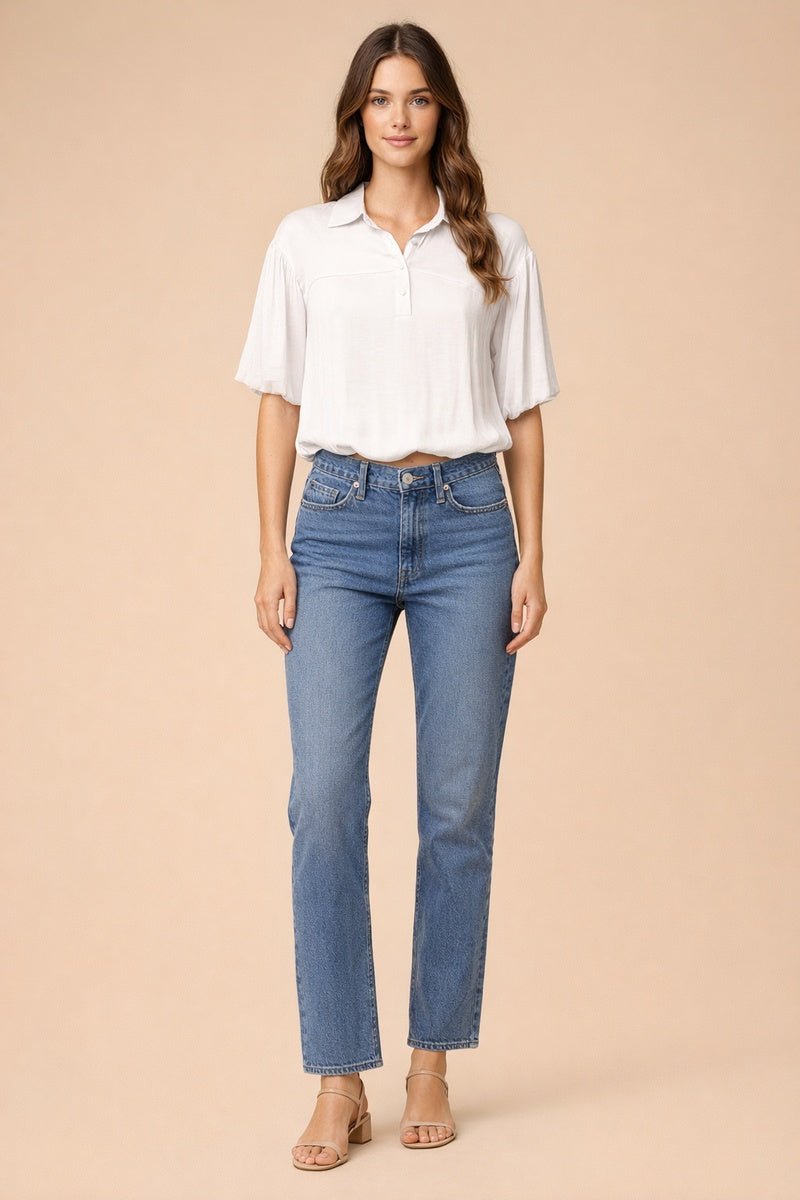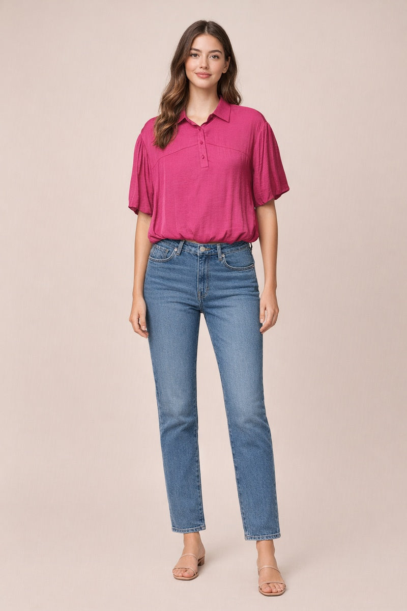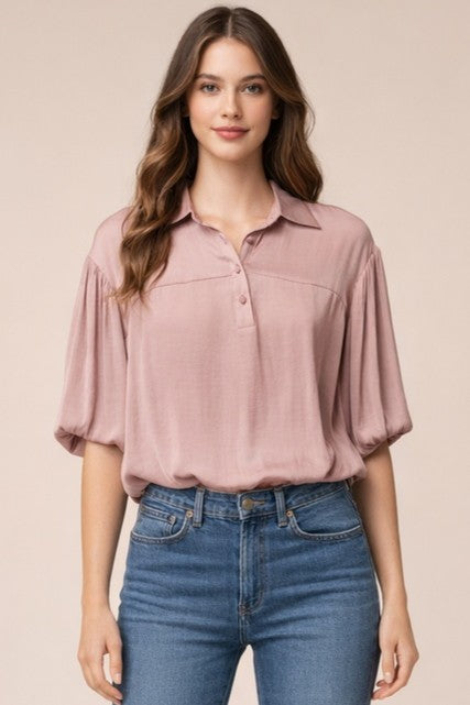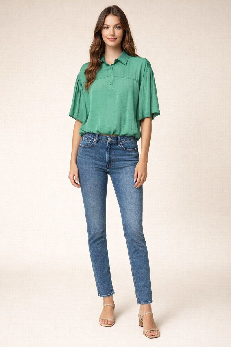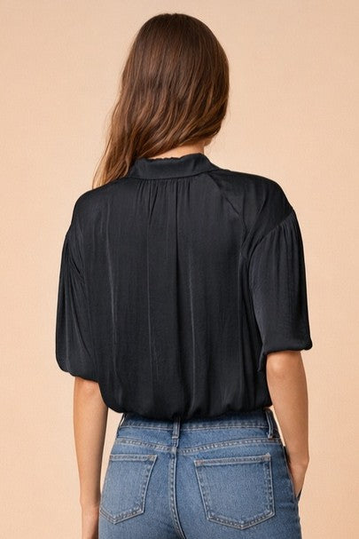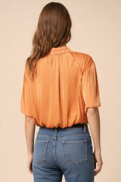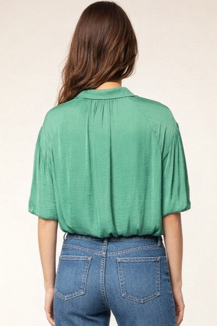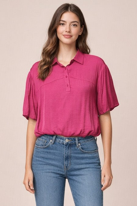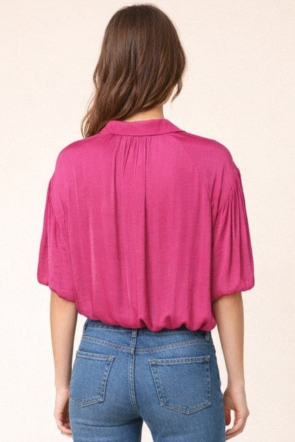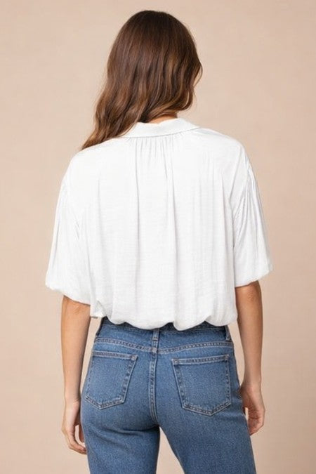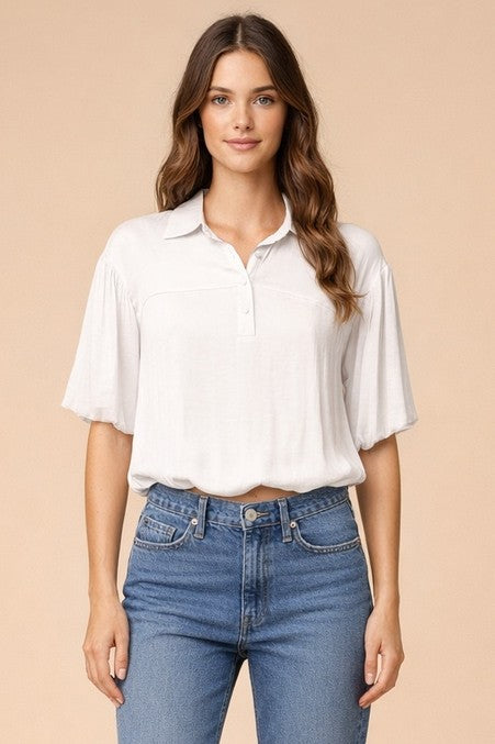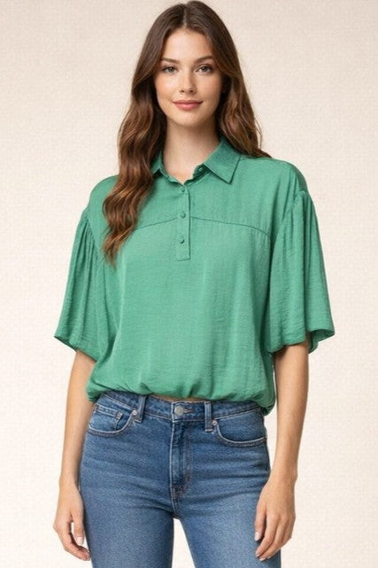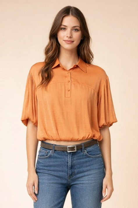 Bubble Hem Blouse With Button Placket