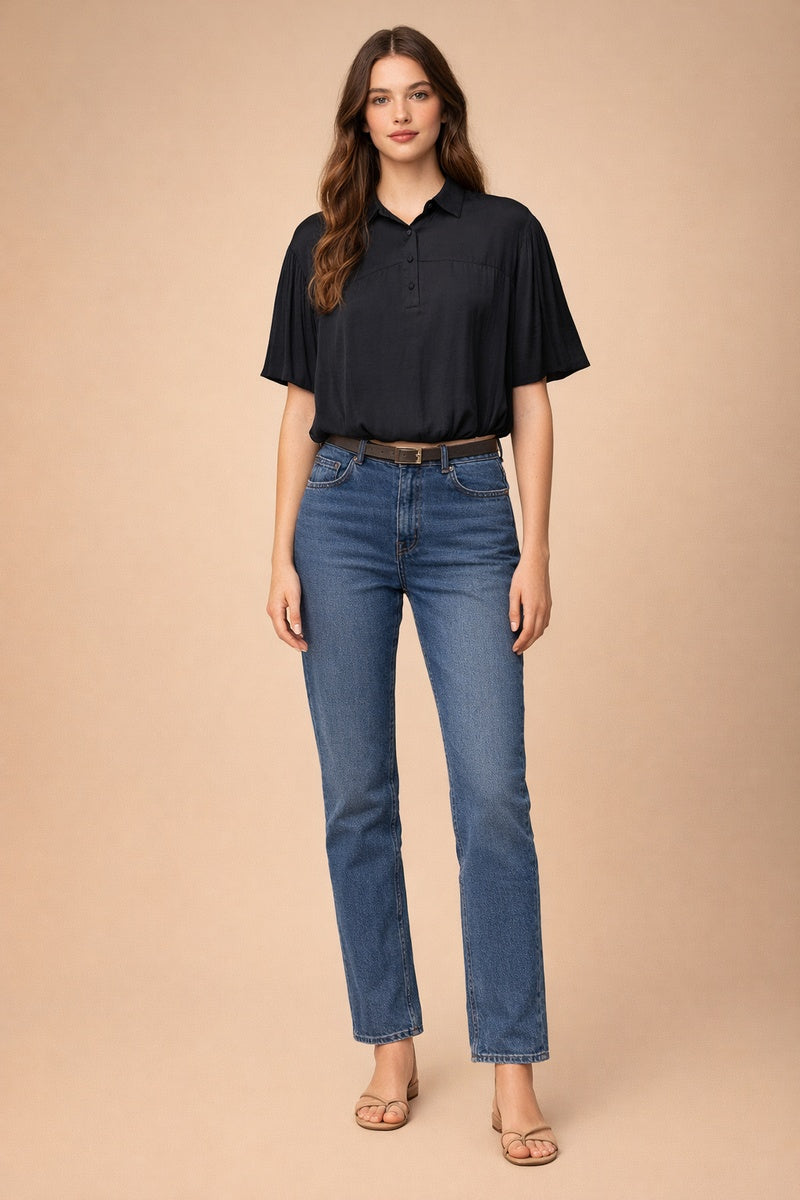 Short Sleeve Blouse With Half Placket Detail