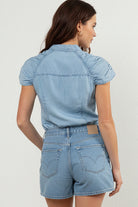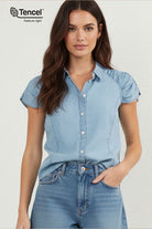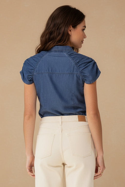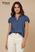 Tencel Button Down Shirt With Shirred Cap Sleeve