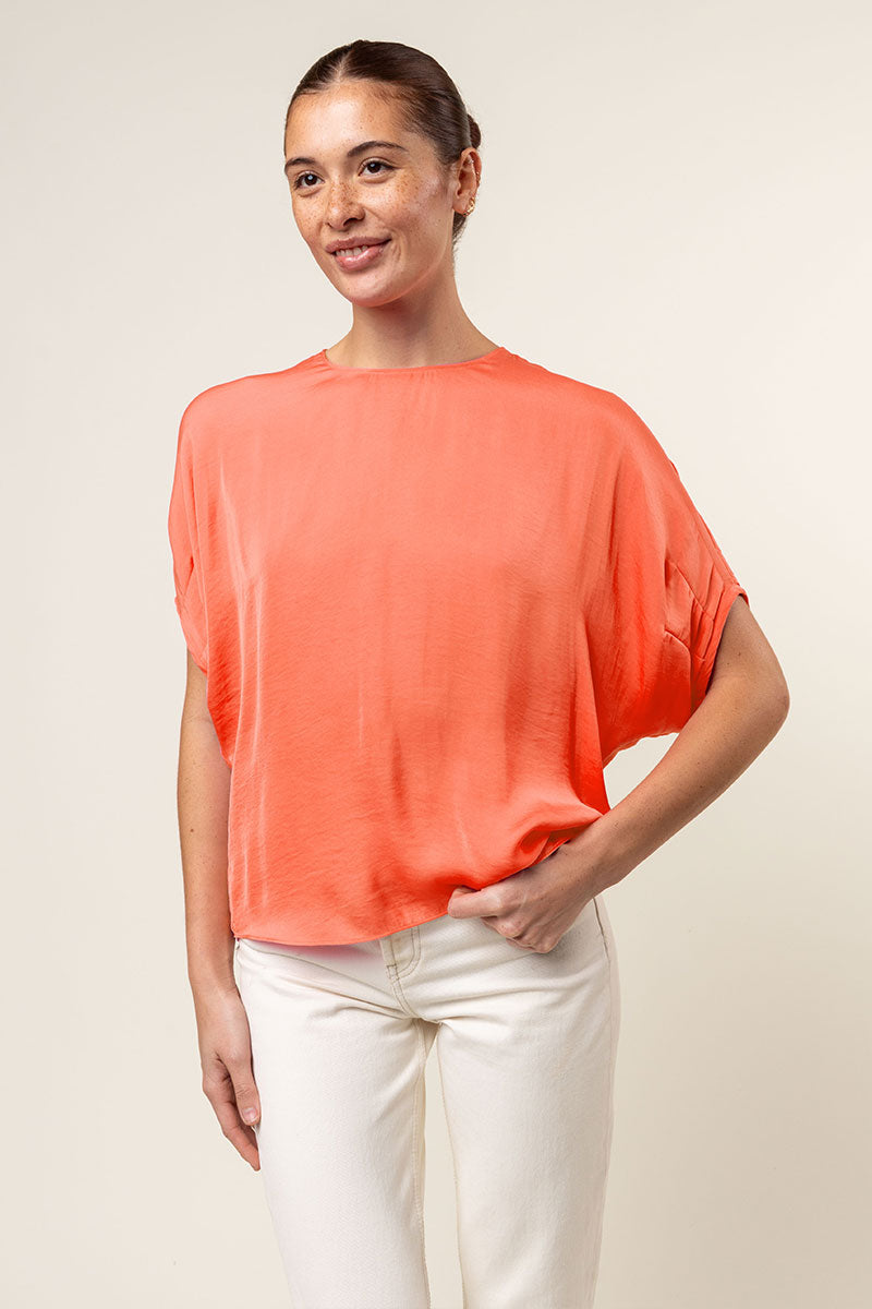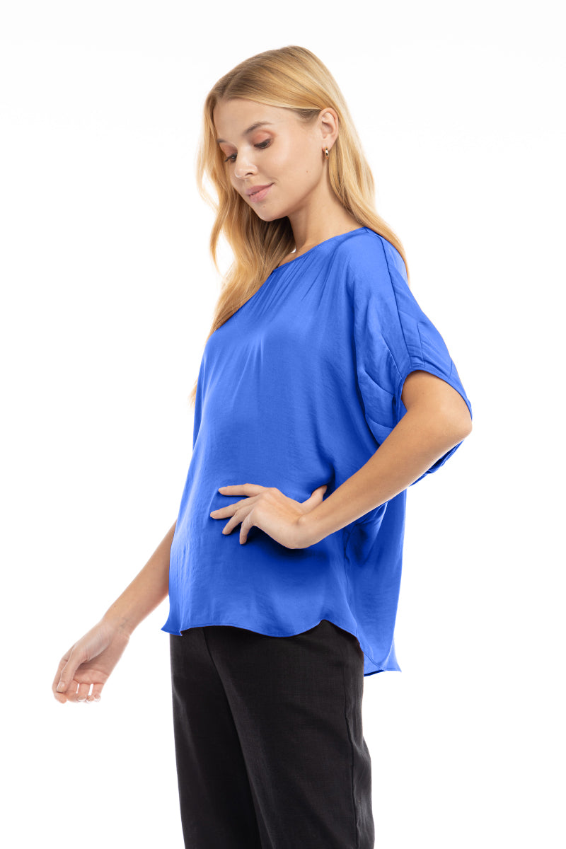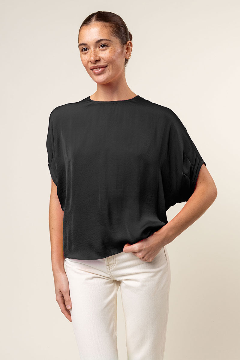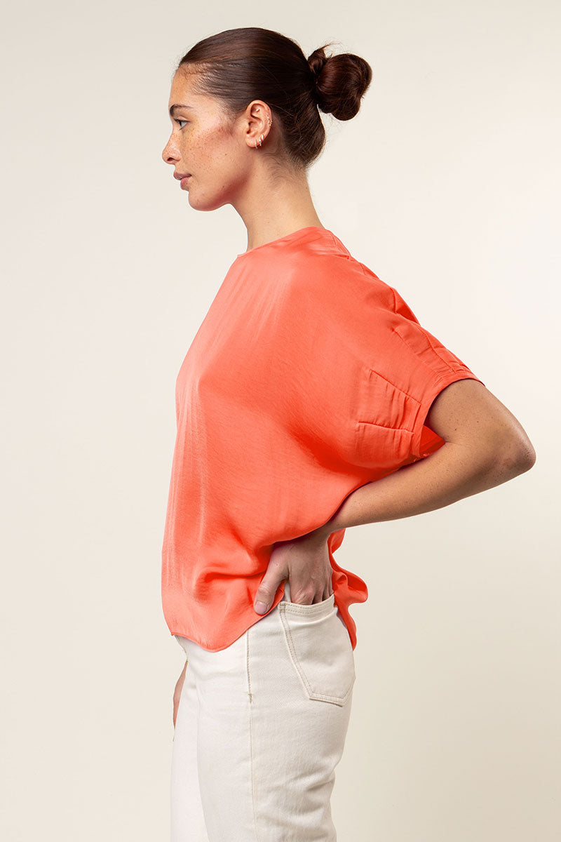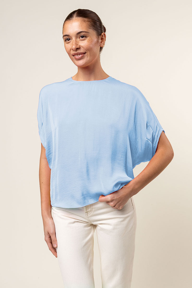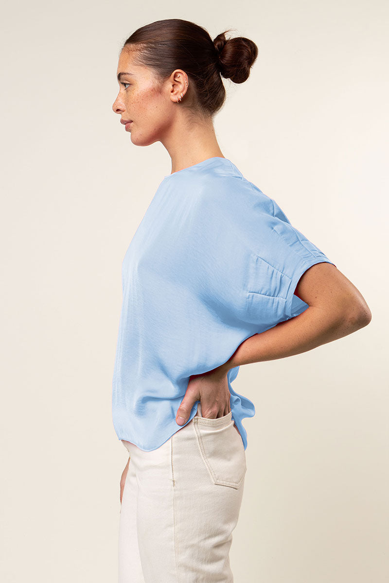 Short Sleeve Tencel™ Blouse With Elastic Cuffs