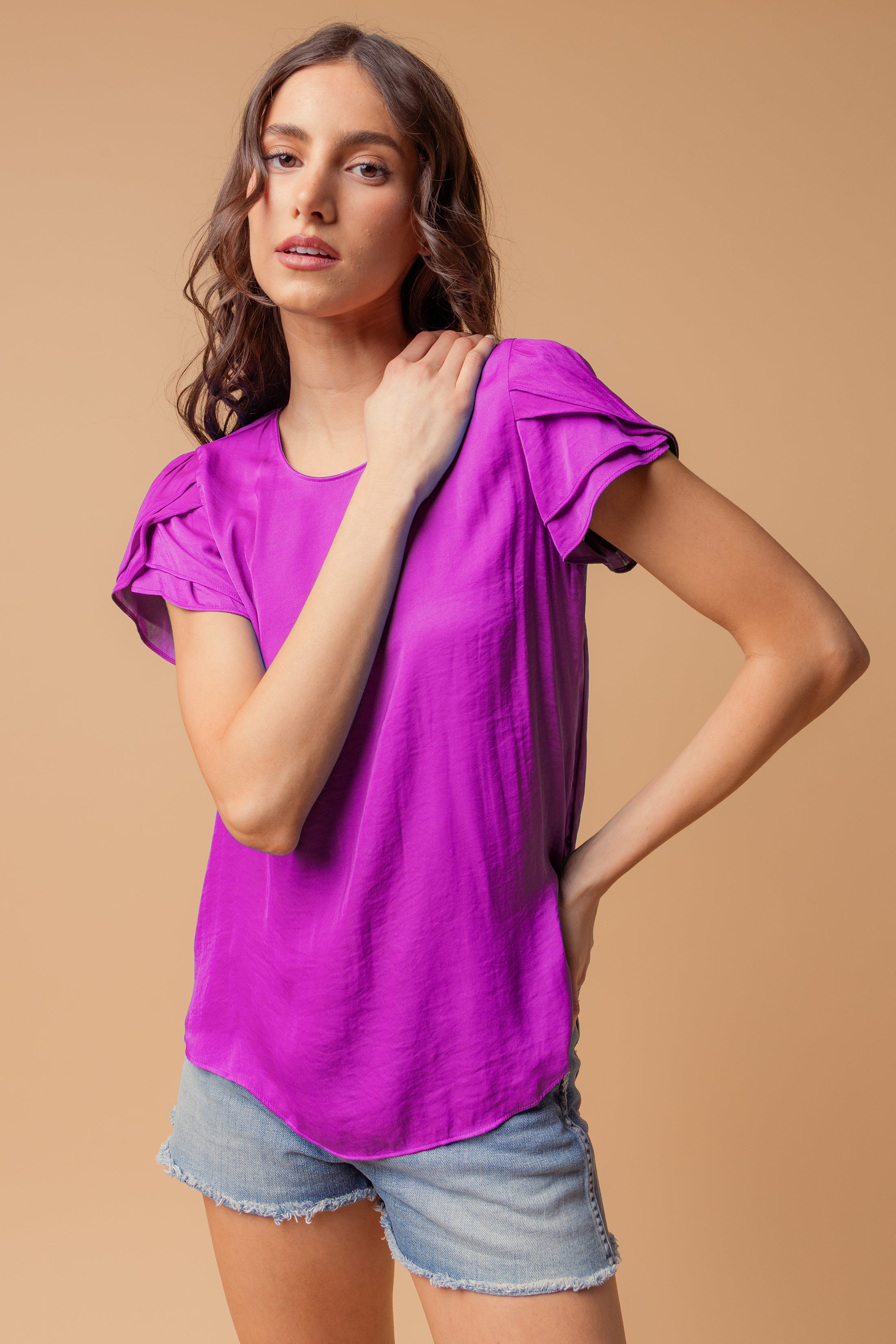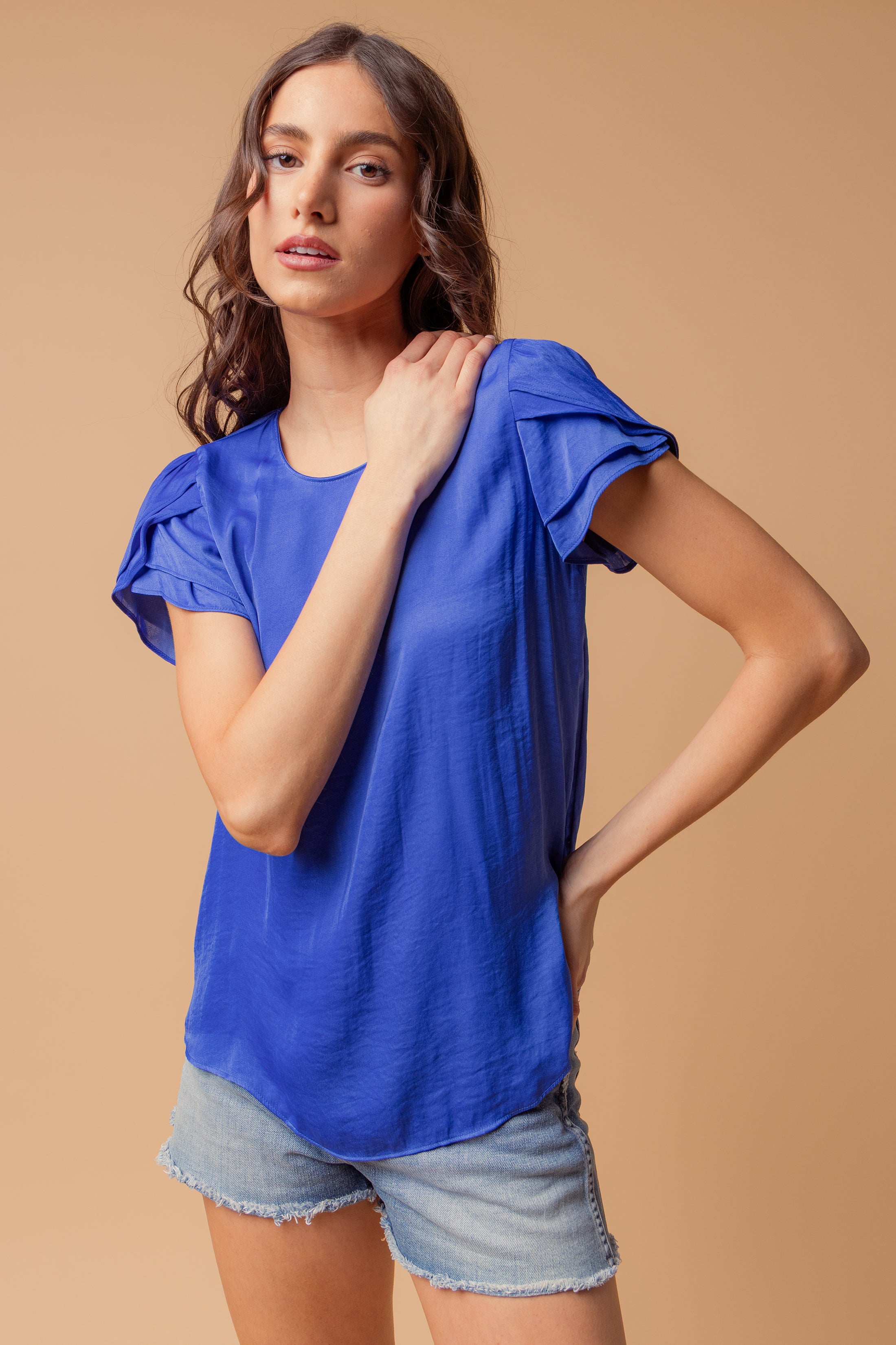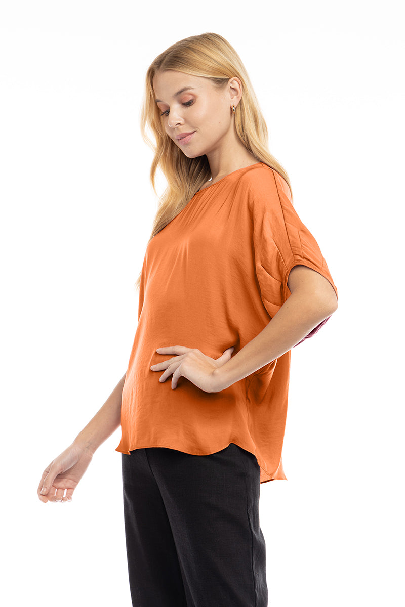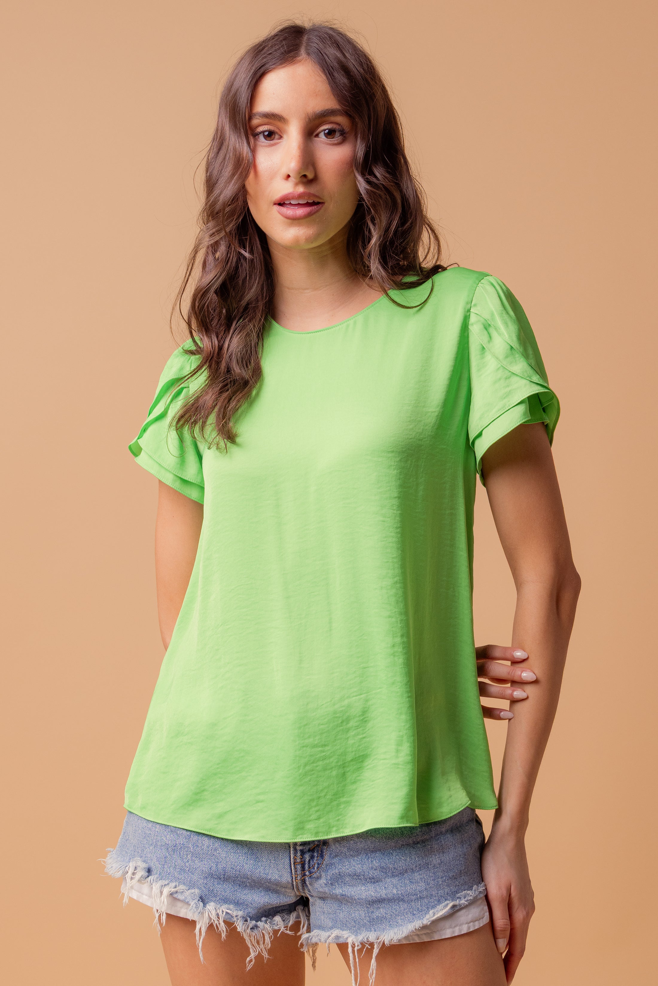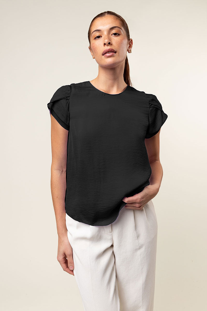 Short Sleeve Tencel™ Blouse With Elastic Cuffs