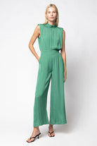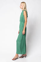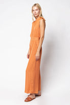 The Wide Leg Jumpsuit with Tie Neck Detail and Shoulder Pads offers a bold and sophisticated style. Featuring a chic tie neck detail and structured shoulder pads, this jumpsuit combines elegance with modern flair. The wide leg silhouette creates a flattering and elongating effect, making it perfect for both formal and casual occasions.