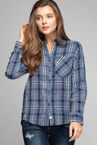 women's long sleeve button down flannel with one pocket