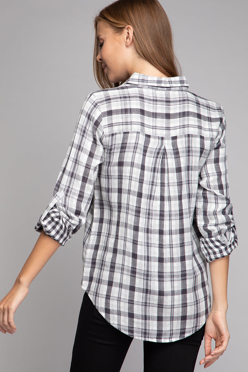 Long Sleeve Button Down Flannel With One Pocket