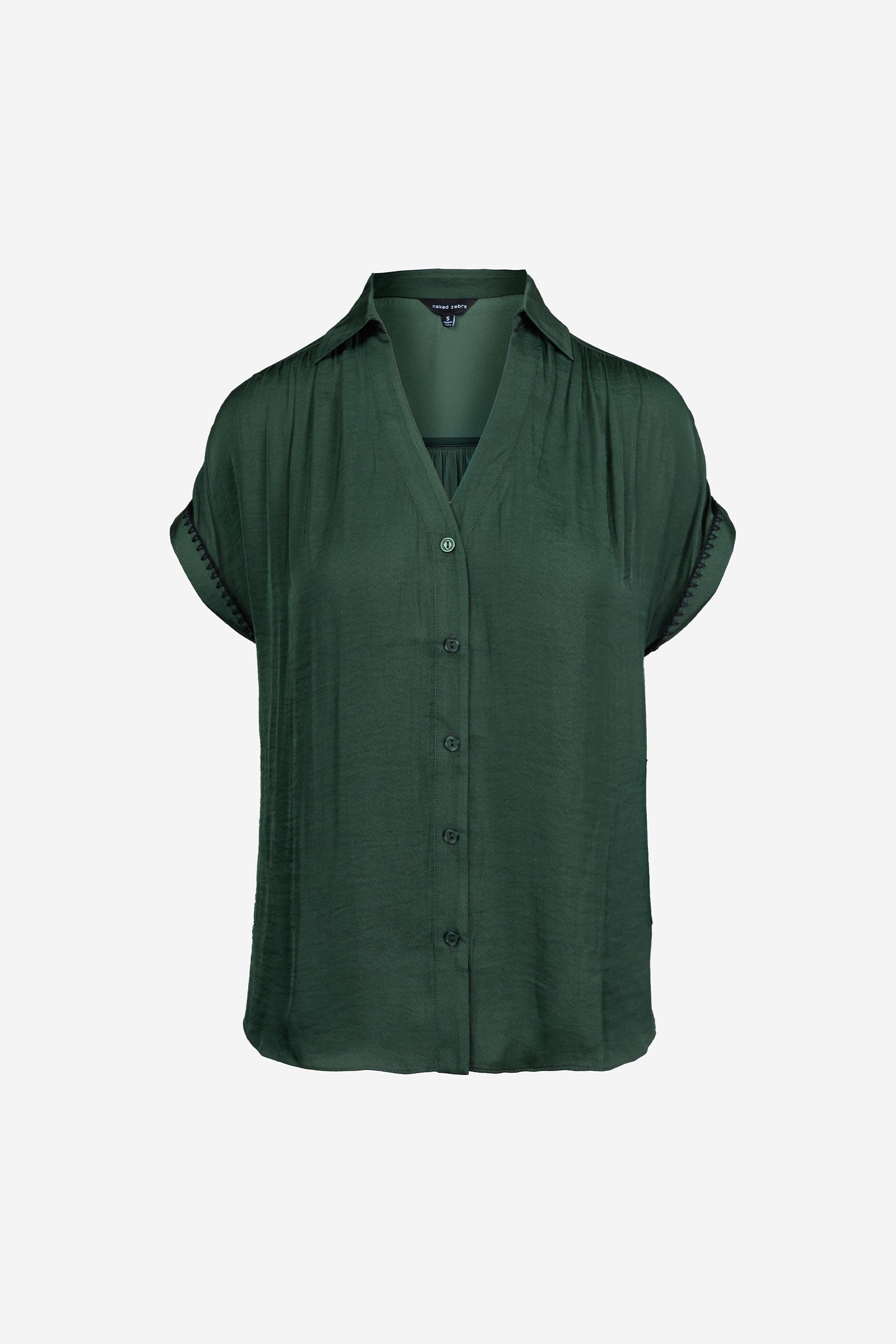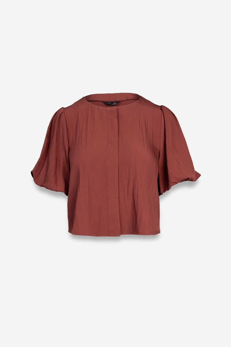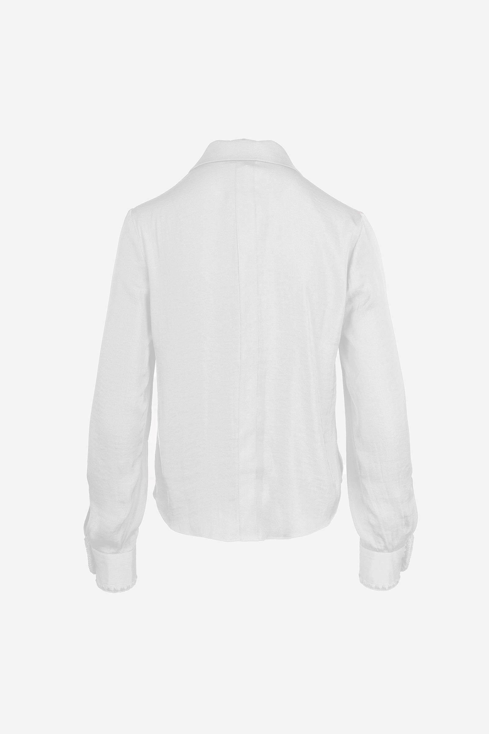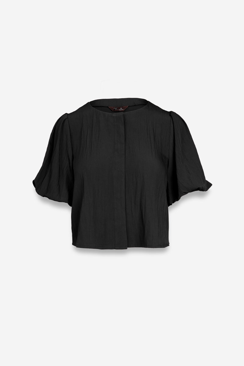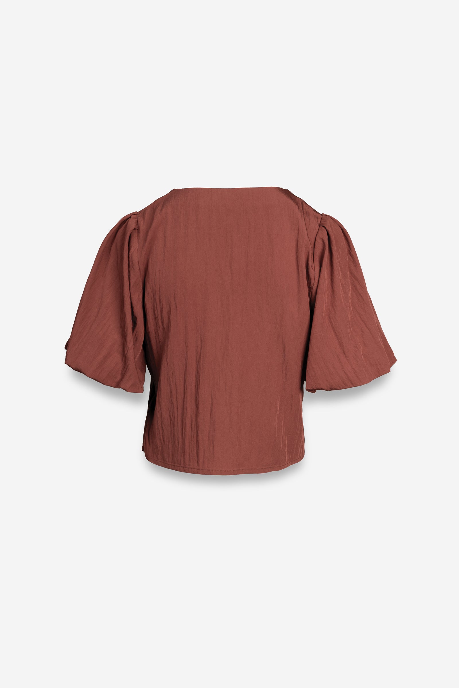 V-Neck Blouse With Bands Sleeve in Crinkle Satin