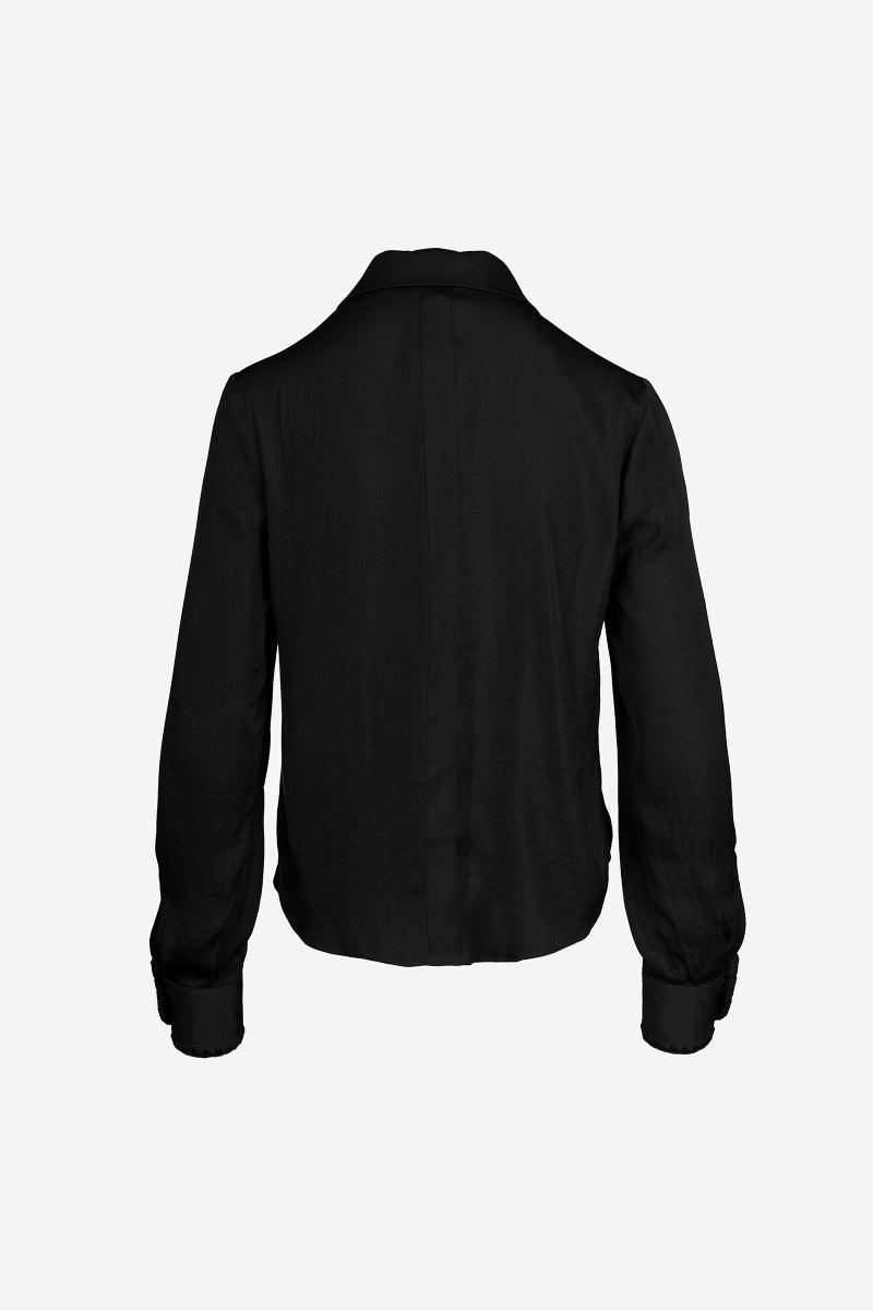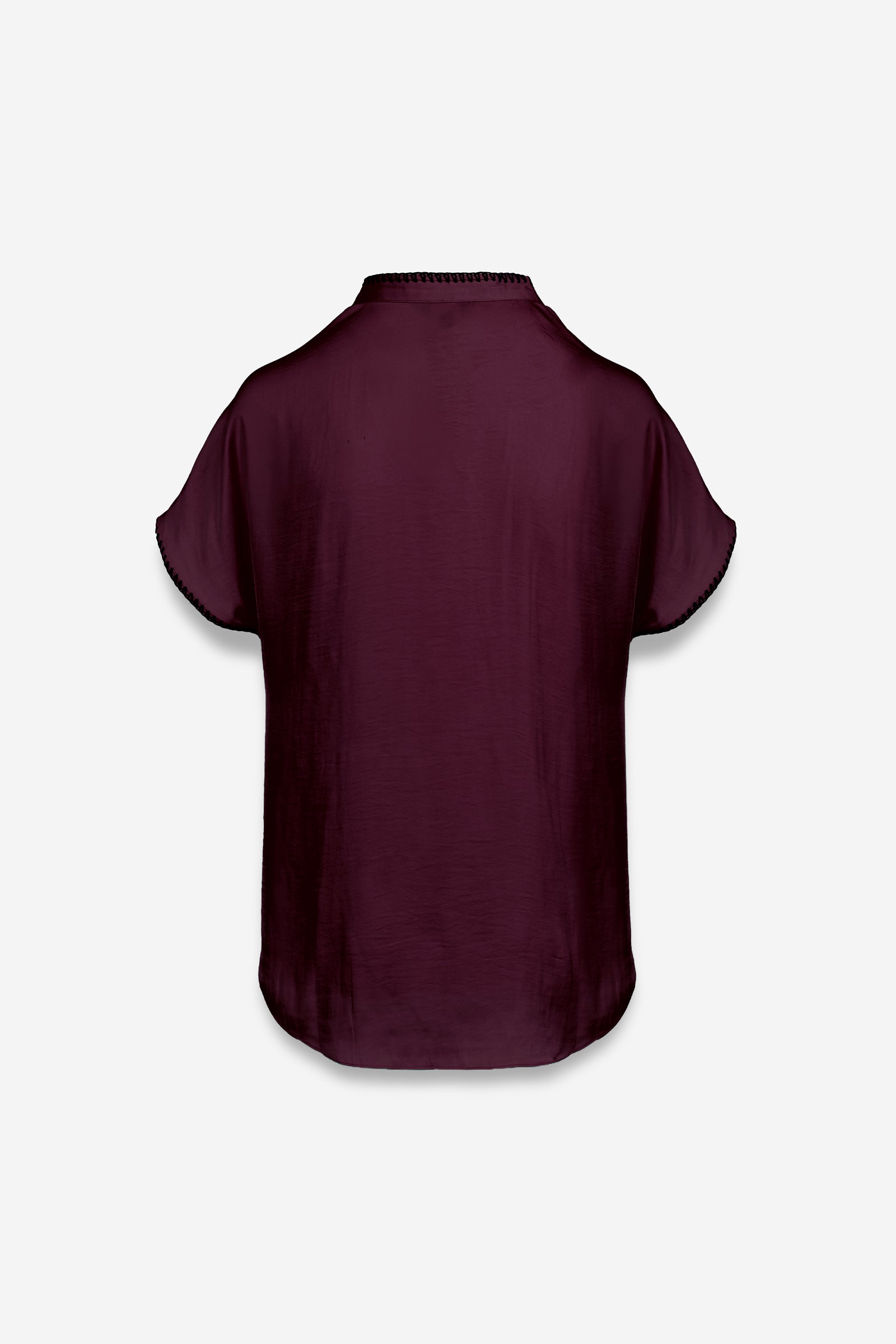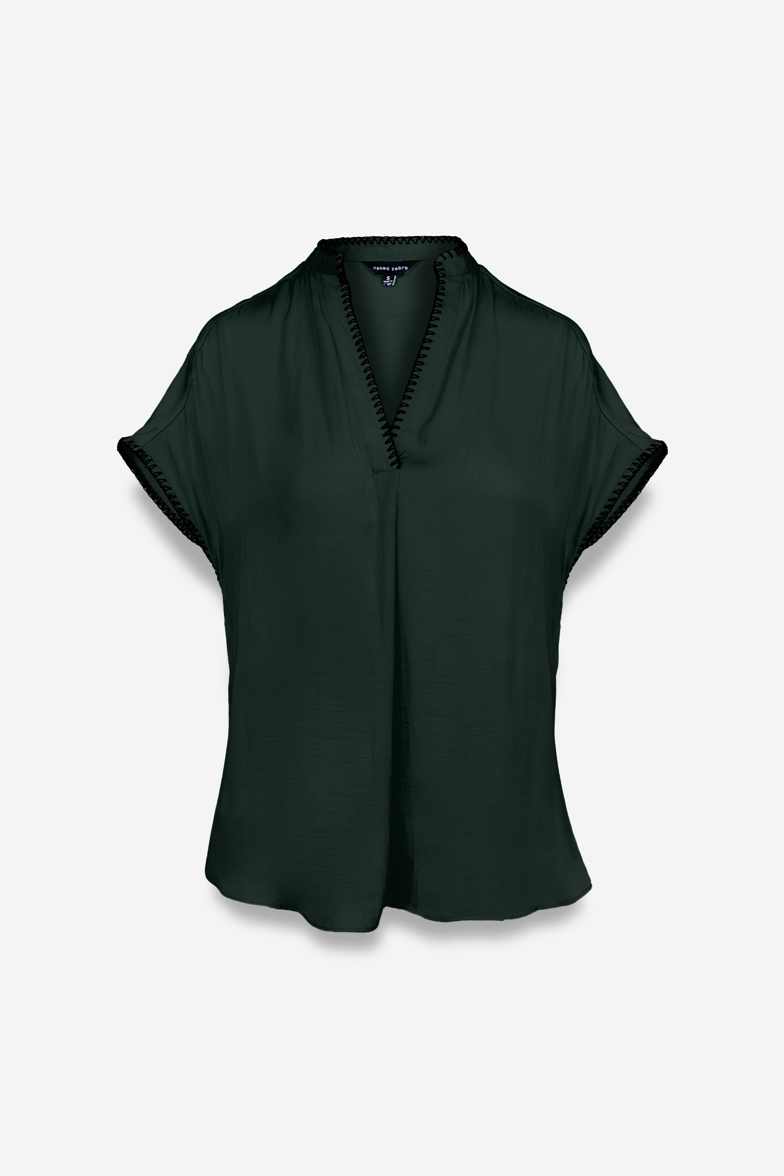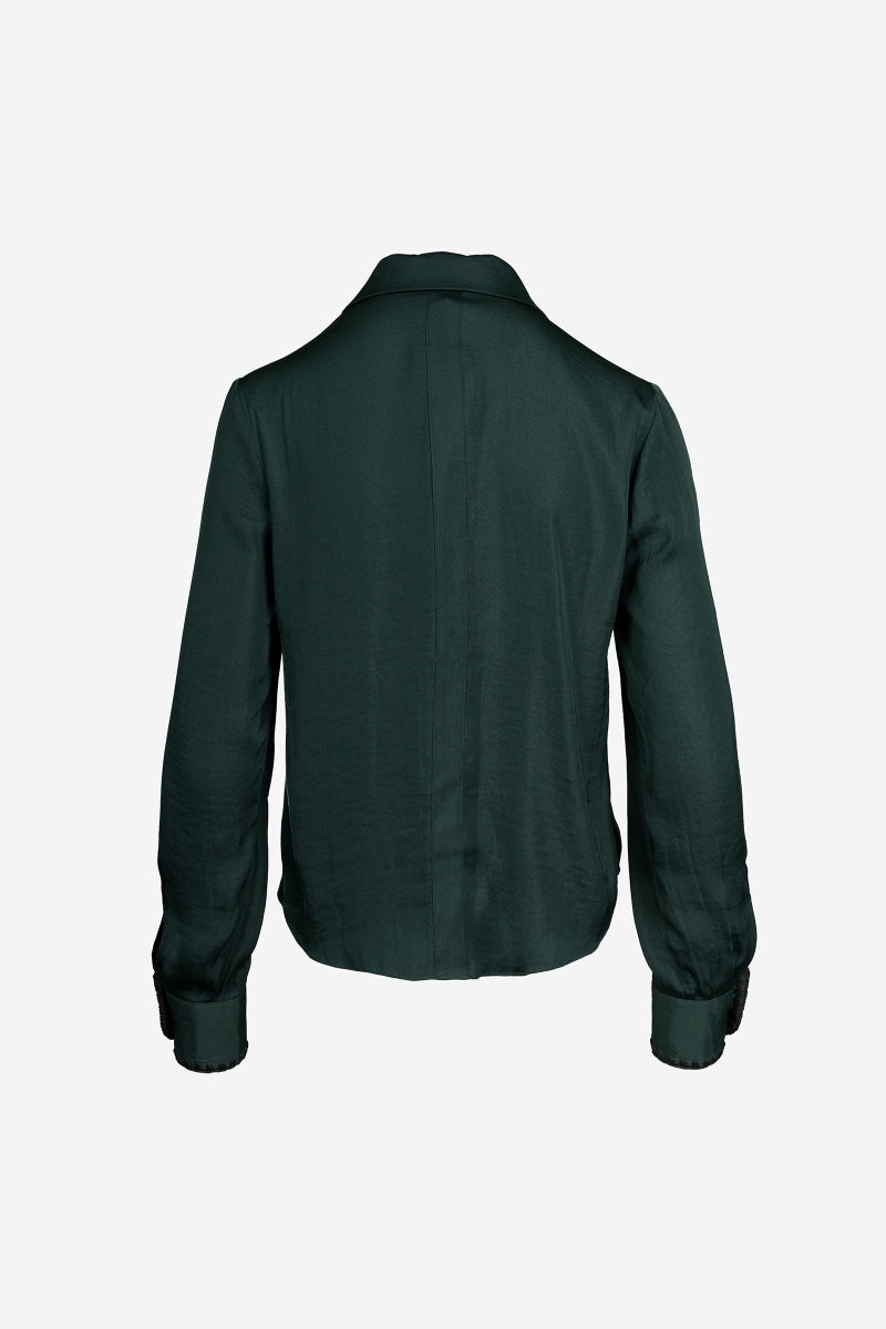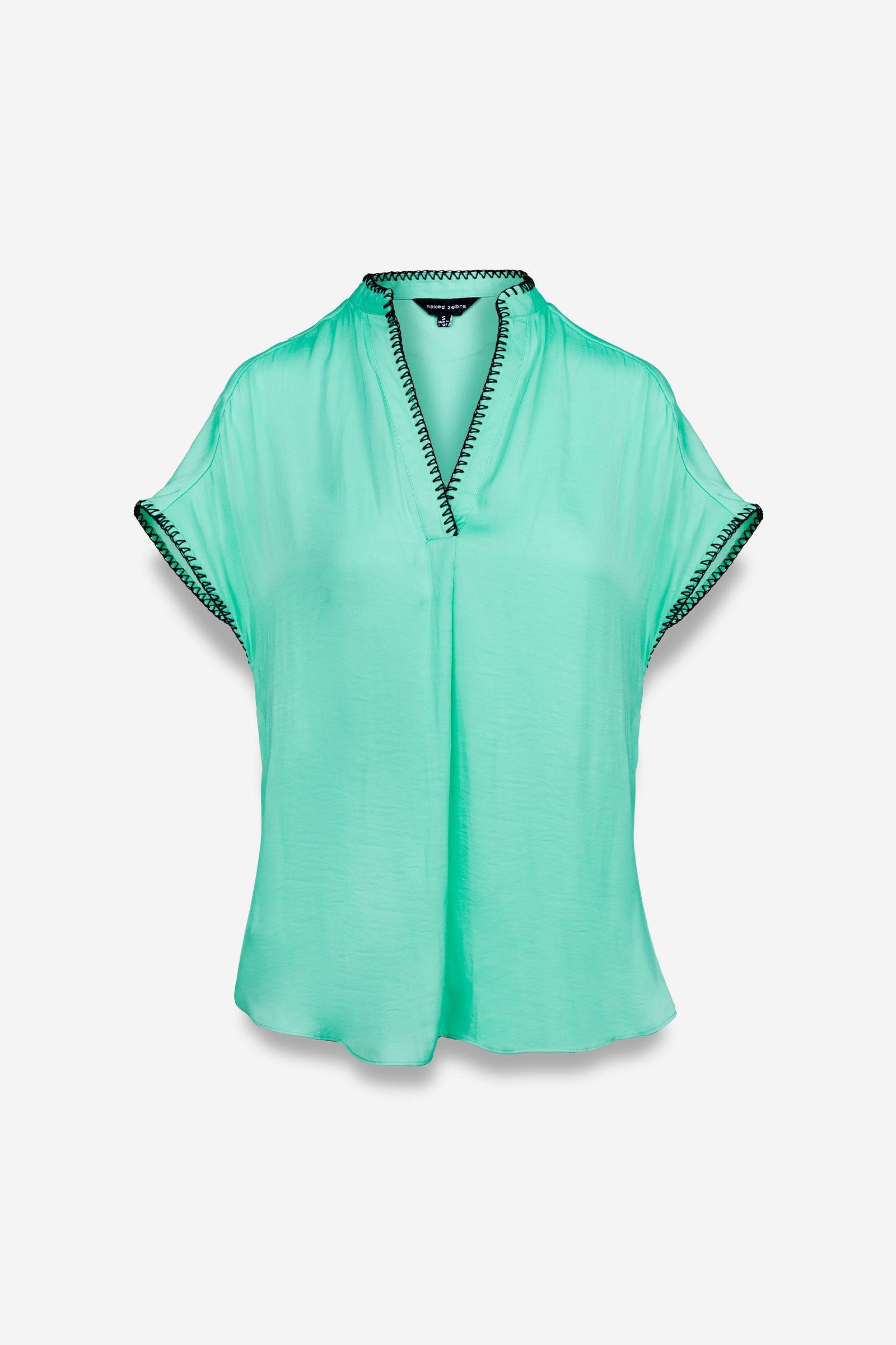 V-Neck Blouse With Bands Sleeve in Crinkle Satin