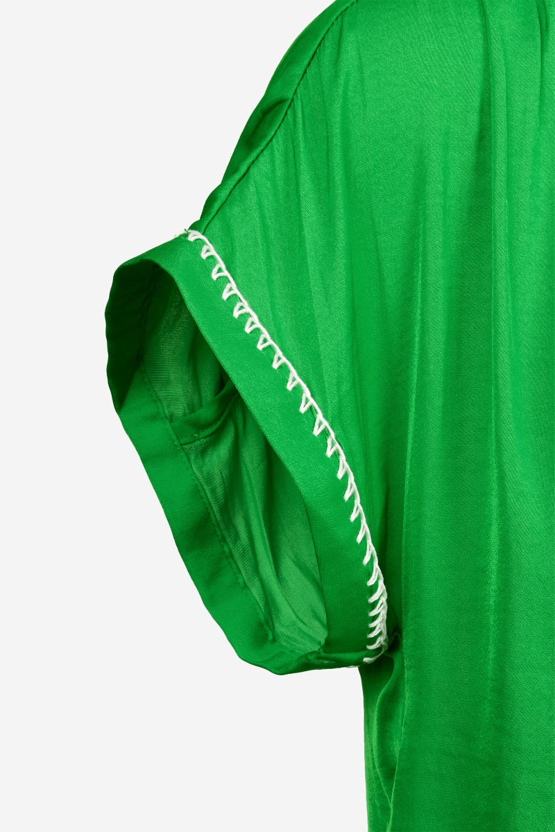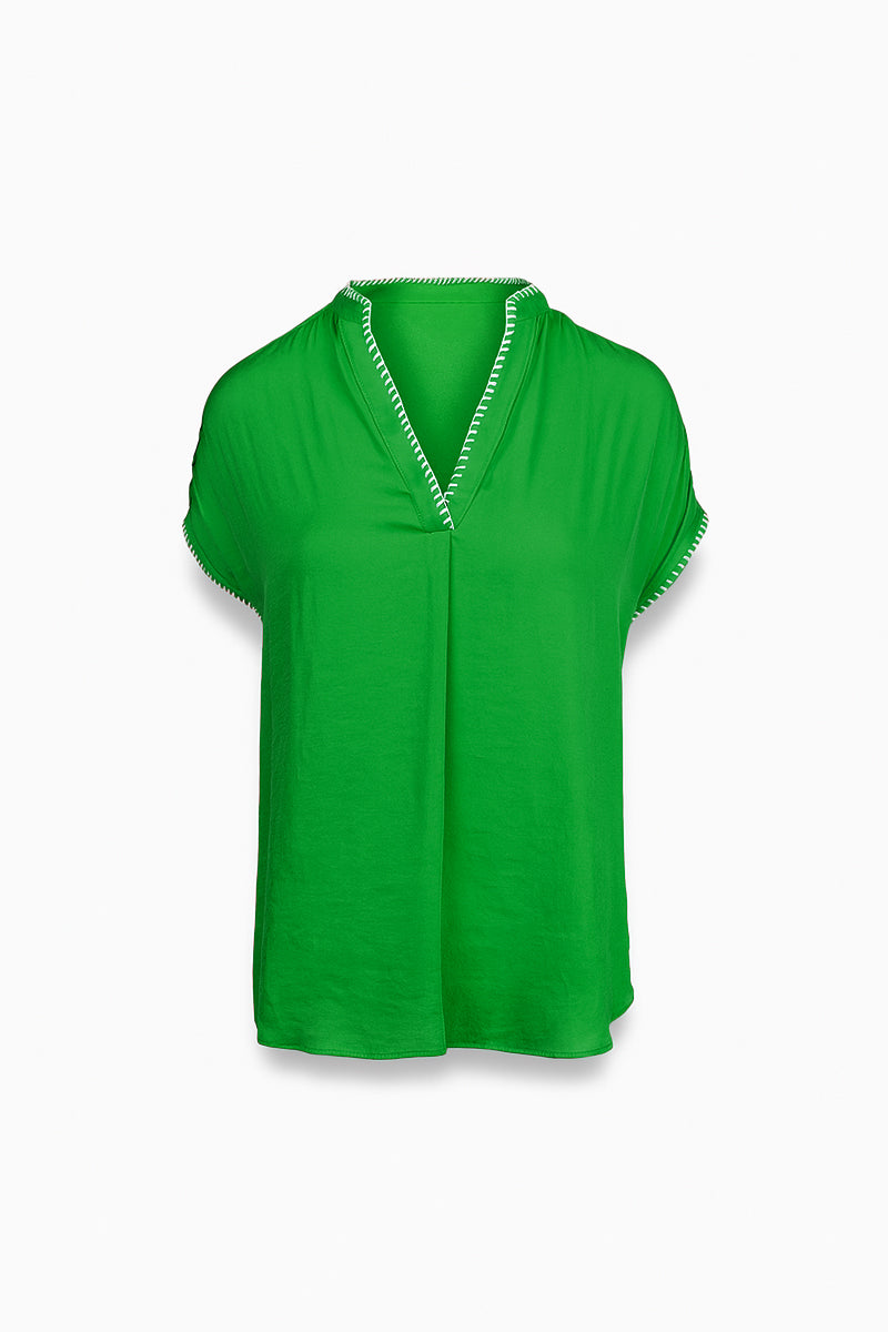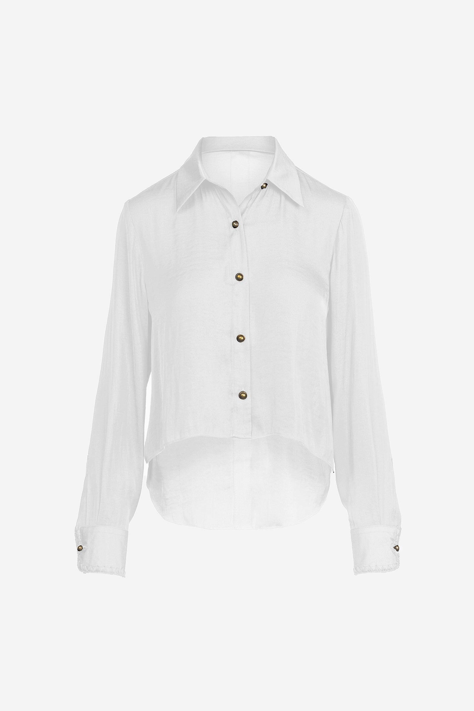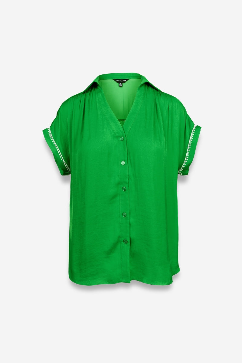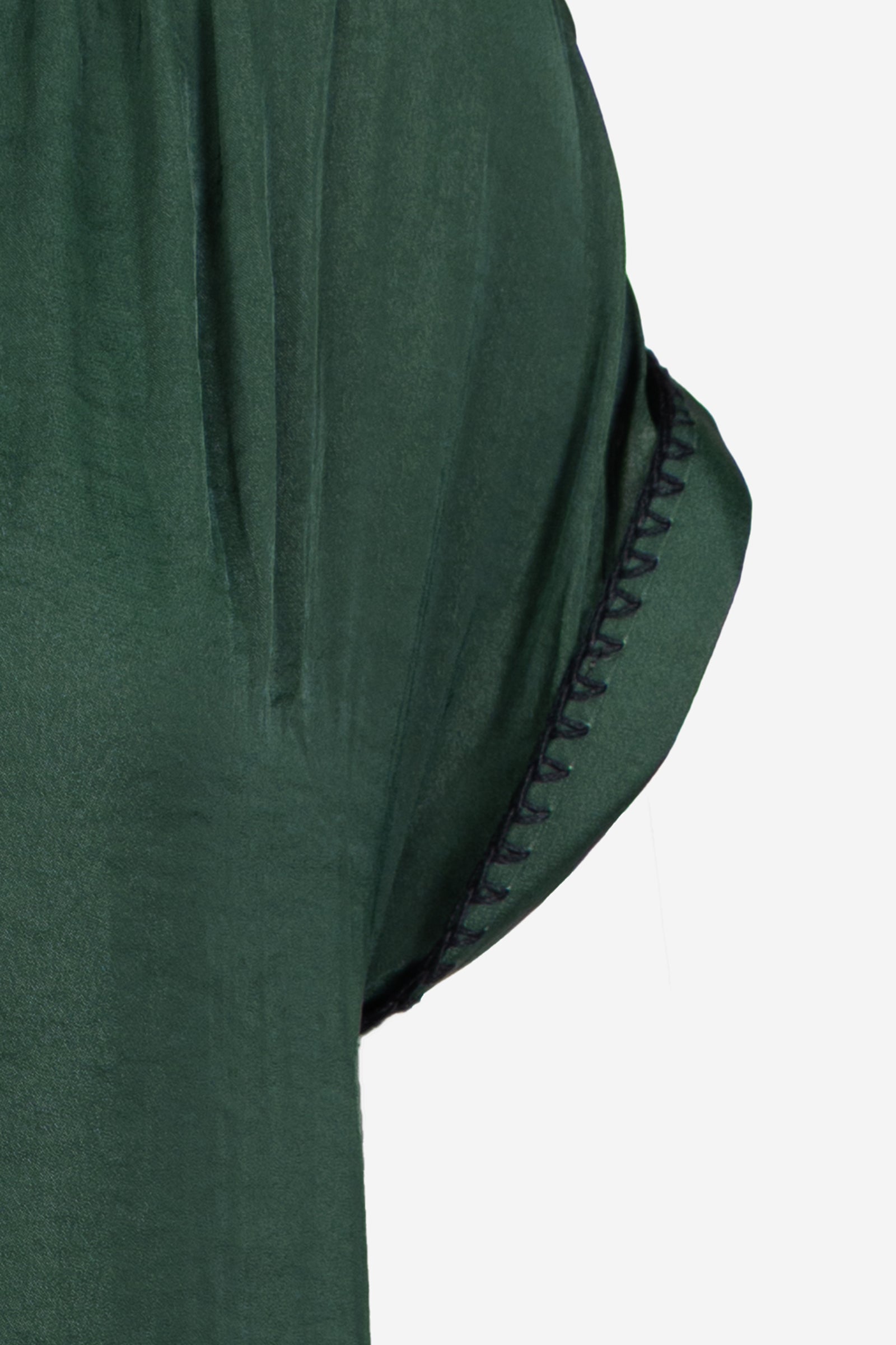 V-Neck Blouse With Bands Sleeve in Crinkle Satin