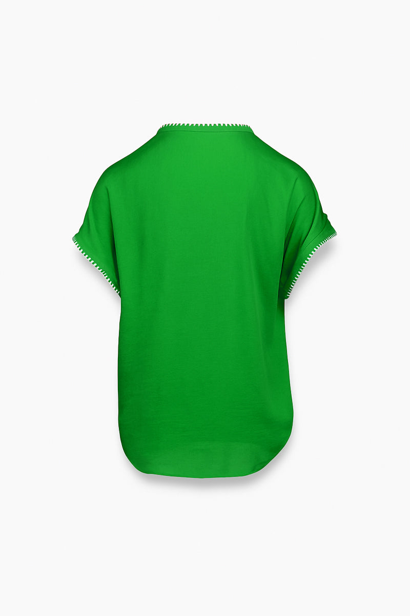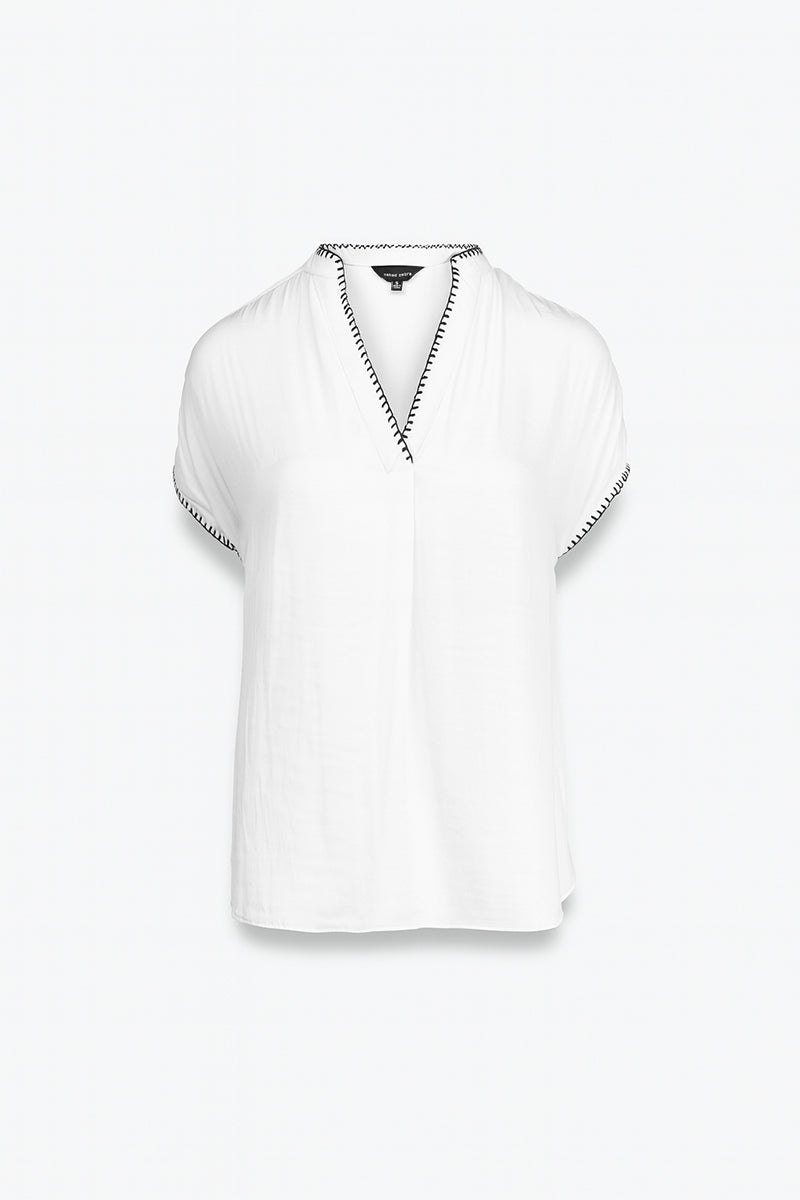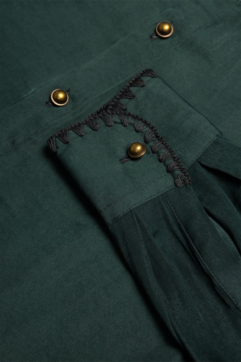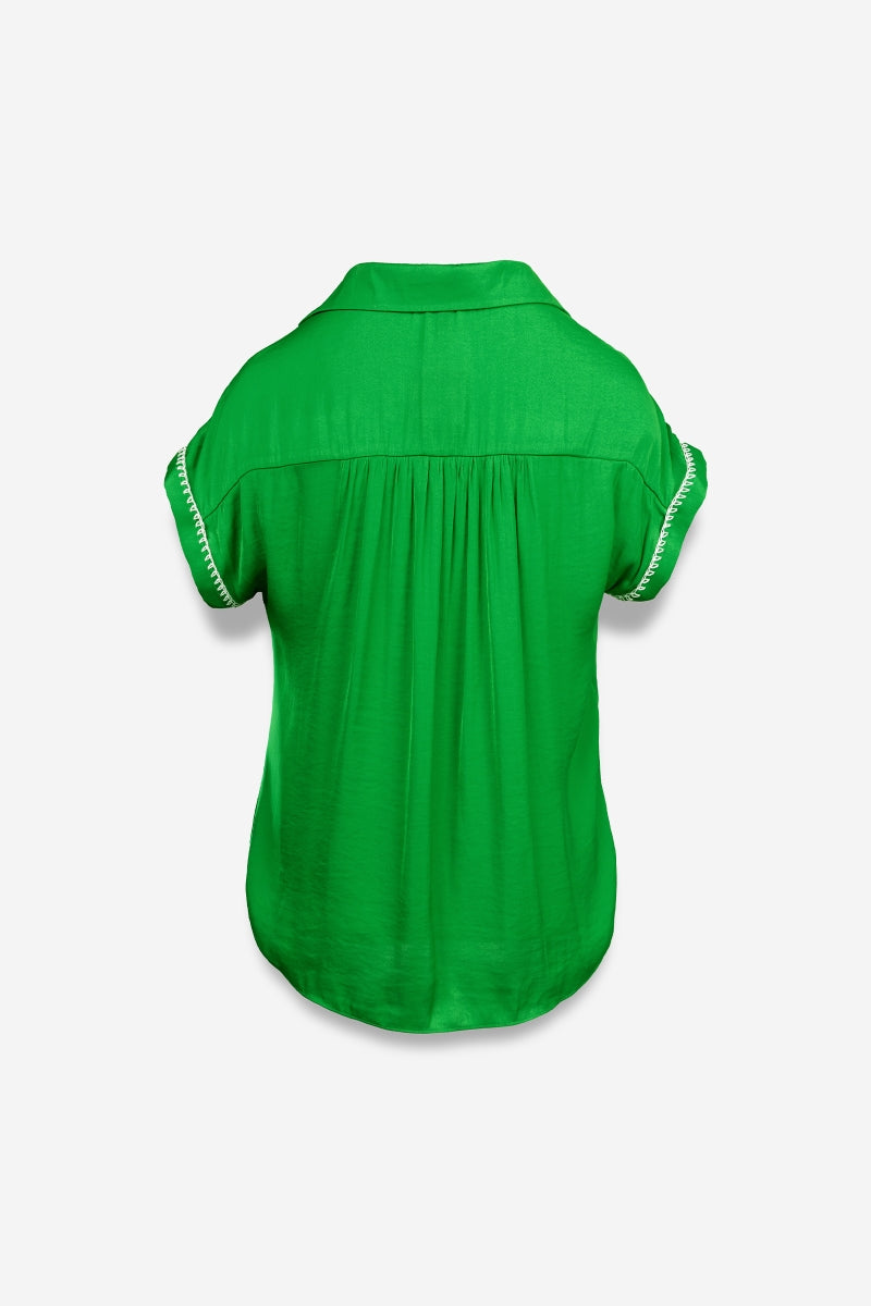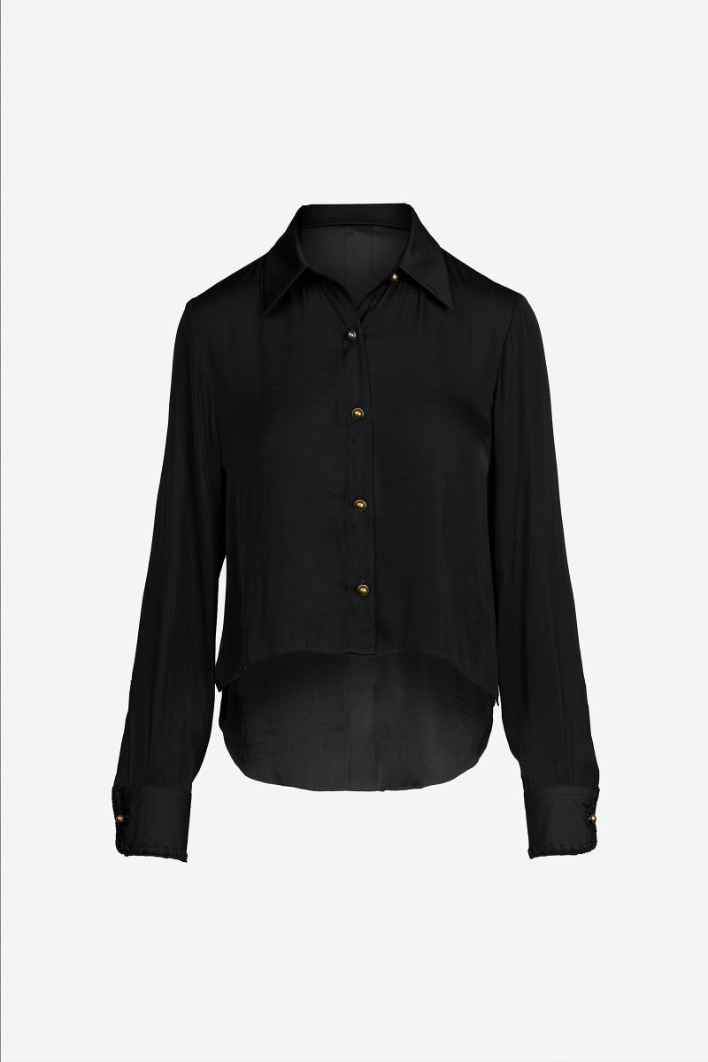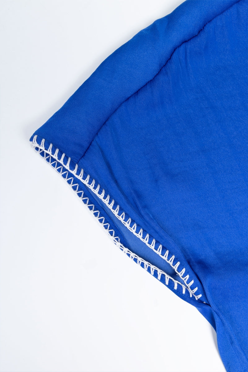 V-Neck Blouse With Bands Sleeve in Crinkle Satin