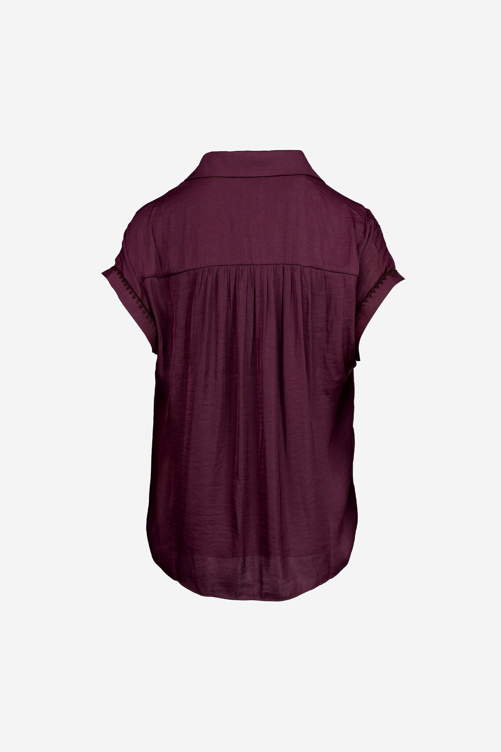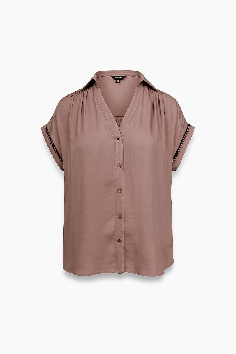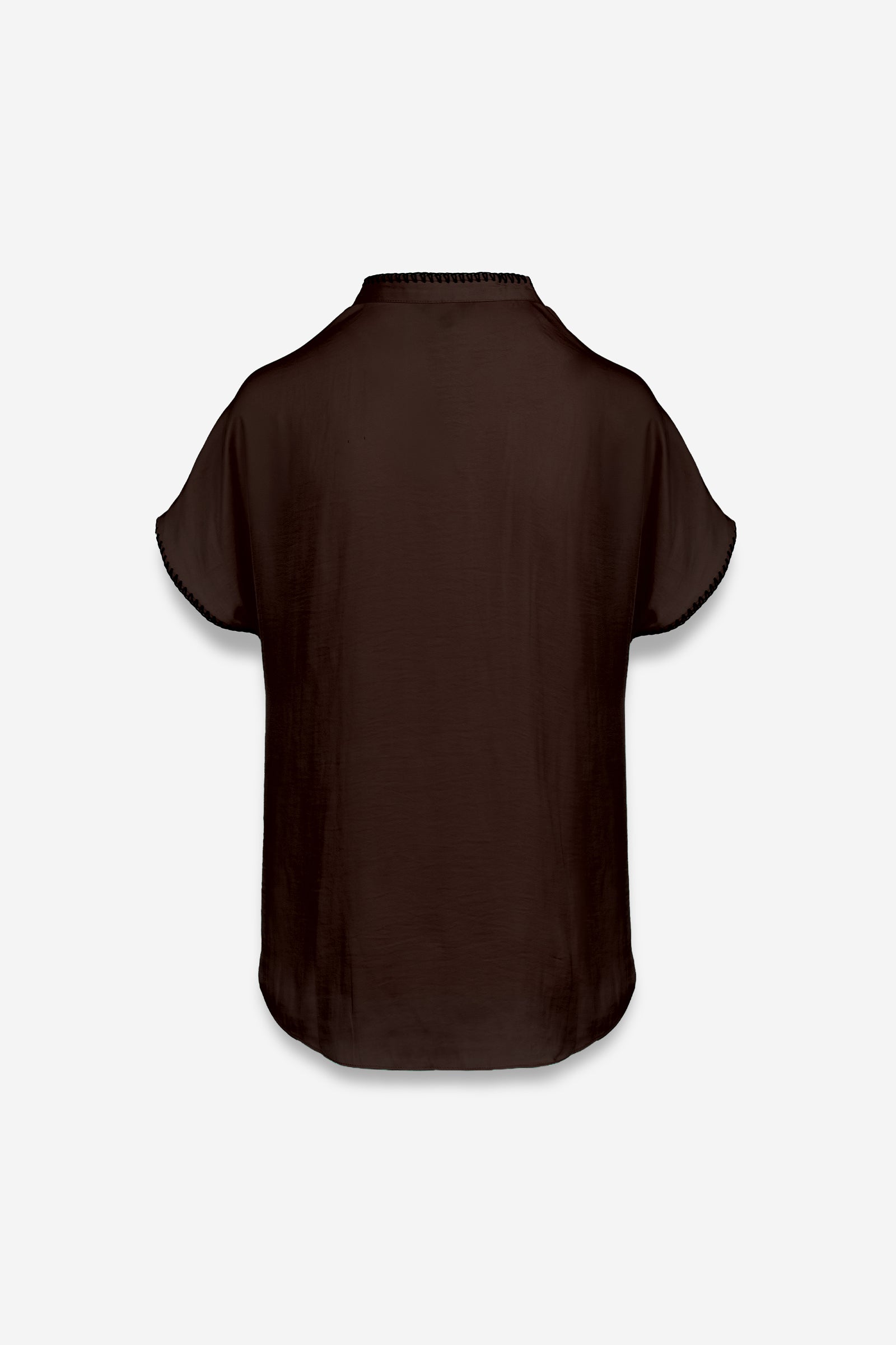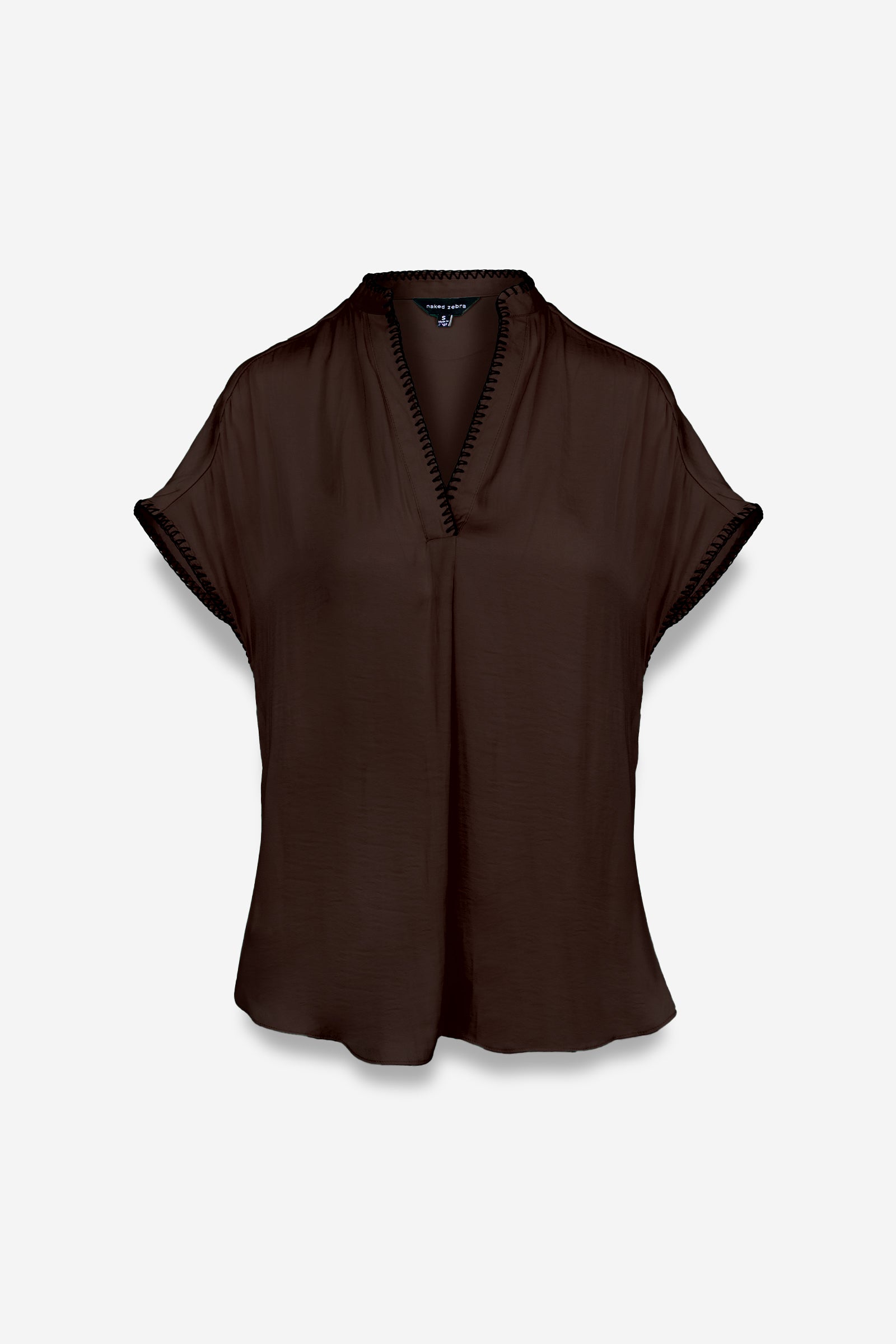 Pleated Cap Sleeve Blouse in Crinkle Satin