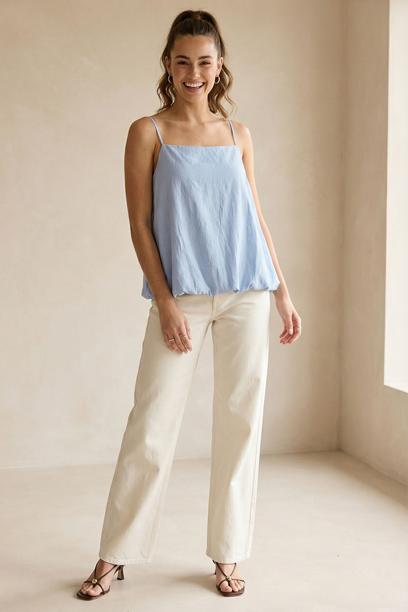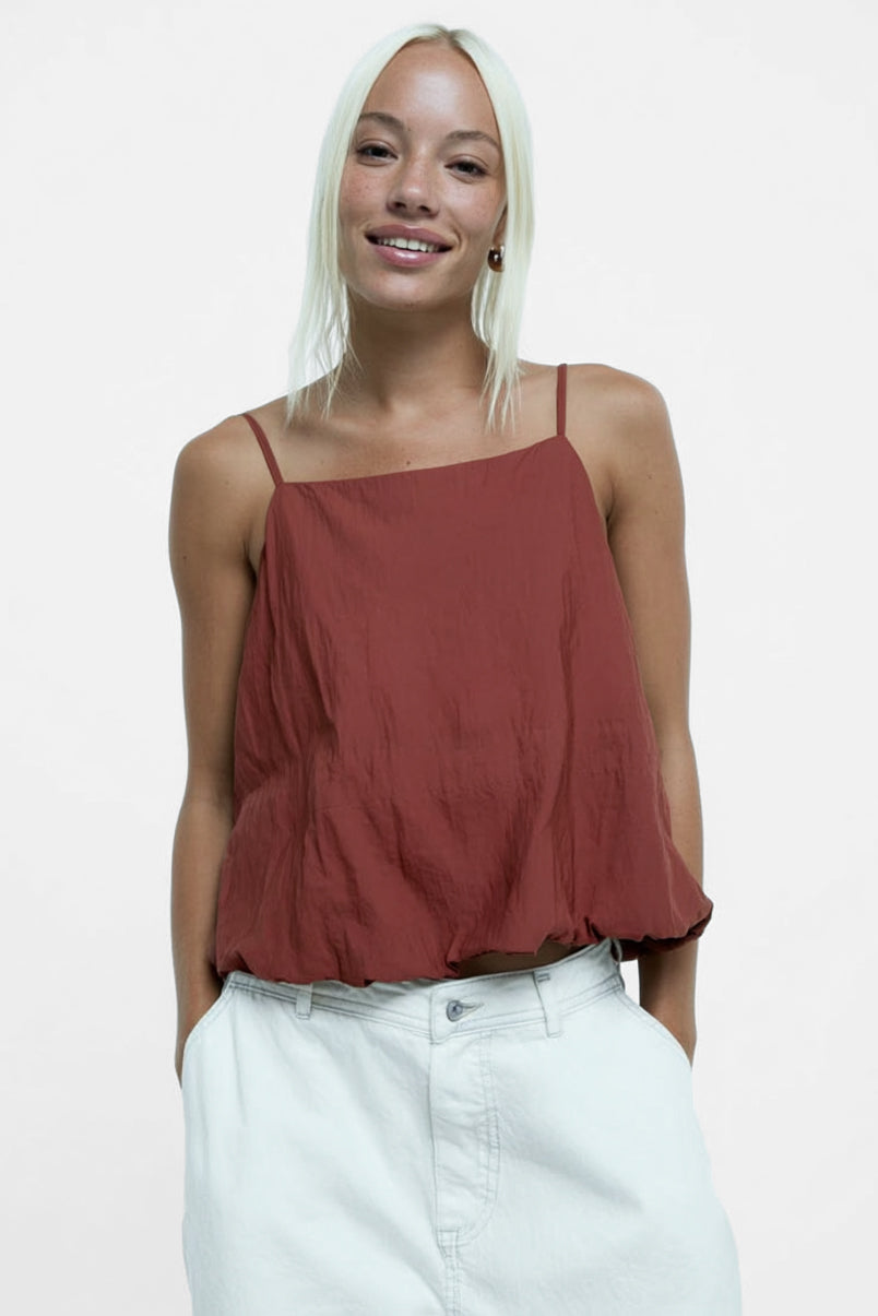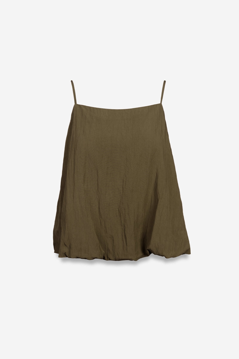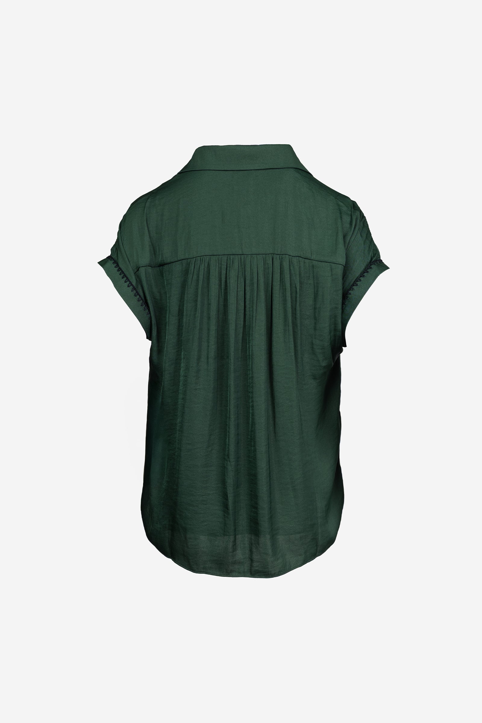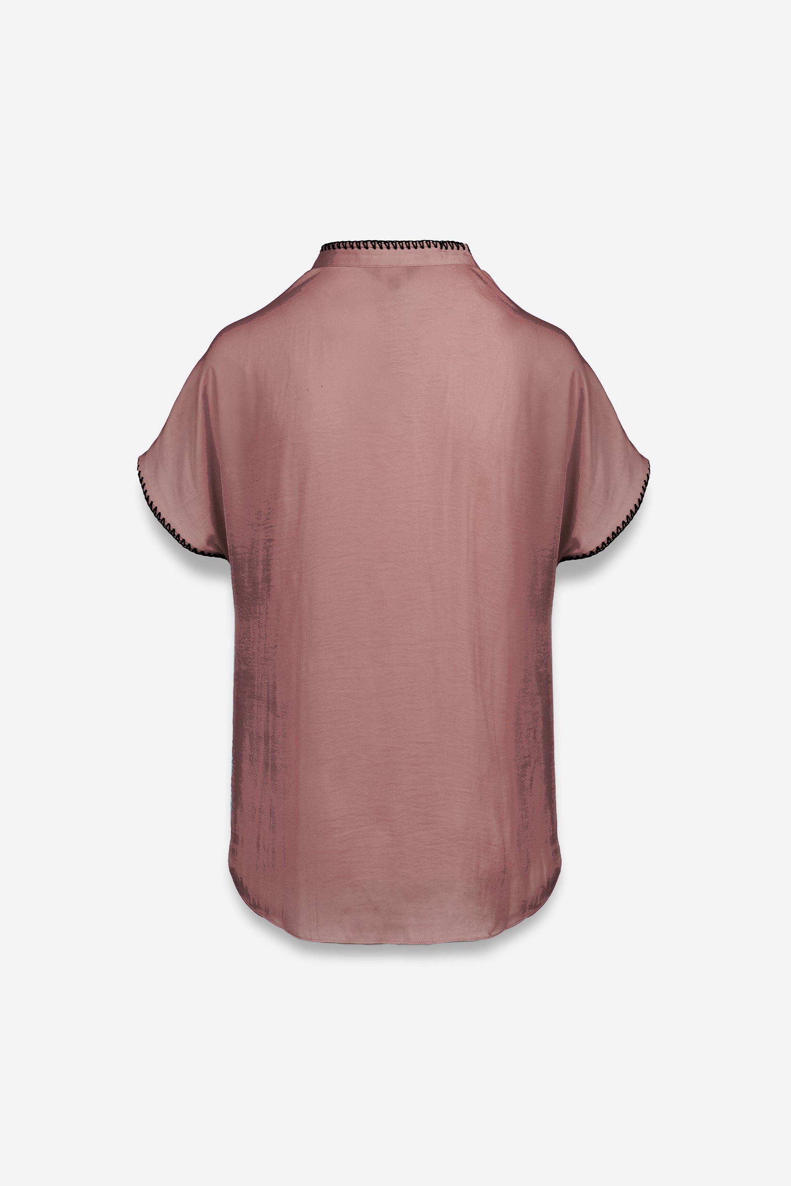 Pleated Cap Sleeve Blouse in Crinkle Satin