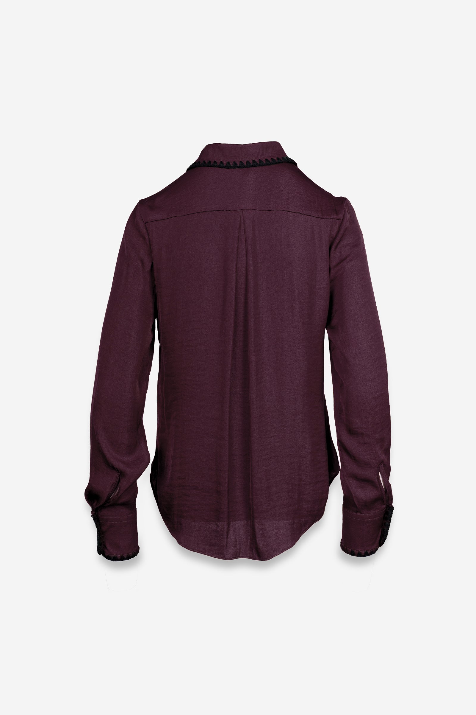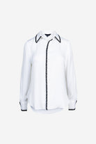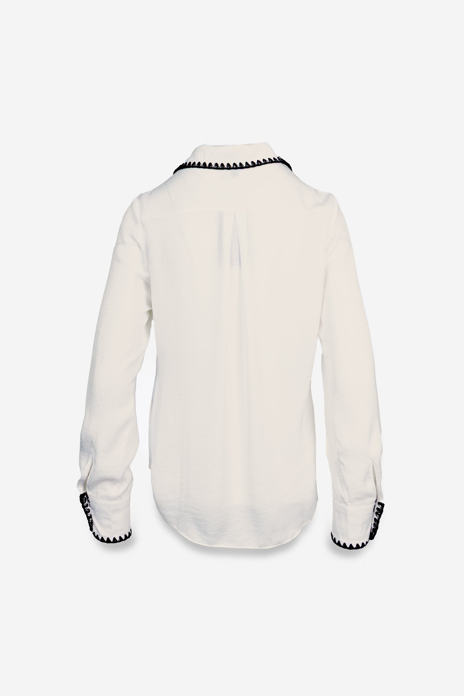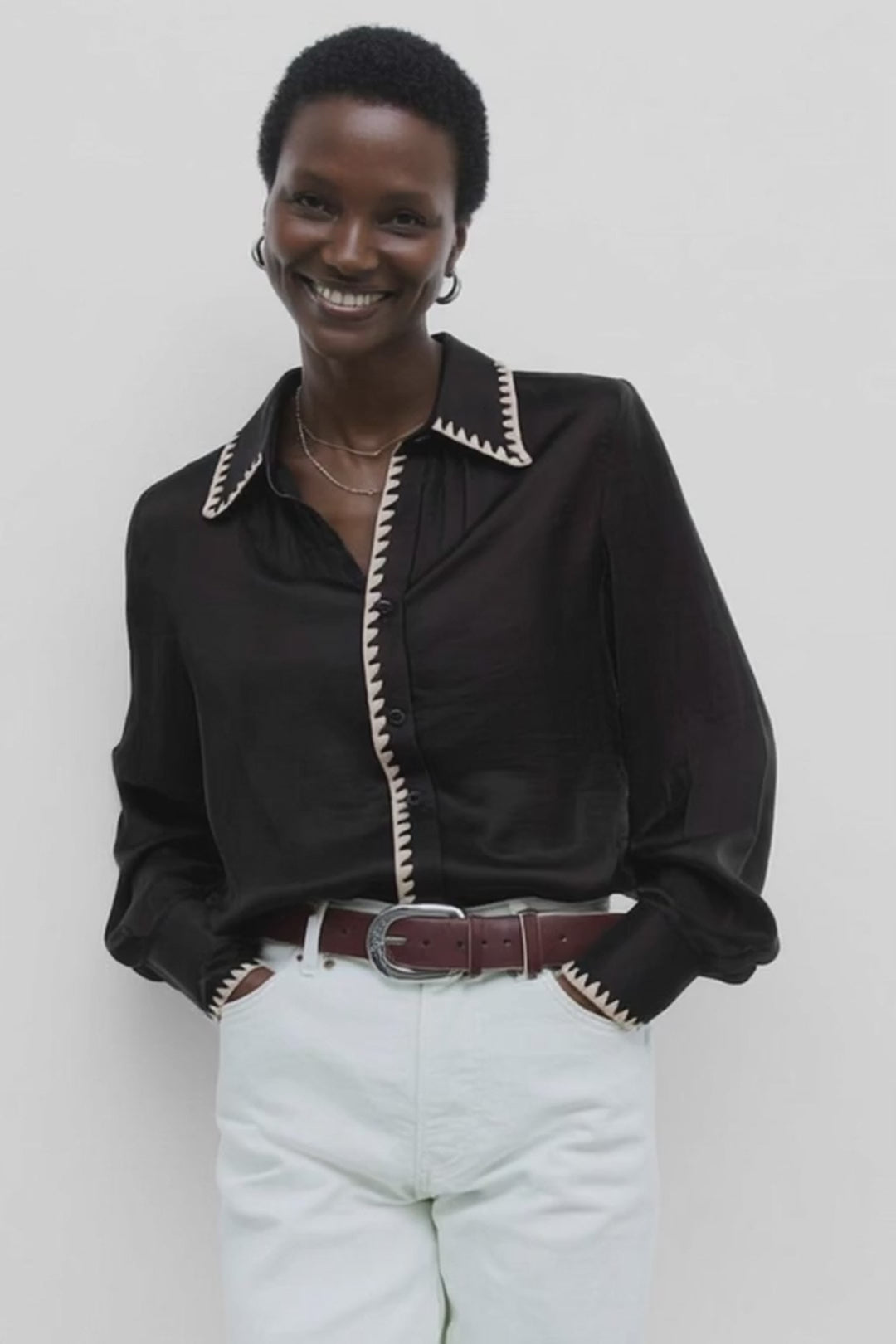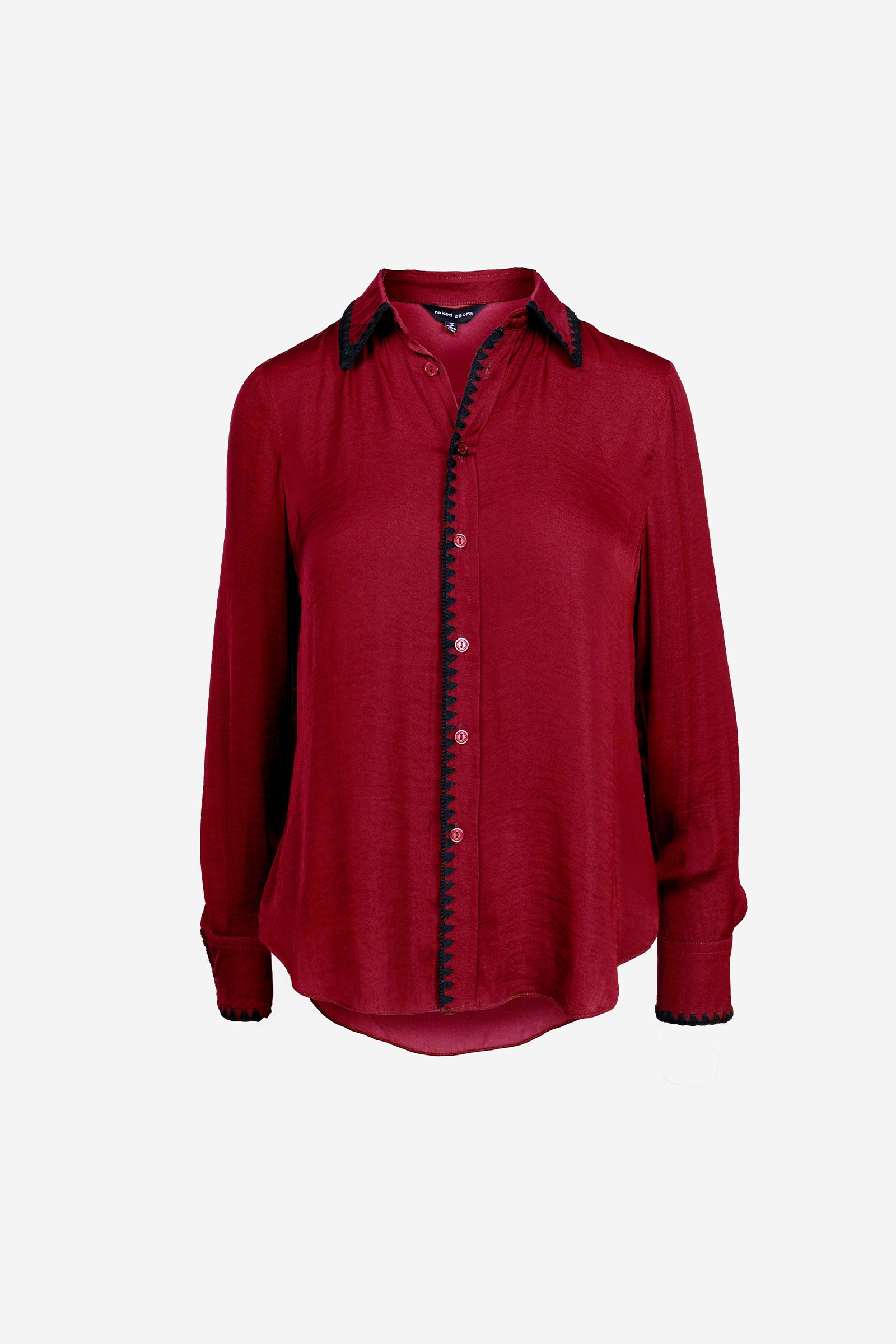 ╴Women's Blanket-Stitch Silky Button-Up Blouse