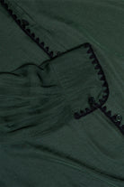 ╴Soft satin finish with contrast blanket-stitch detailing along edges
