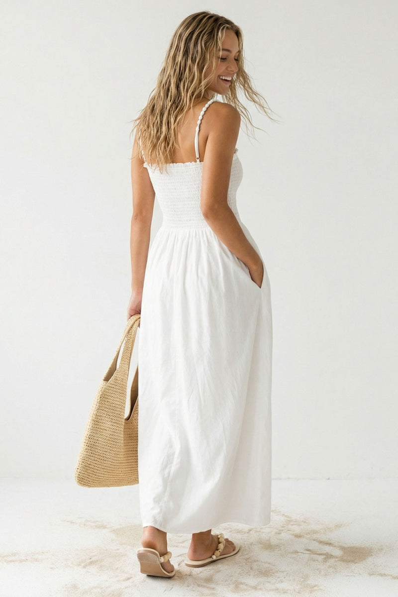 Pom Pom Smocking Maxi Dress