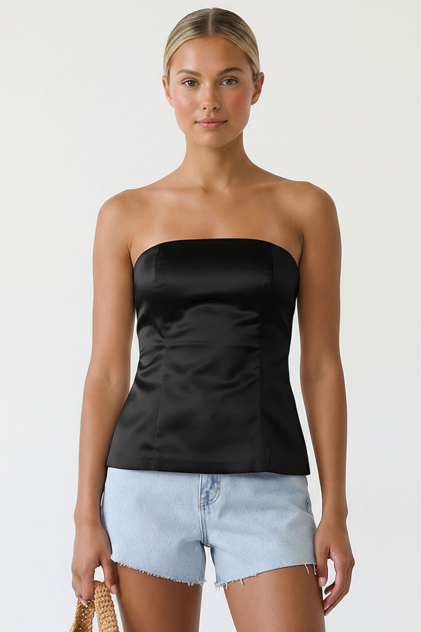 Tailored Long Satin Tube Top