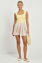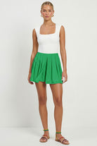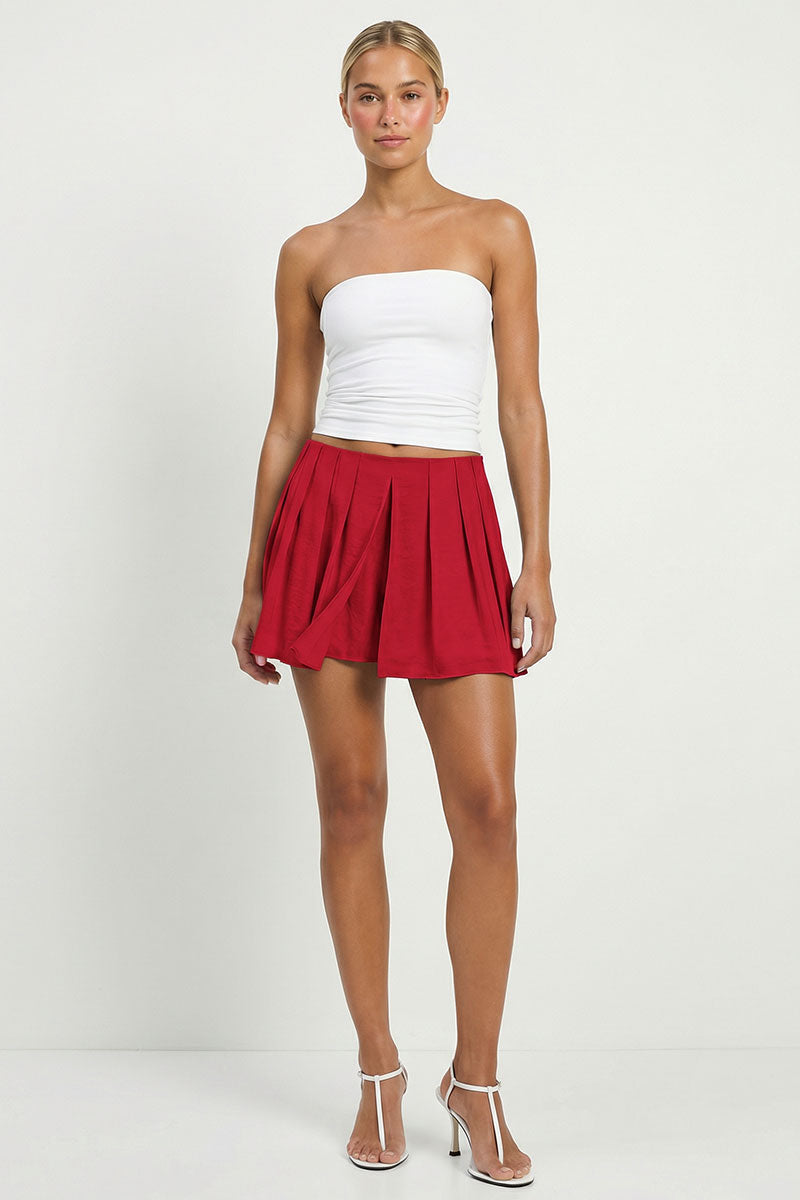 Elevate your summer wardrobe with this flirty front pleat skort, designed for effortless style and movement. The strategic front slit adds a playful touch while maintaining comfort for warm-weather adventures. Perfect for casual outings, beach trips, or laid-back weekend wear, this versatile piece transitions seamlessly from day to night. The pleated detailing creates flattering dimension, while the skort silhouette offers practical coverage without sacrificing that breezy, carefree vibe. An essential summer staple that combines fashion-forward flair with everyday wearability.