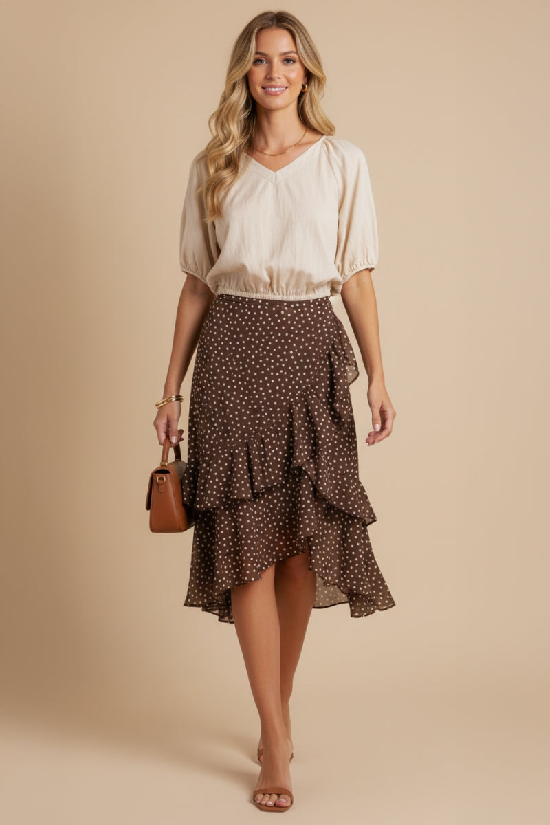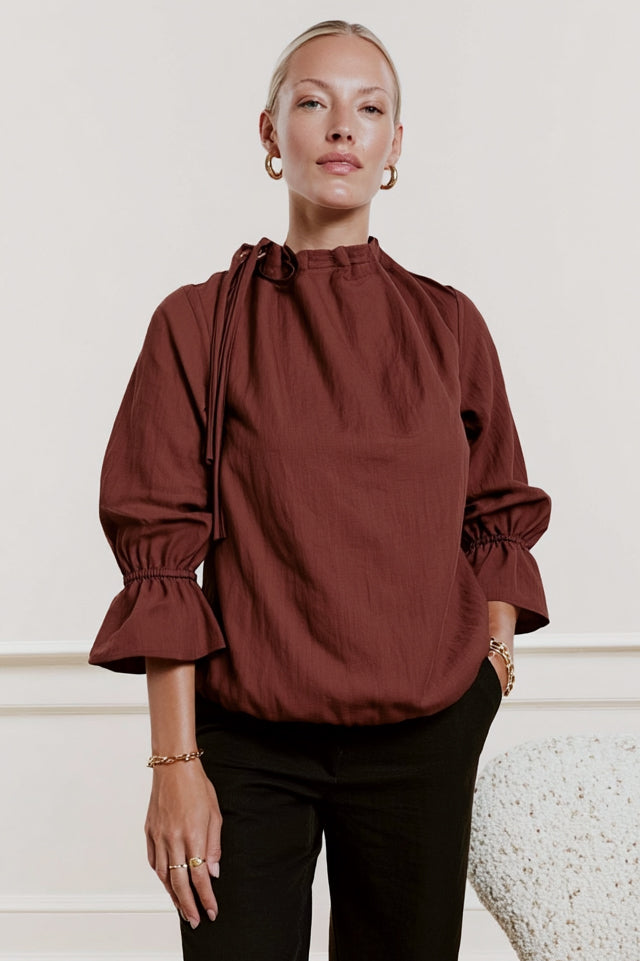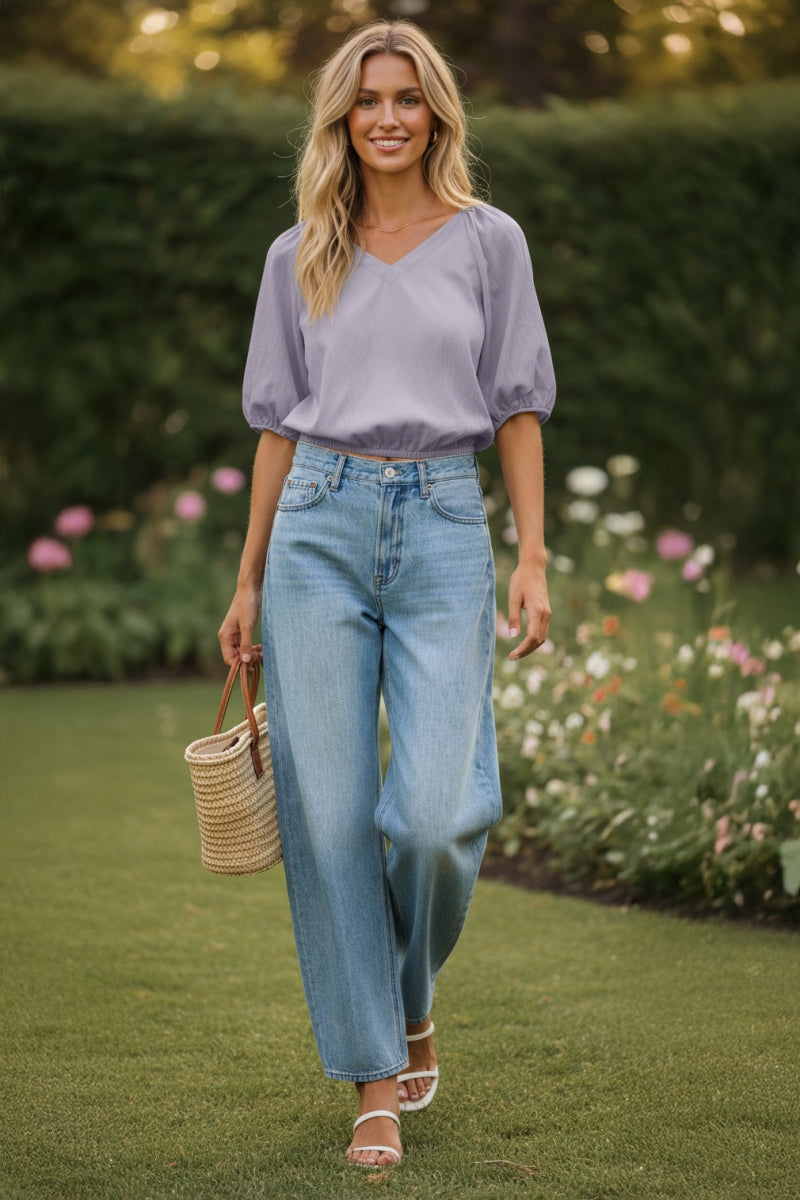 Half Sleeve Hi-lo Bubble Hem Blouse