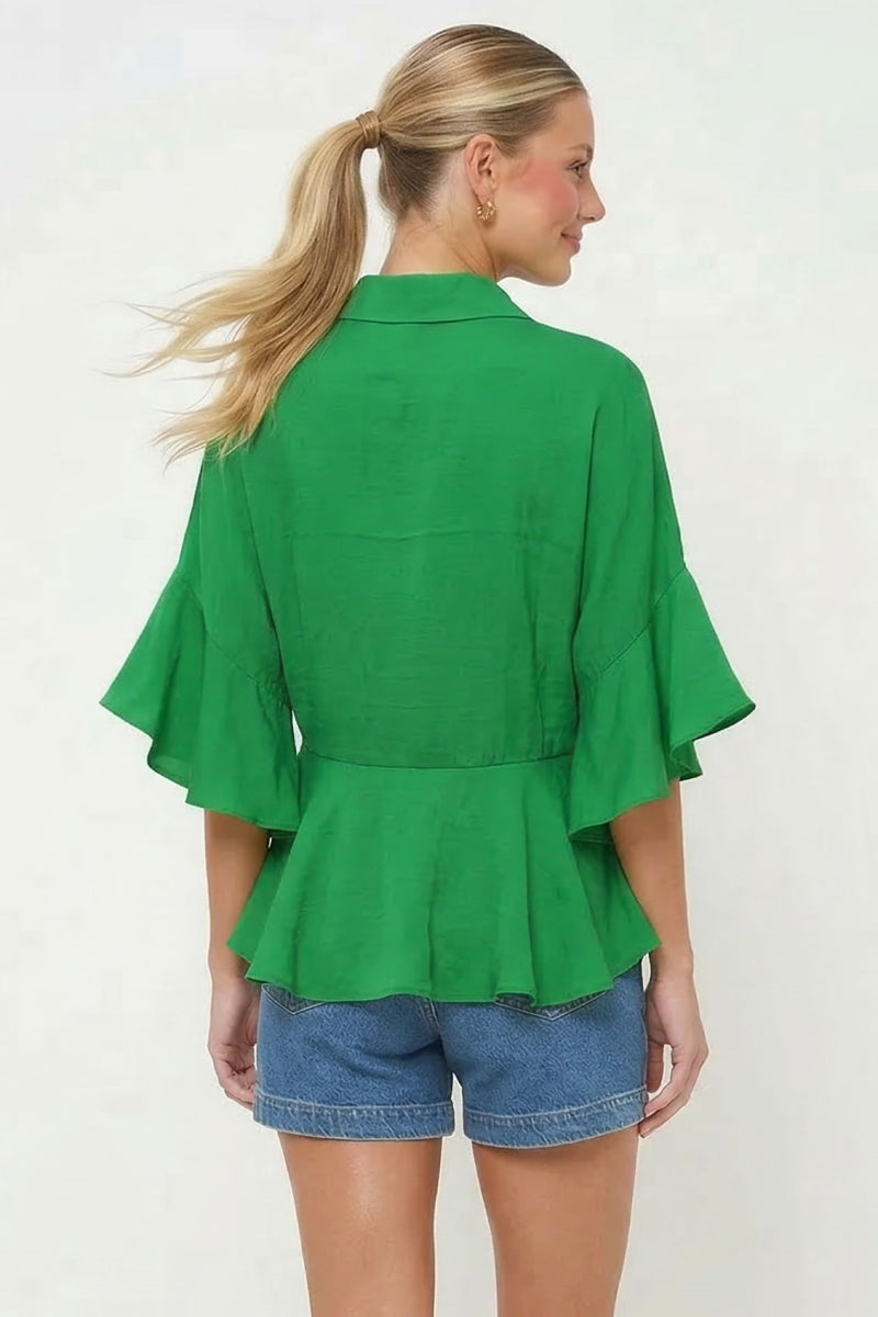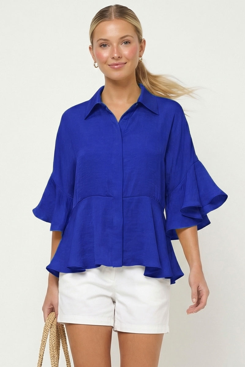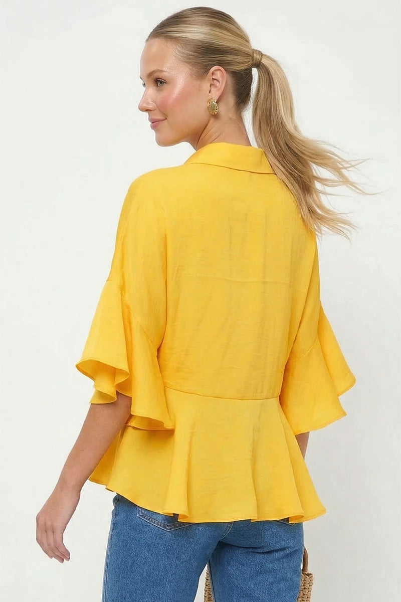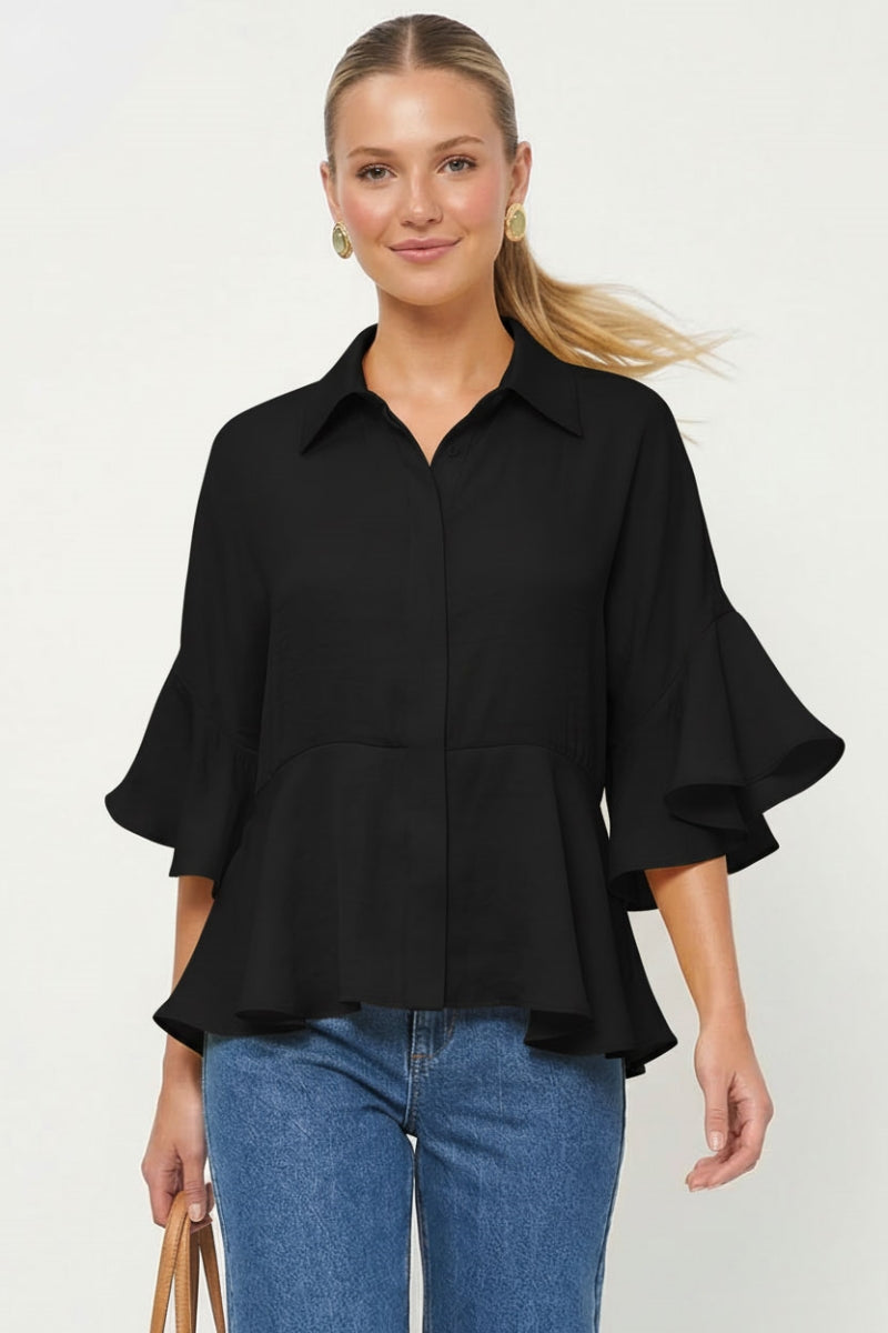 3/4 Flutter Sleeve Peplum Blouse
