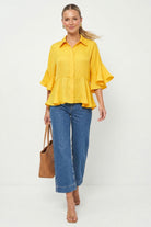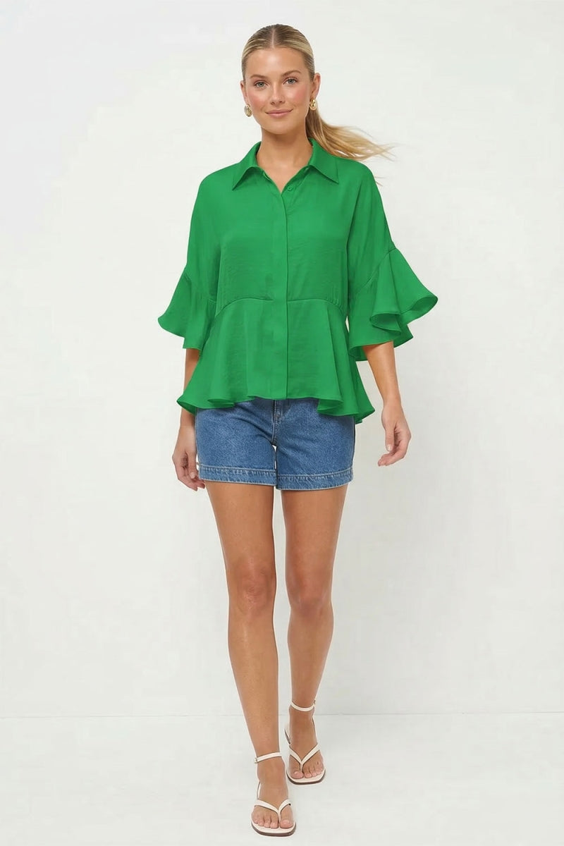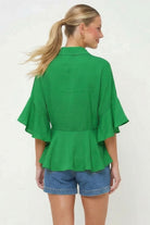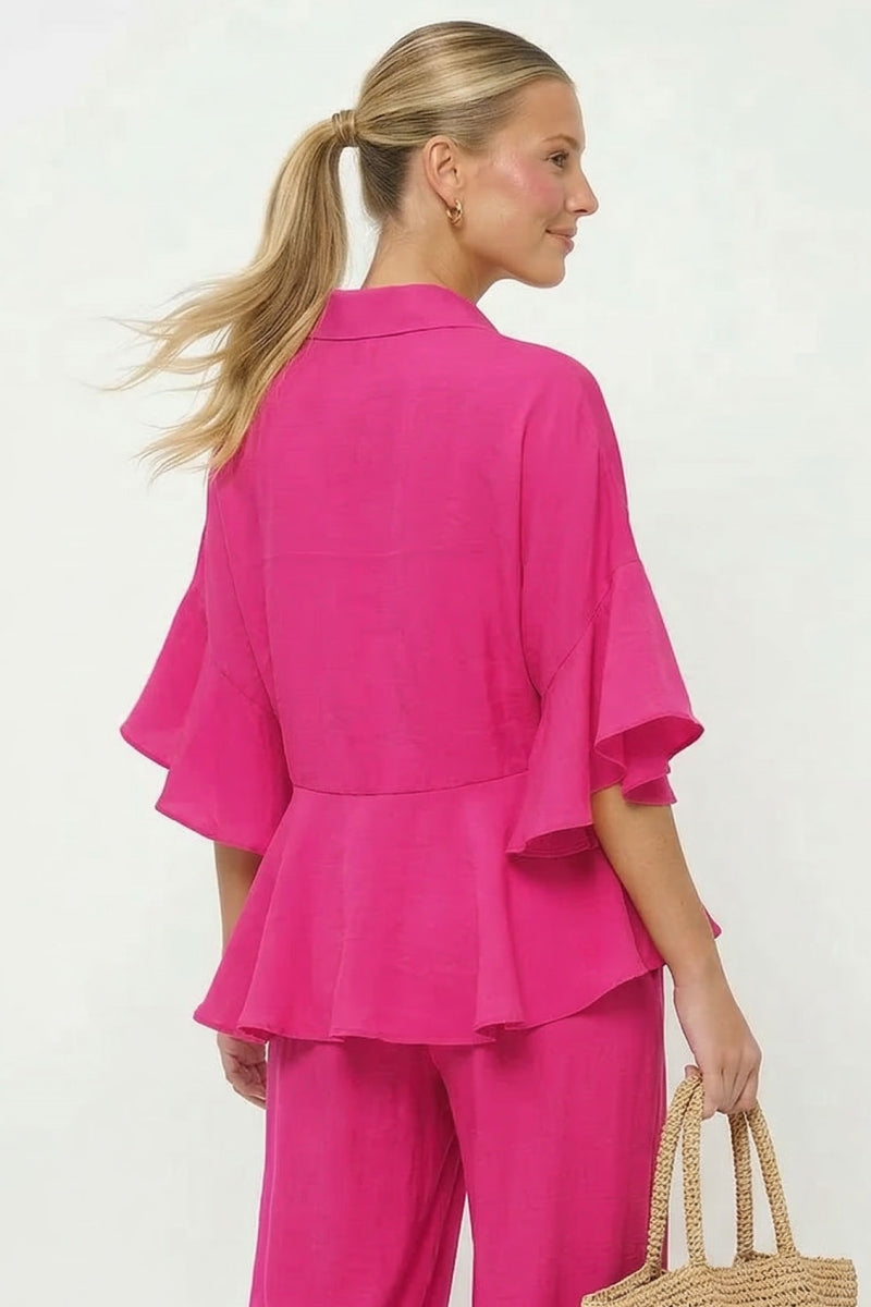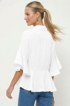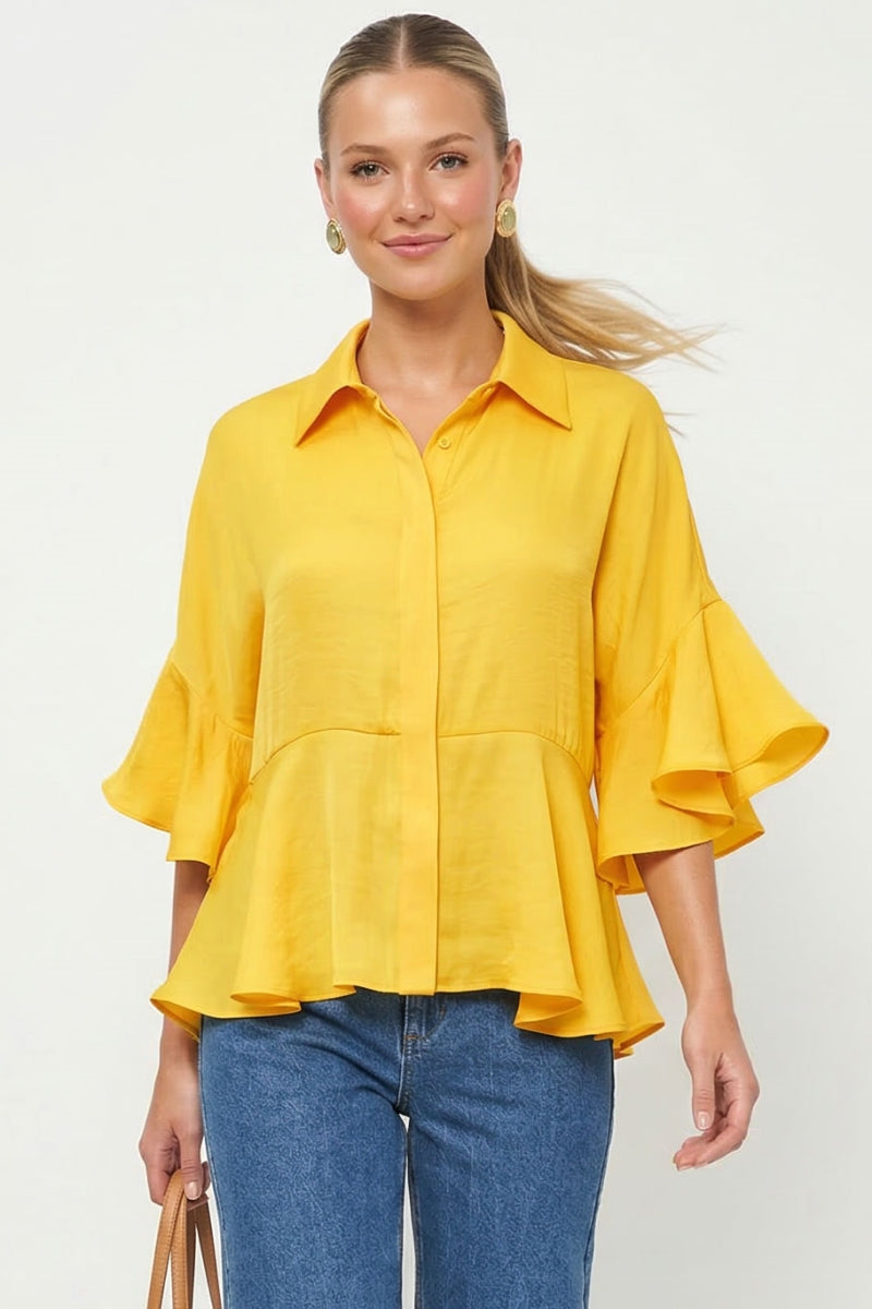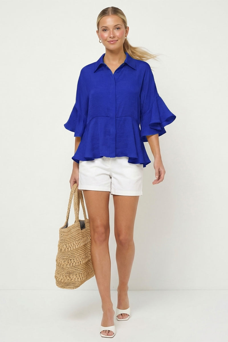 3/4 Flutter Sleeve Peplum Blouse