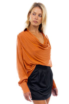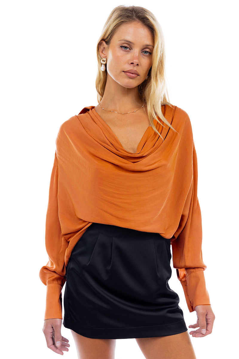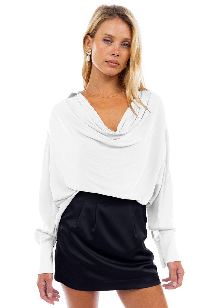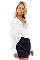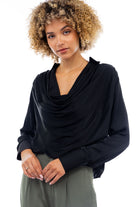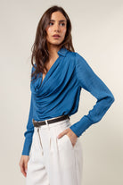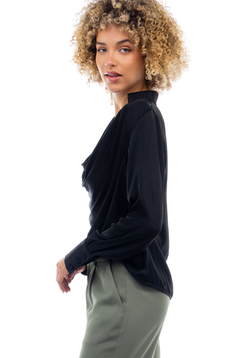 Draped Cowl Neck Blouse With Buttoned Cuffs