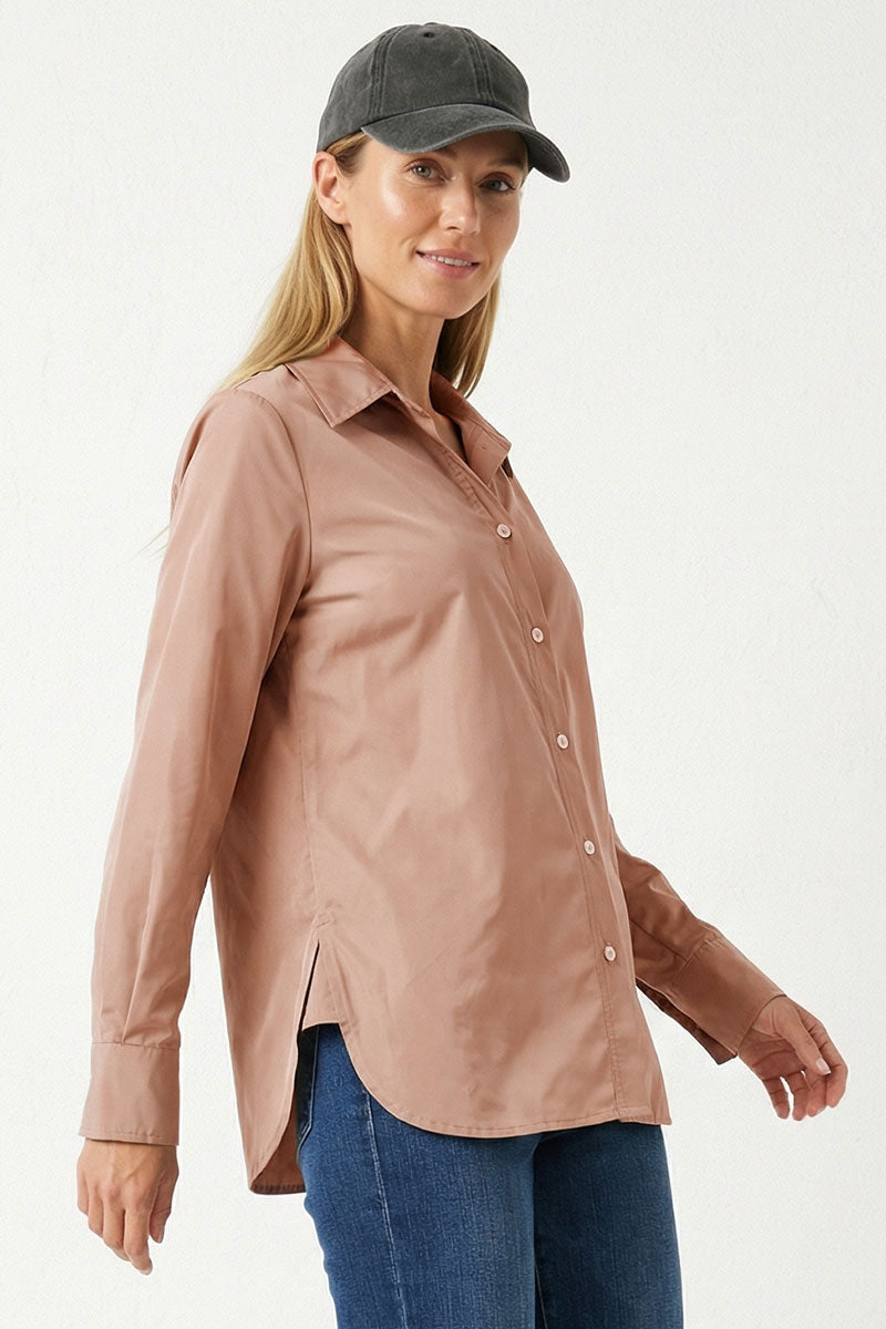 ╴Women's Long Sleeve Blouse With Side Panel Accent