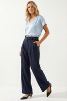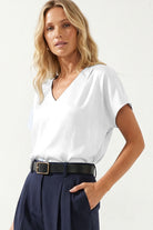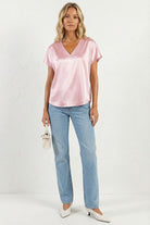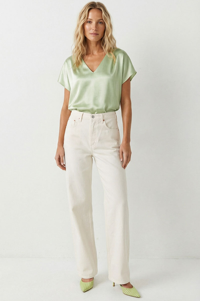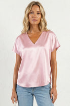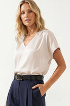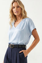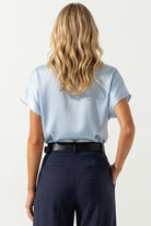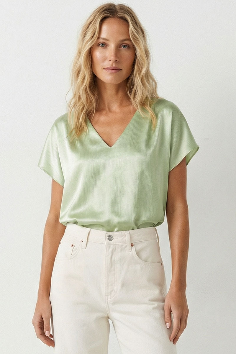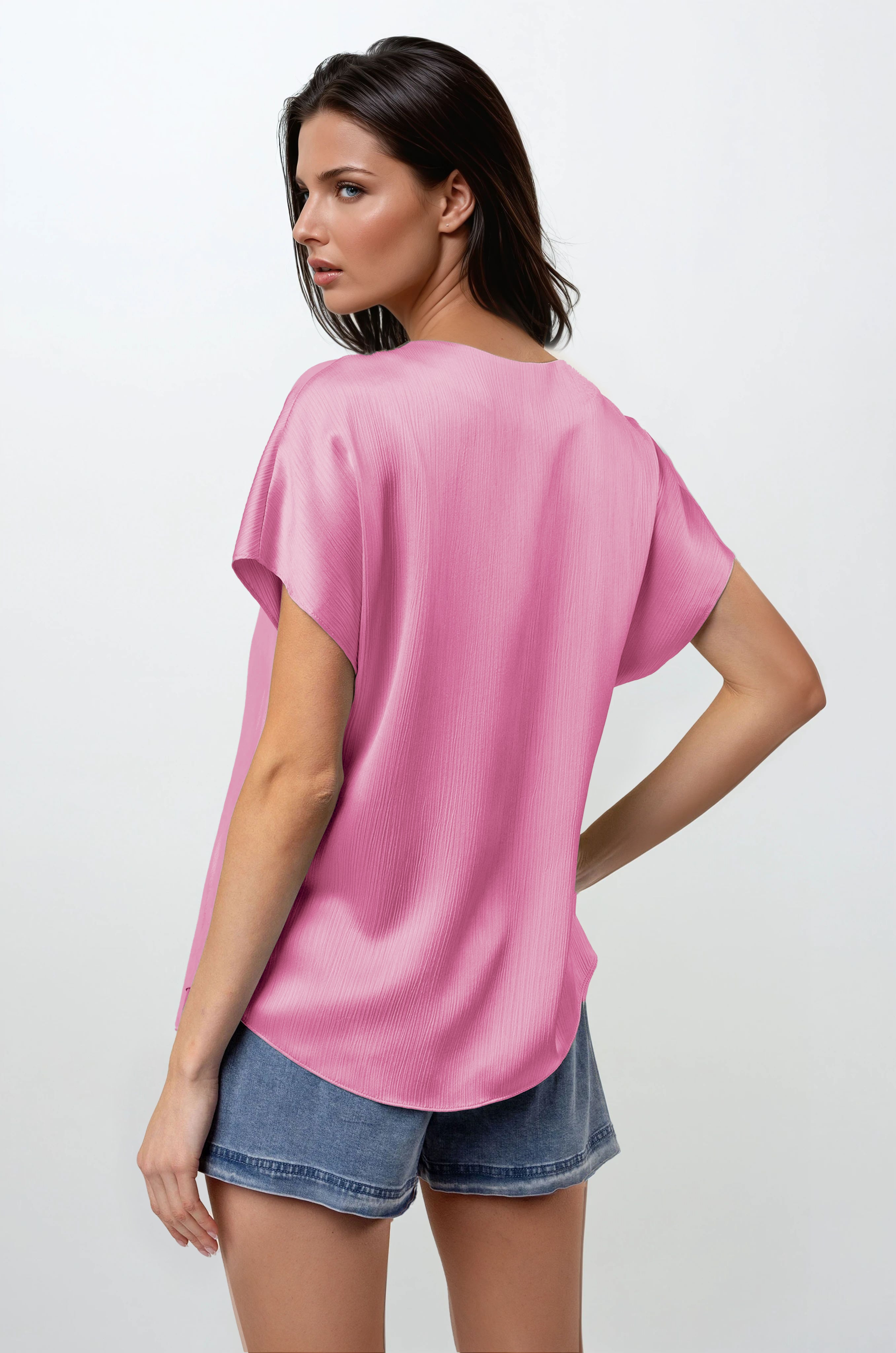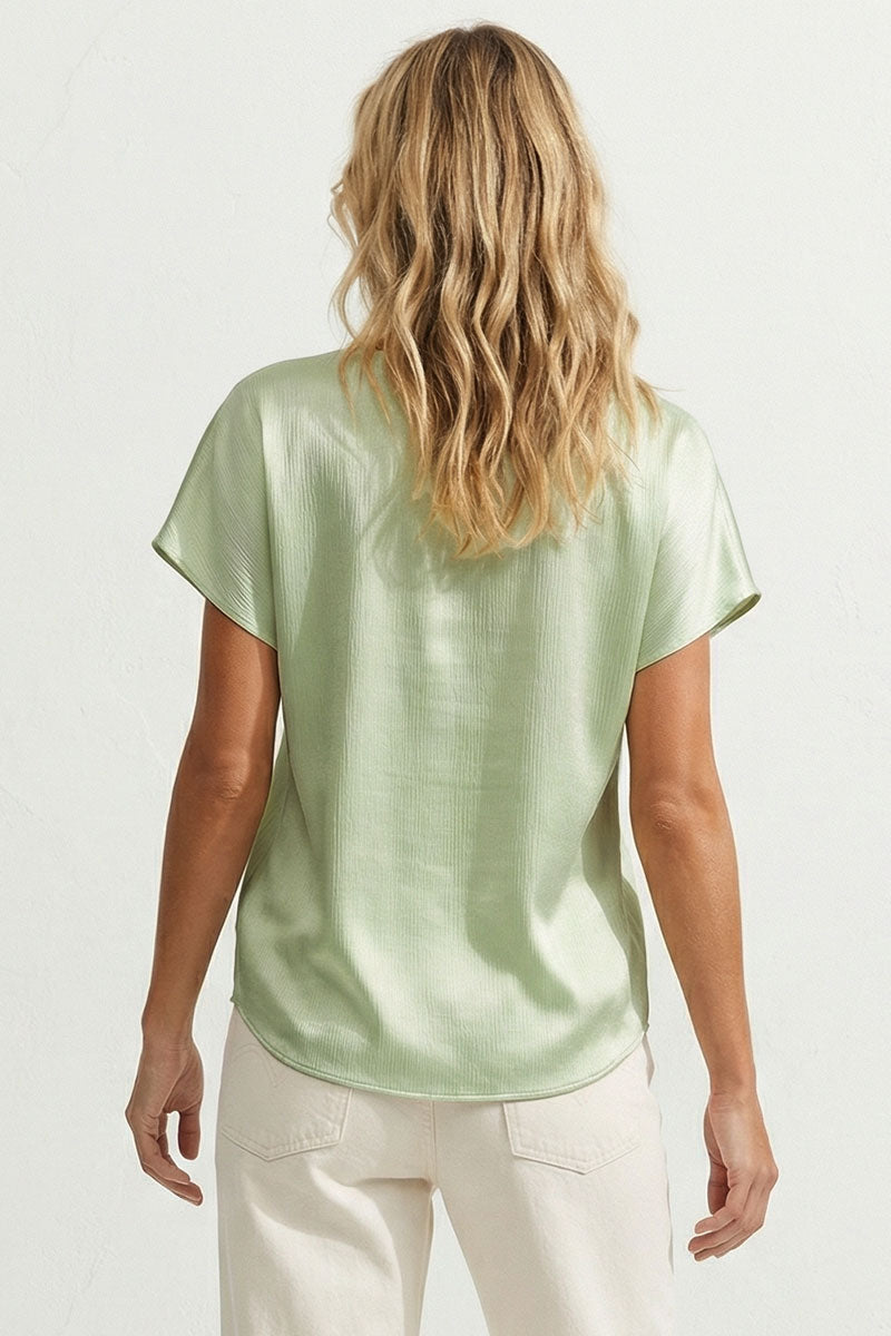 Pleated Cap Sleeve Blouse in Crinkle Satin