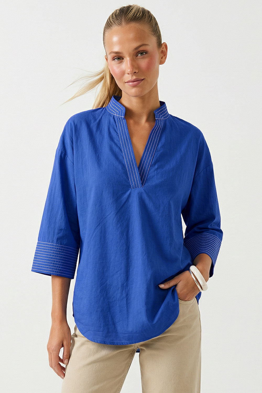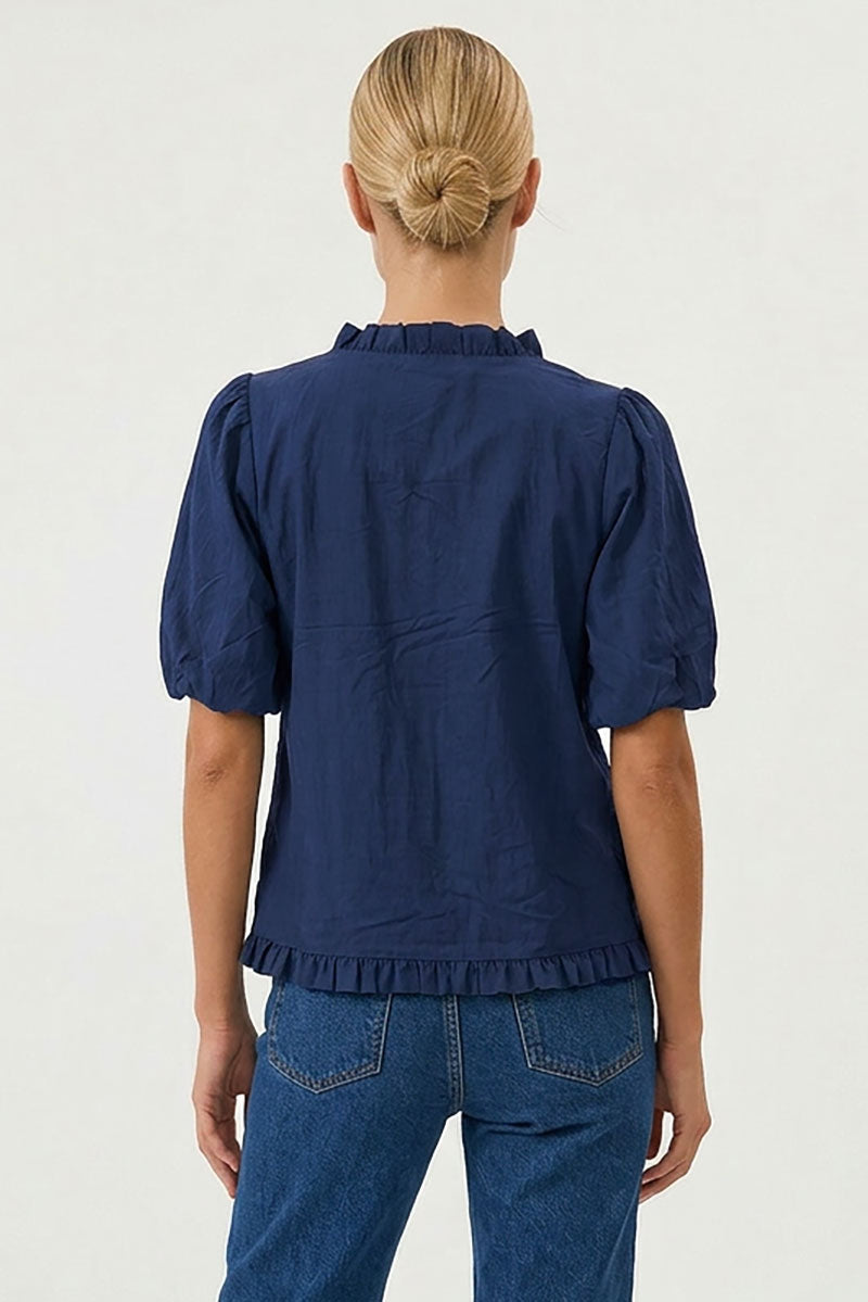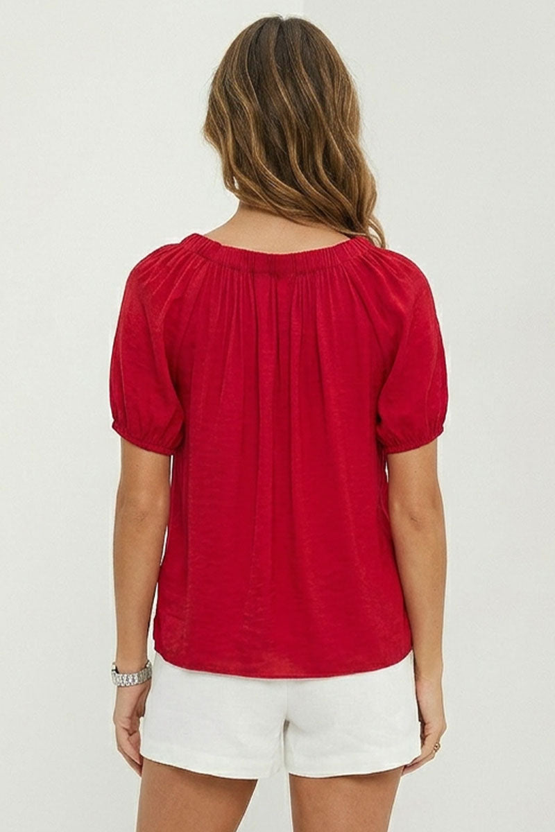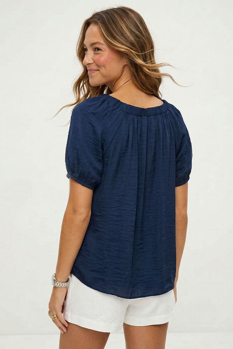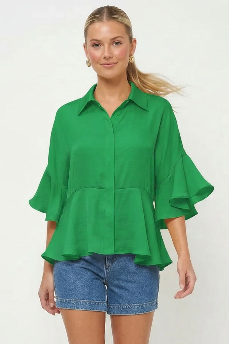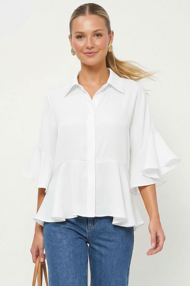 Half Sleeve Hi-lo Bubble Hem Blouse