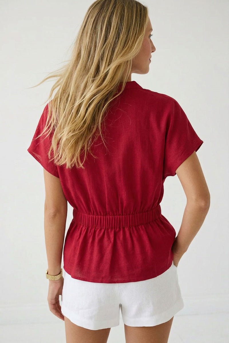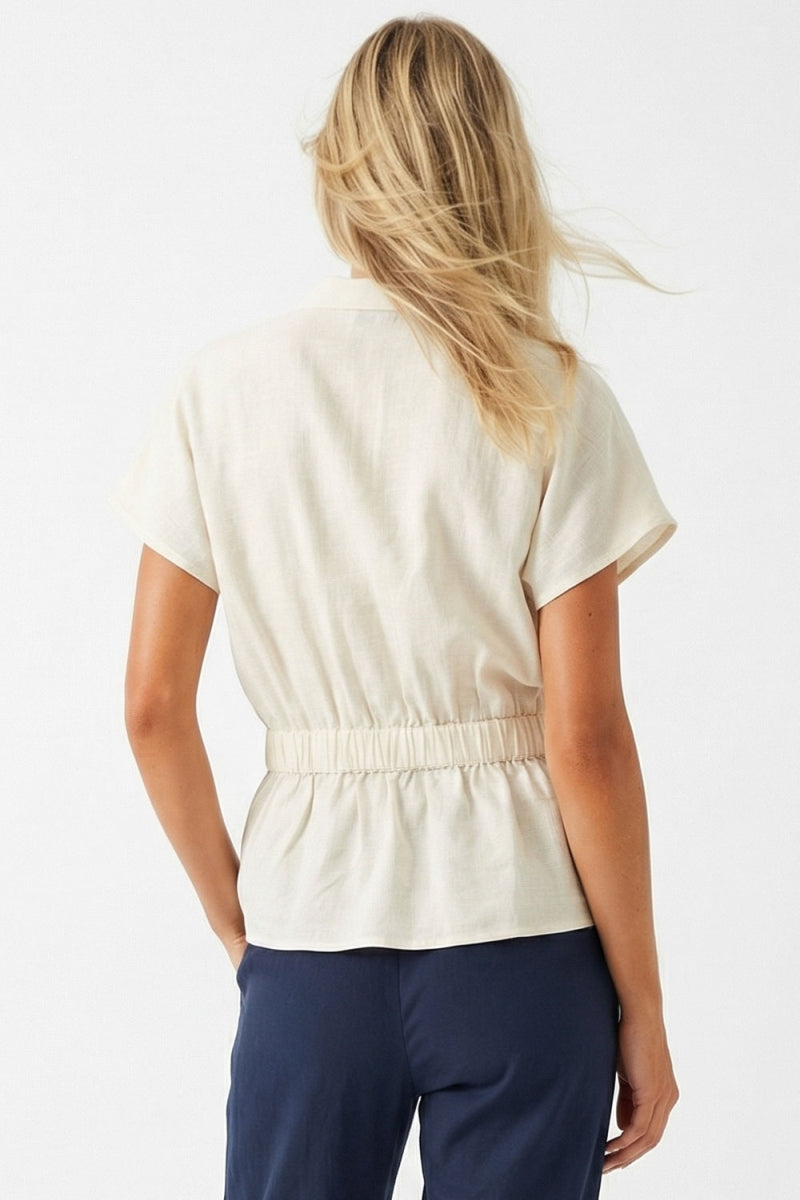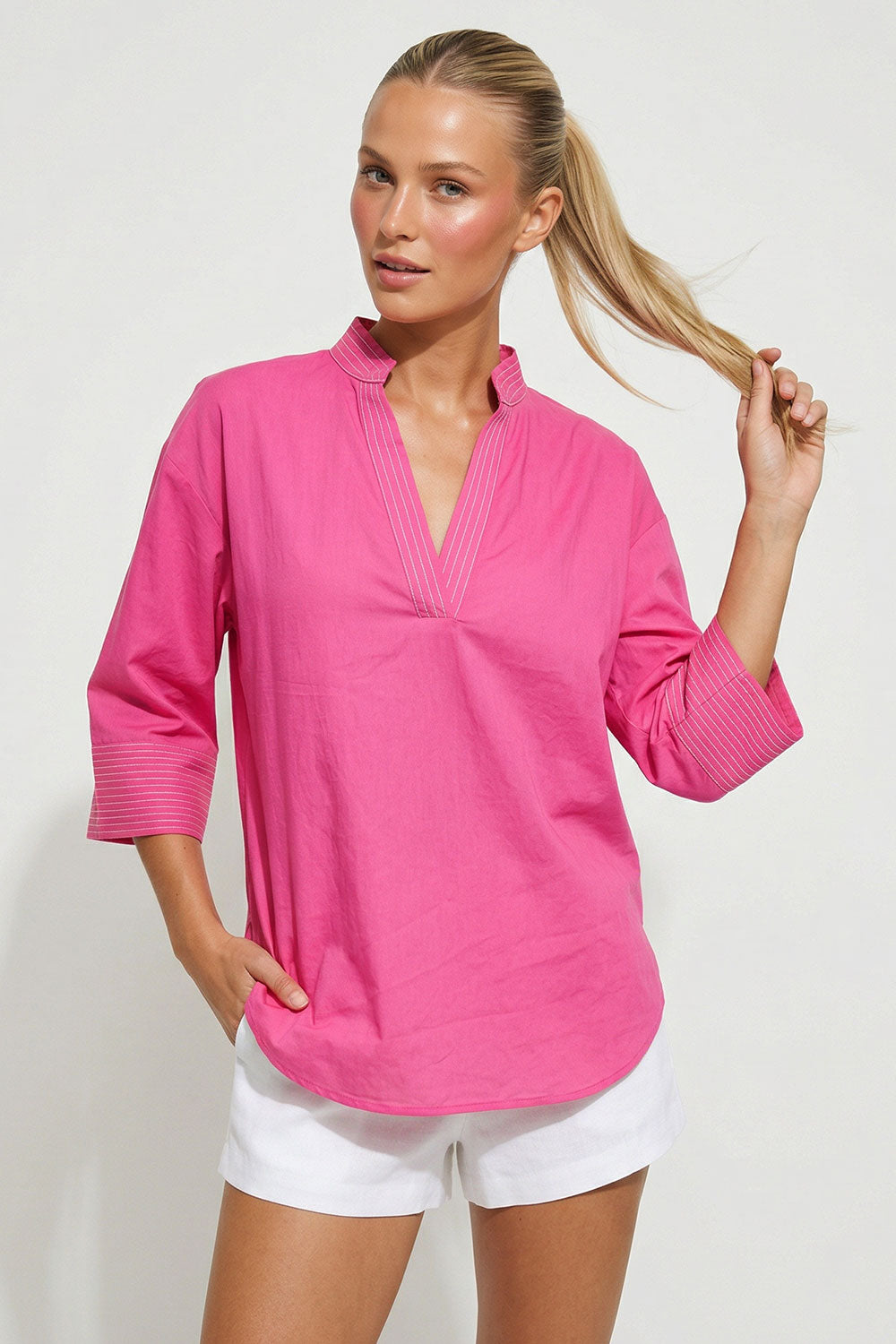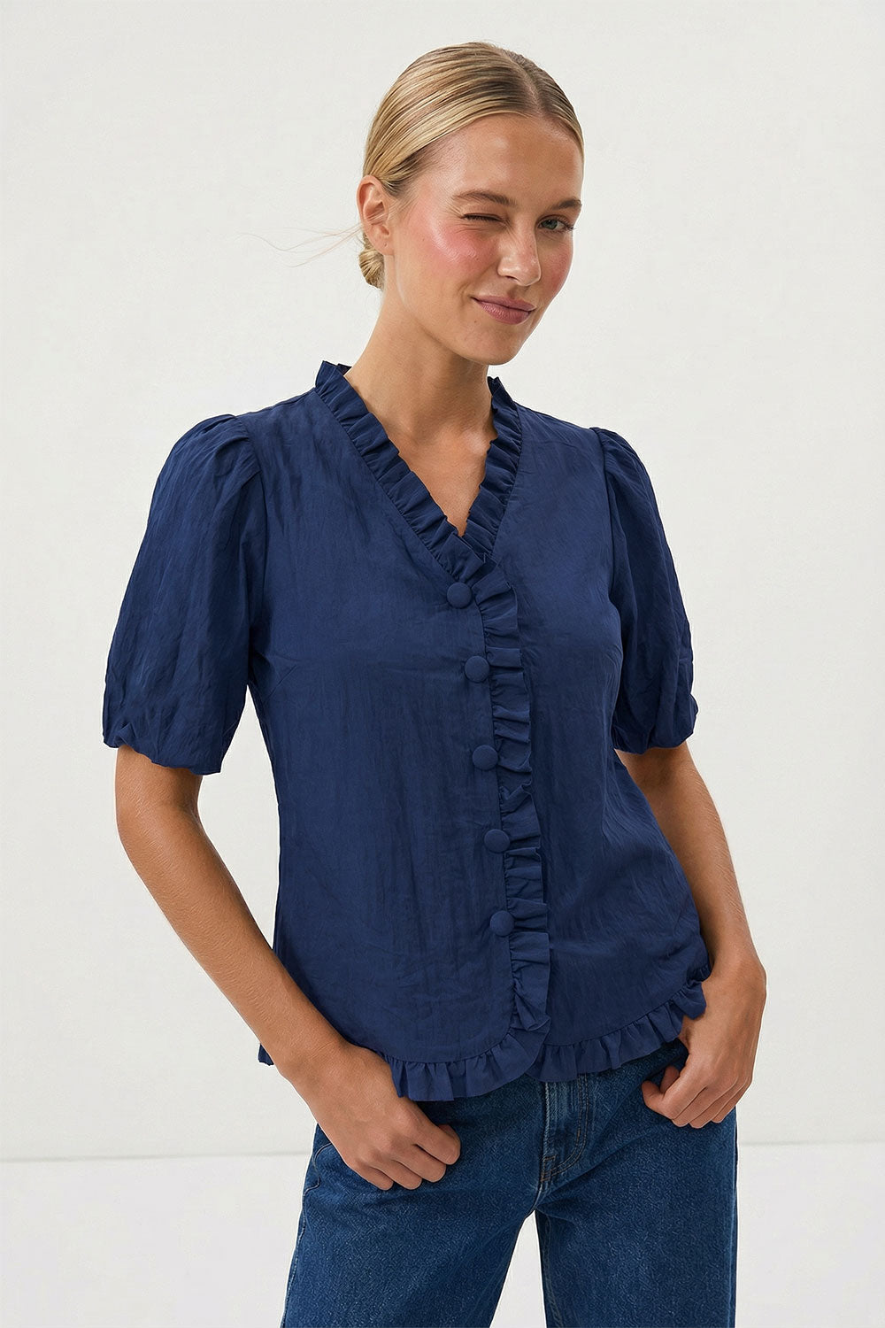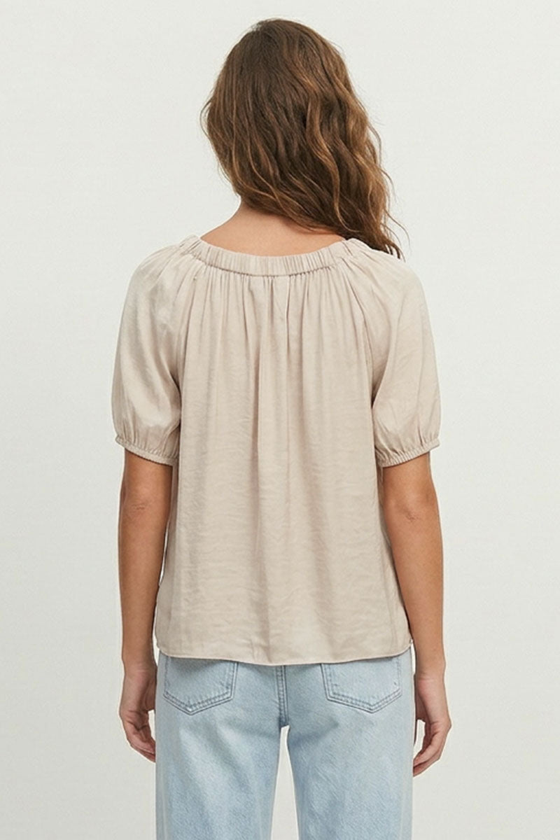 Half Sleeve Hi-lo Bubble Hem Blouse