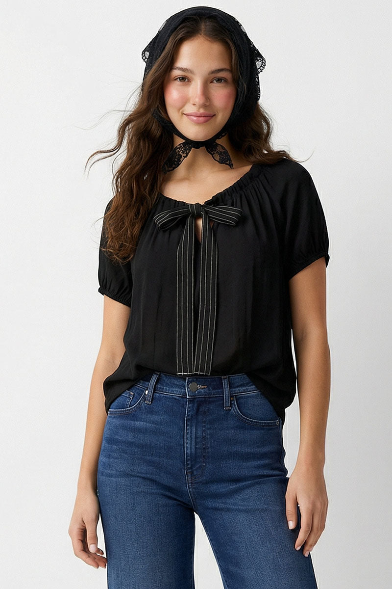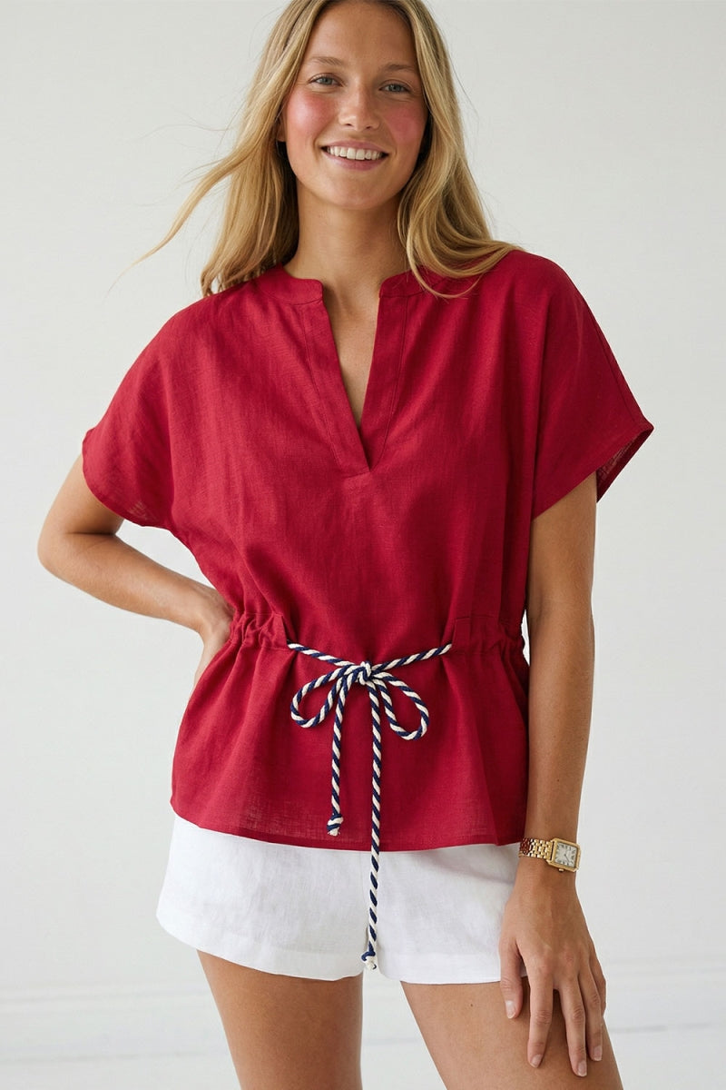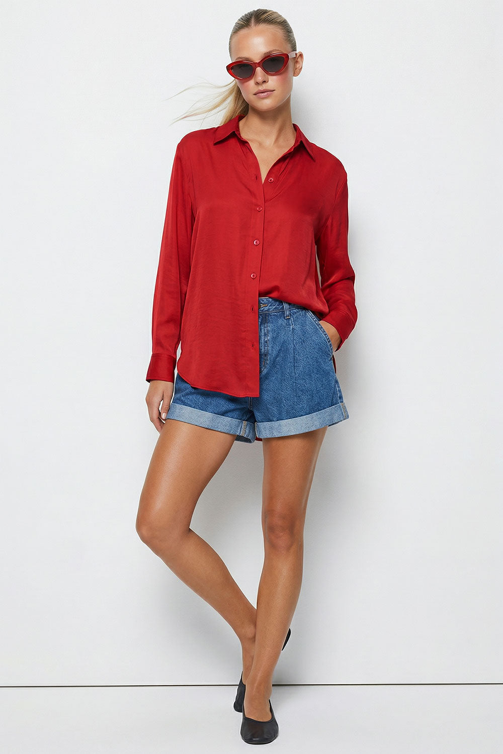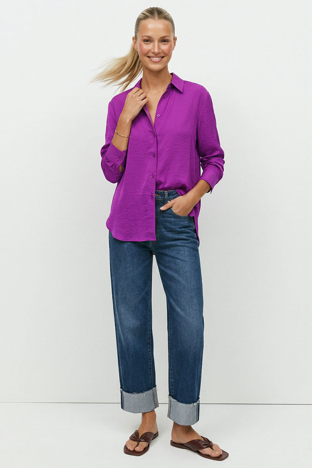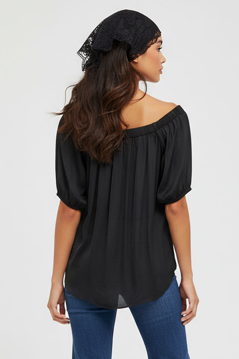 Half Sleeve Hi-lo Bubble Hem Blouse