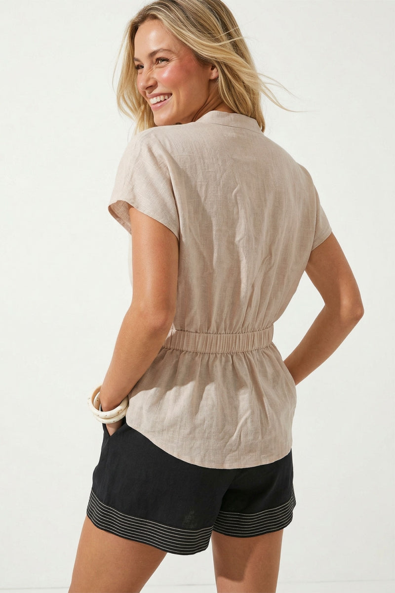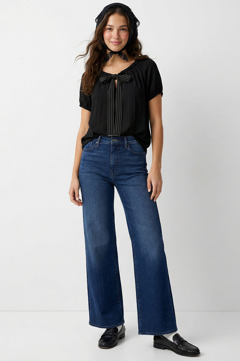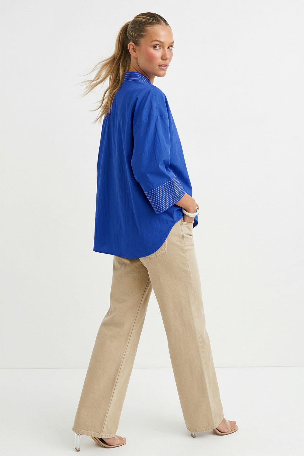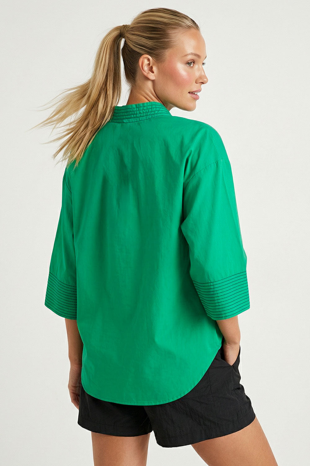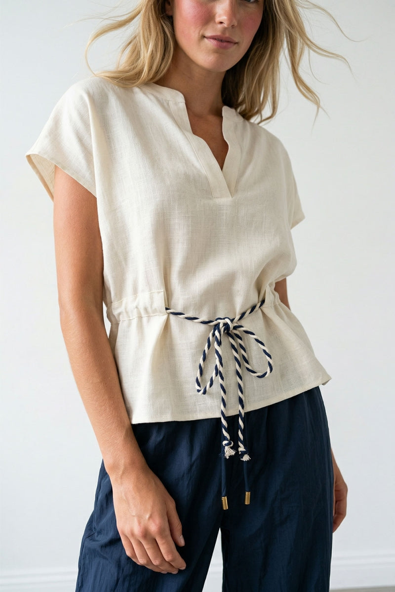 Half Sleeve Hi-lo Bubble Hem Blouse