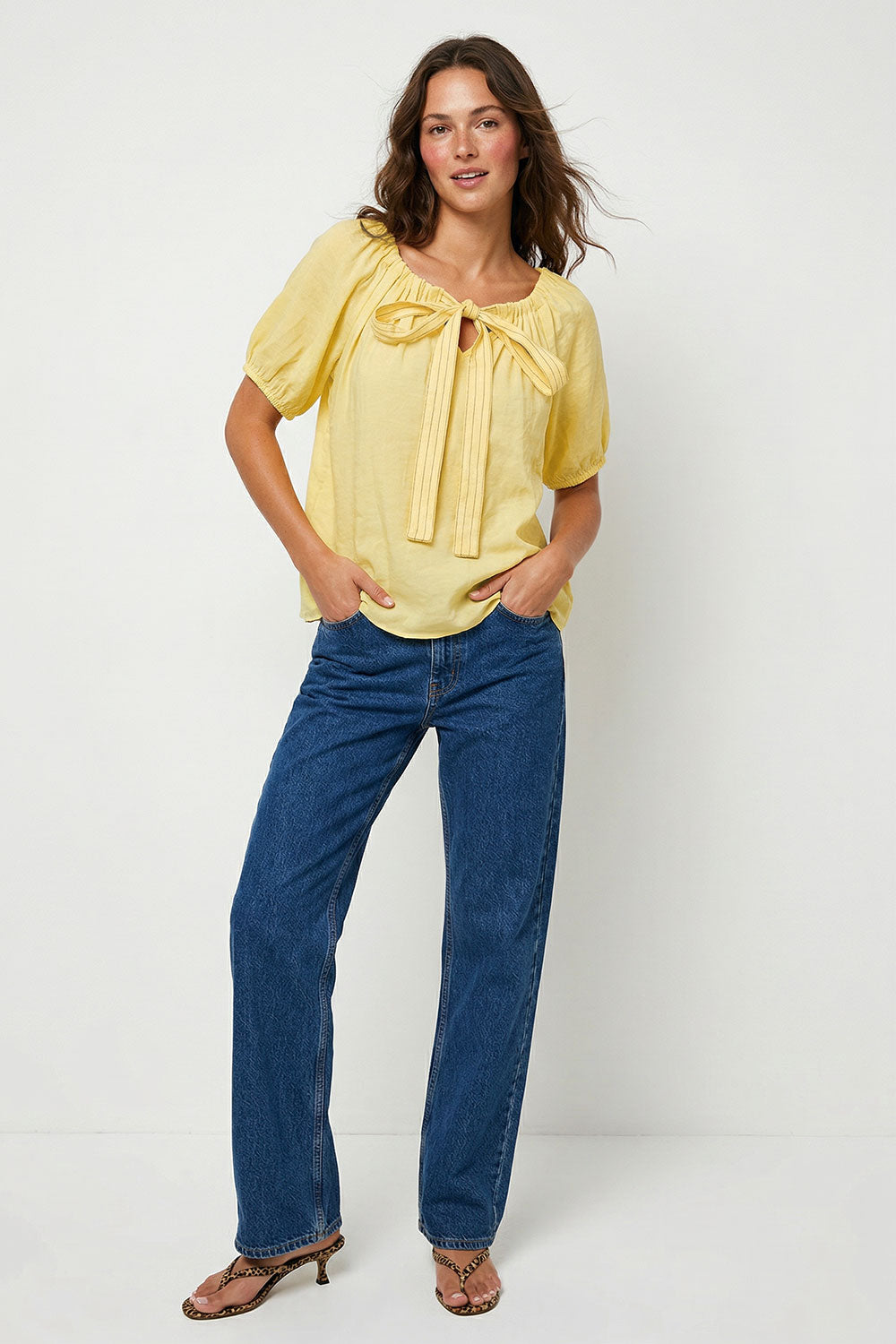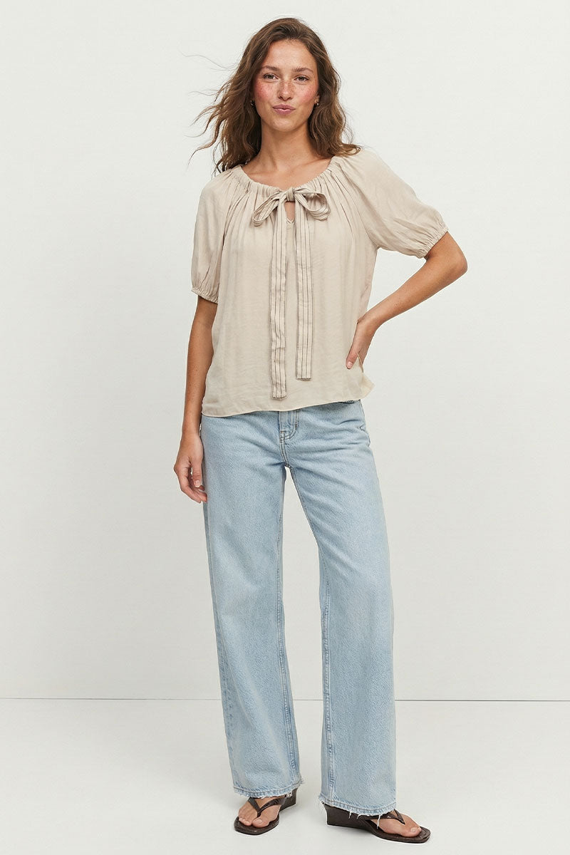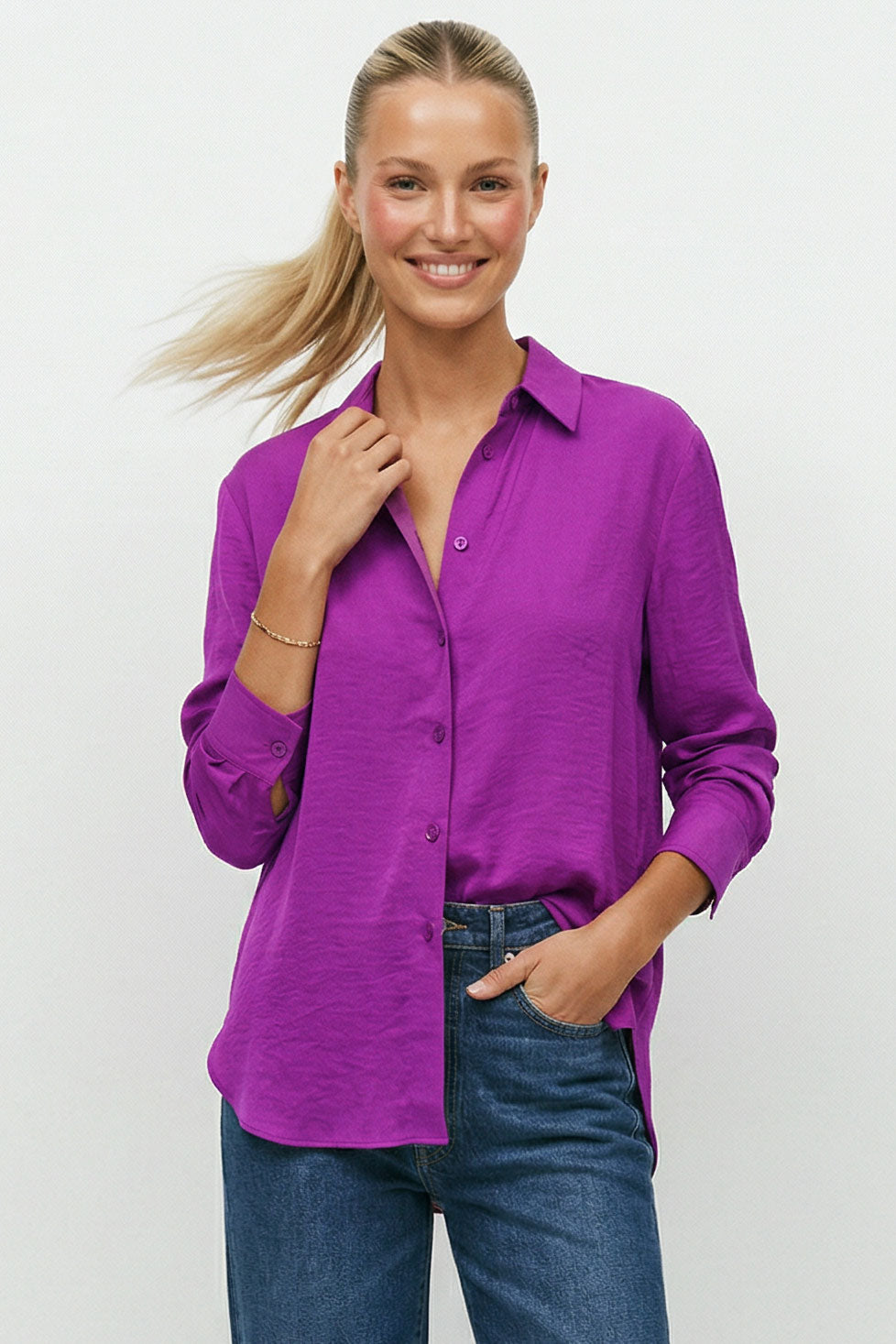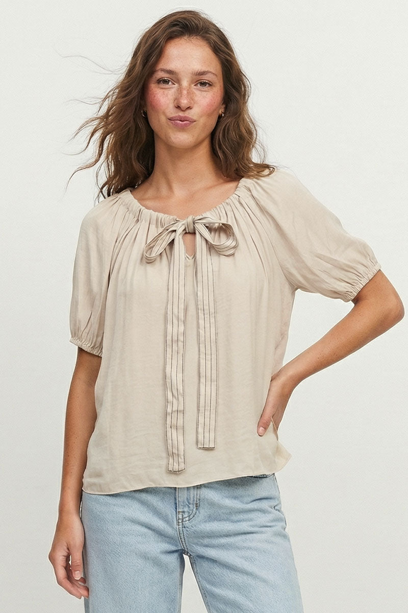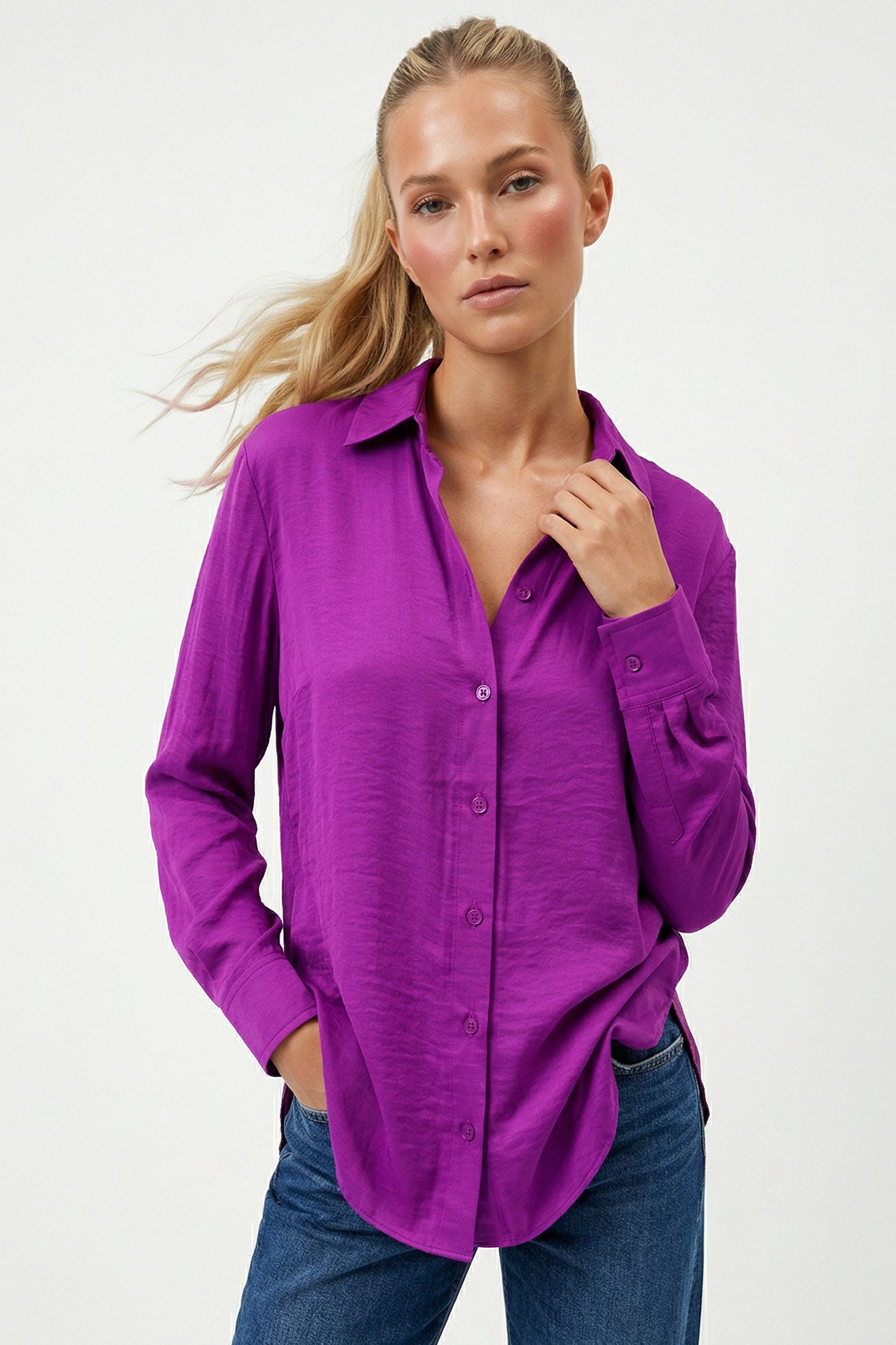 Half Sleeve Hi-lo Bubble Hem Blouse
