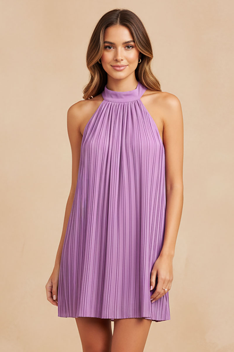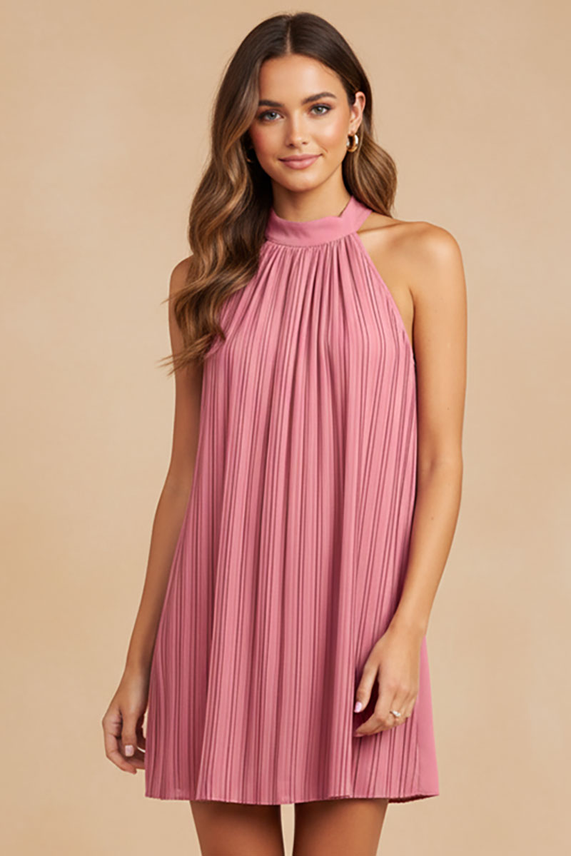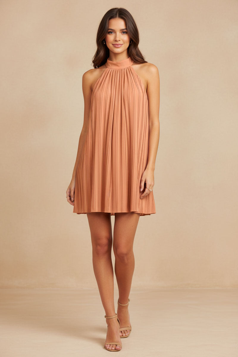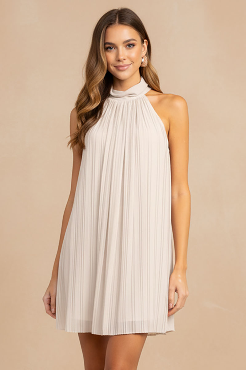 Pleated High Neck Dress - SP