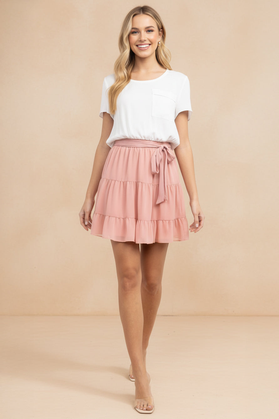 Short Sleeve Two-fer Midi Dress