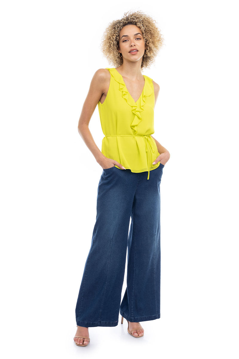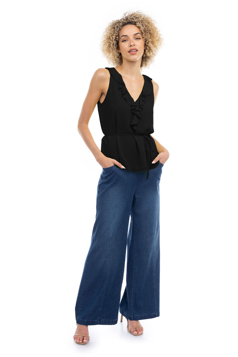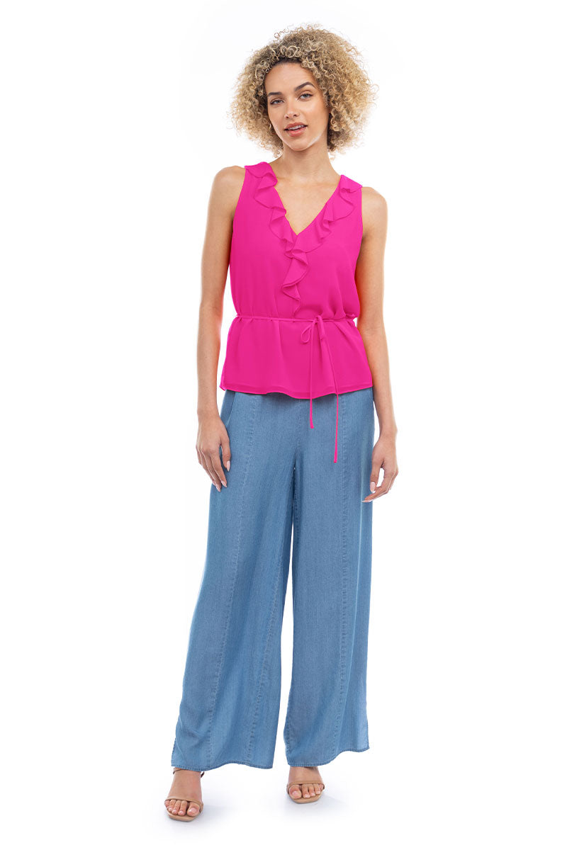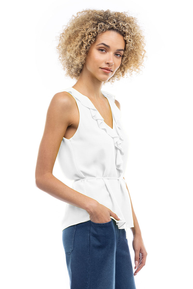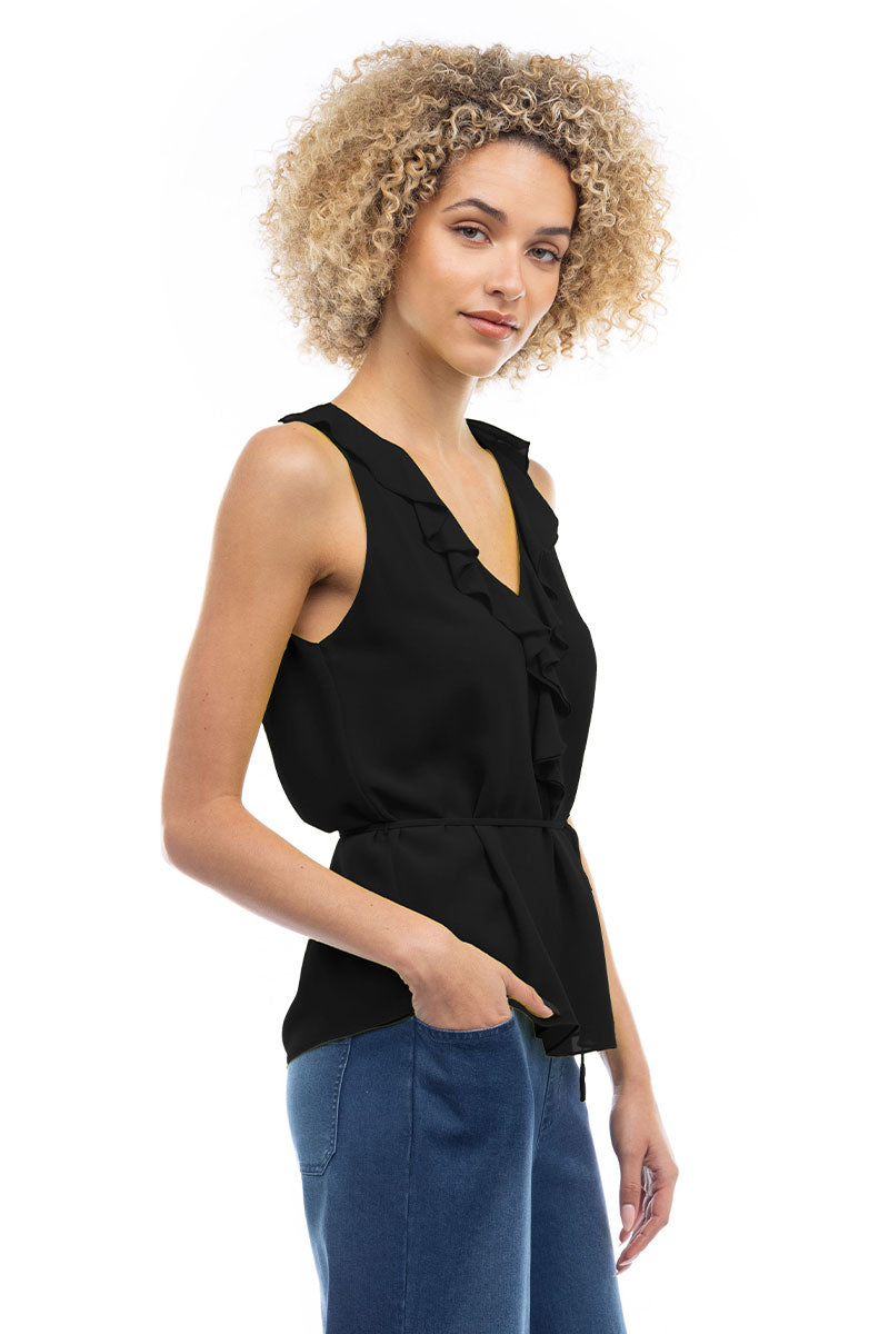 Ruffle V-Neck Tank With Waist Tie