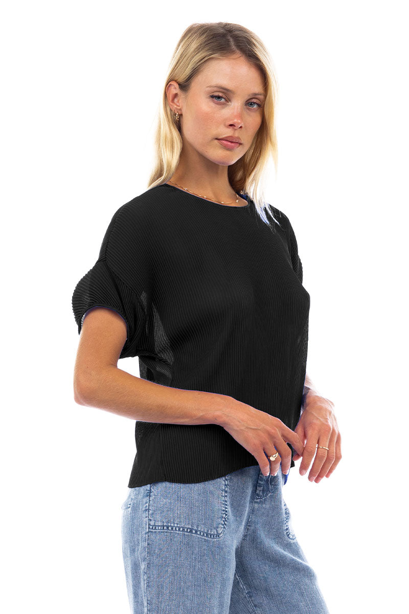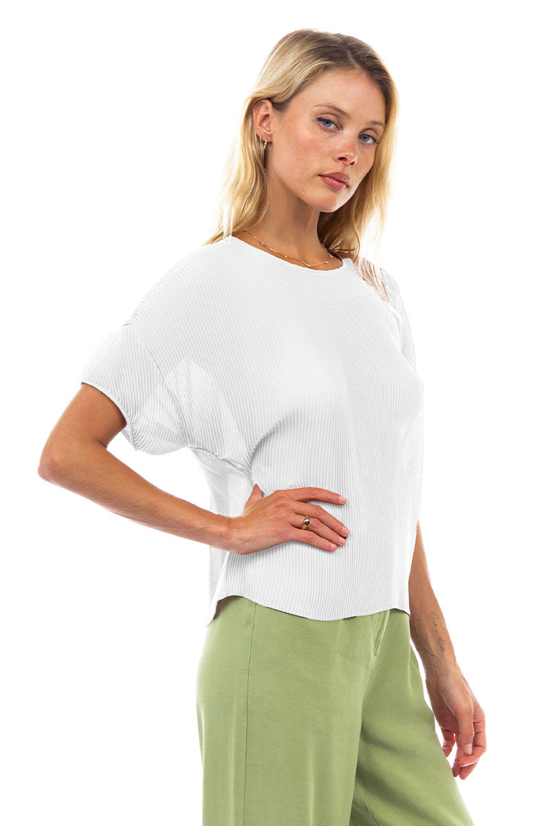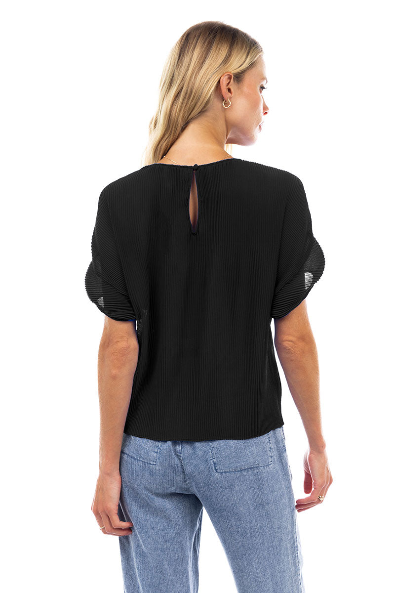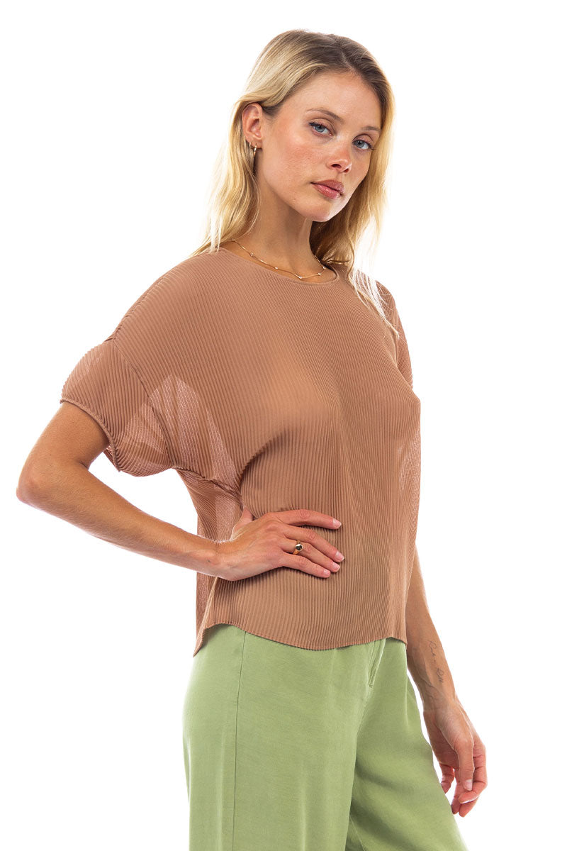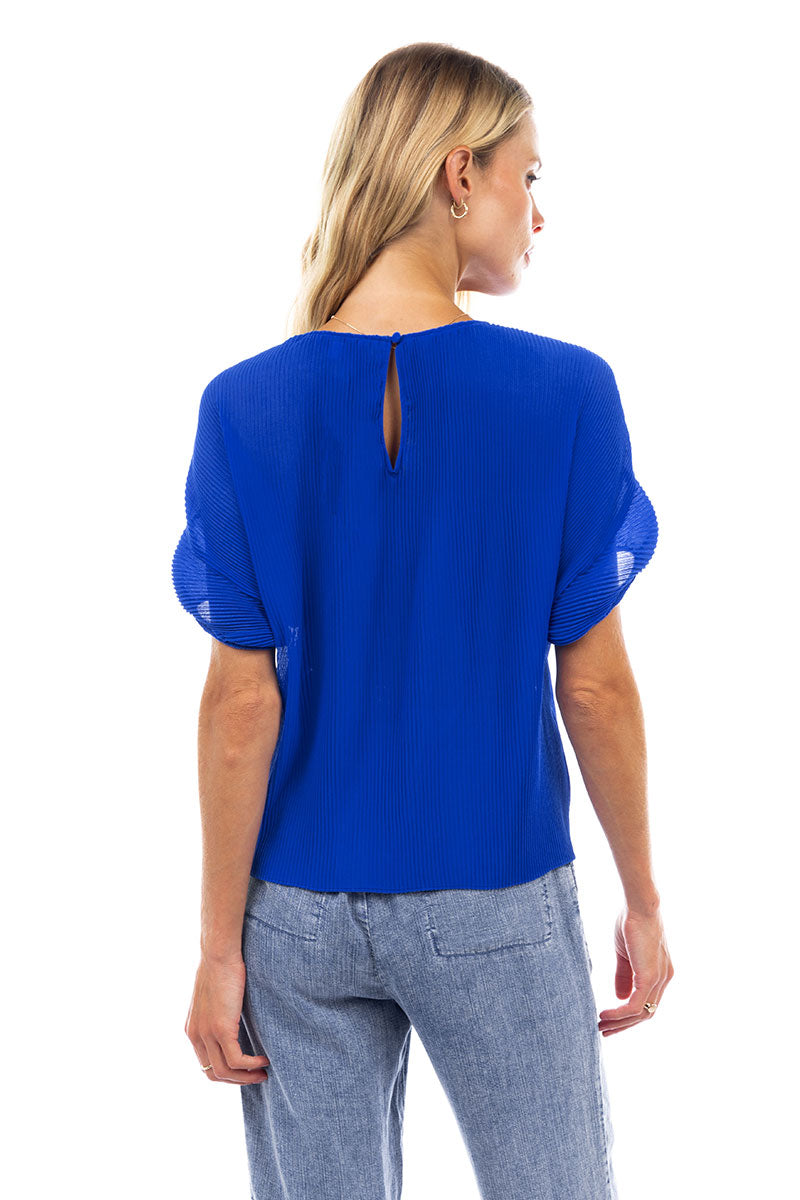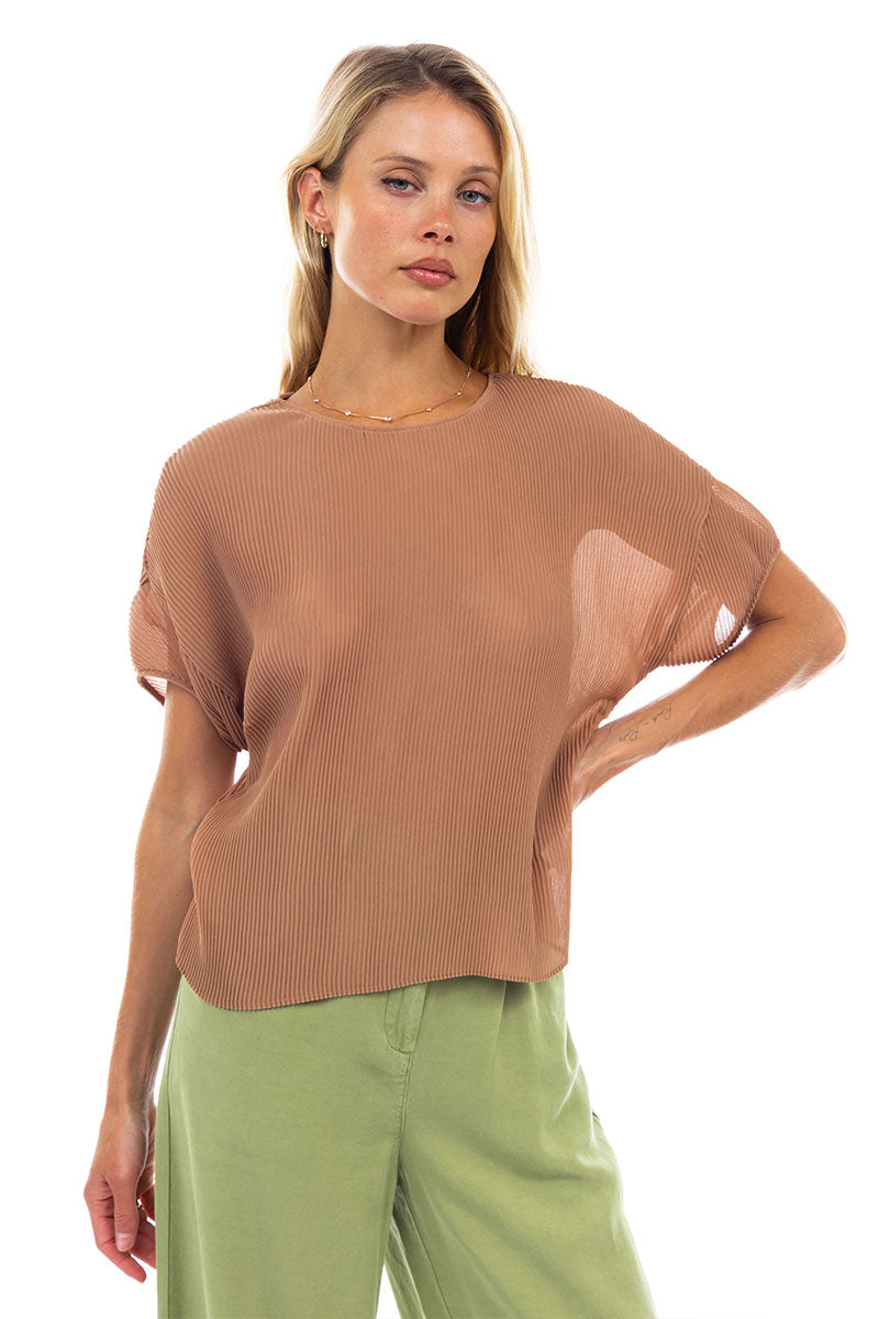Sheer Pleated Short Sleeve Blouse