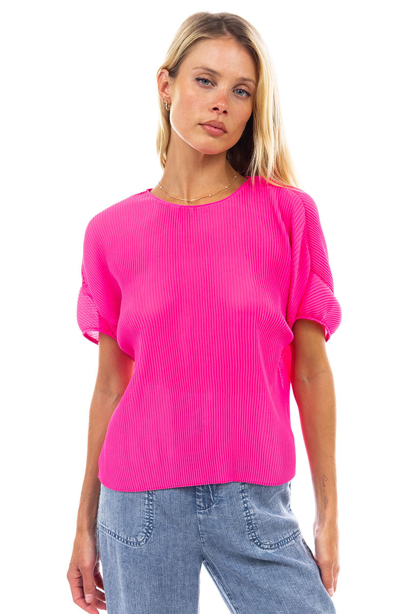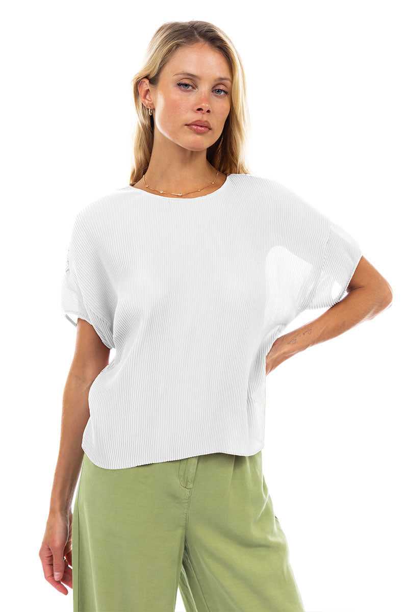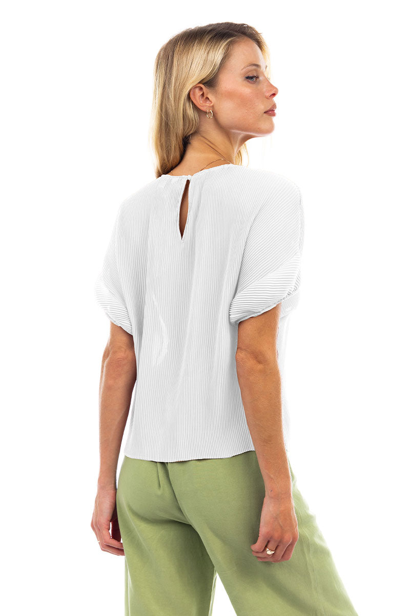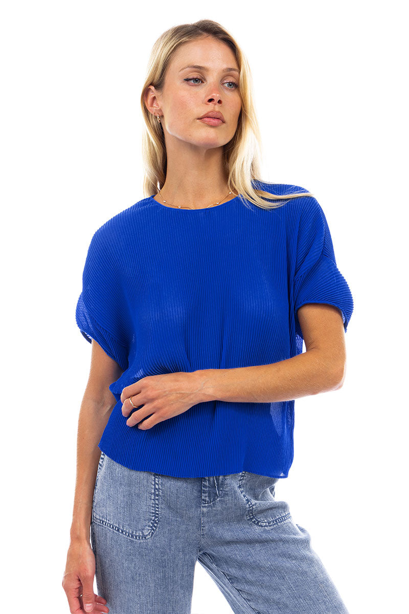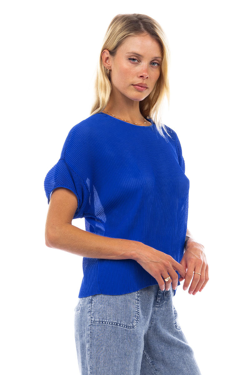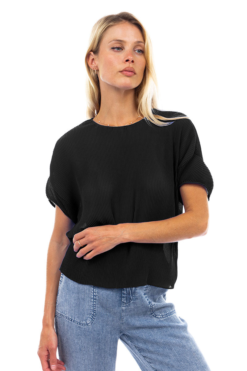 Sheer Pleated Short Sleeve Blouse