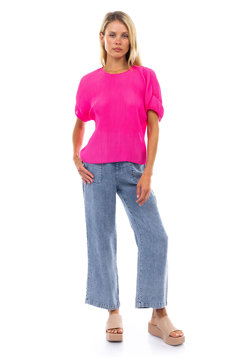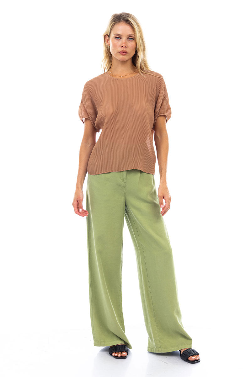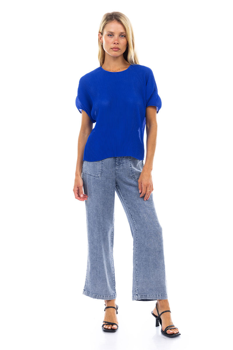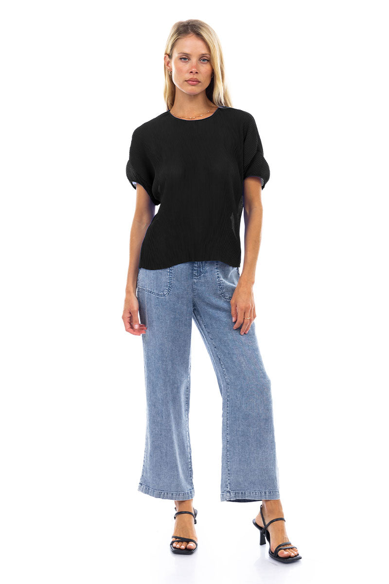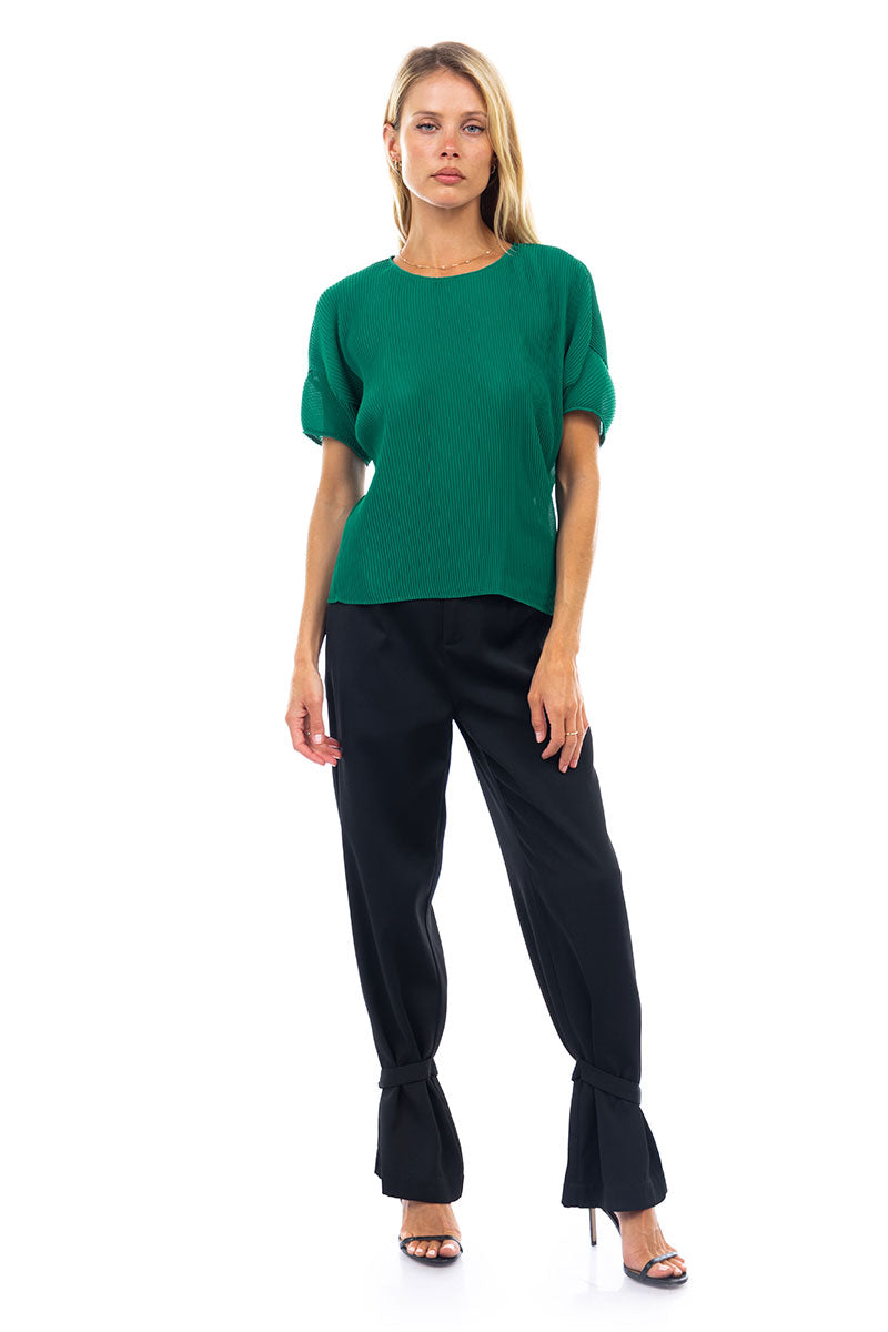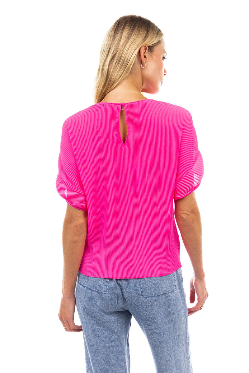 Sheer Pleated Short Sleeve Blouse