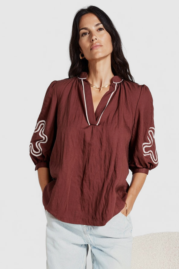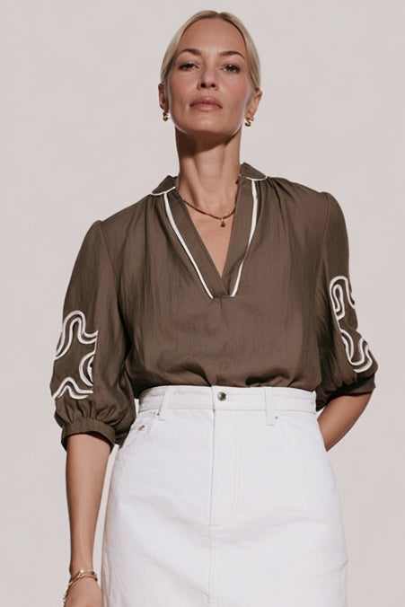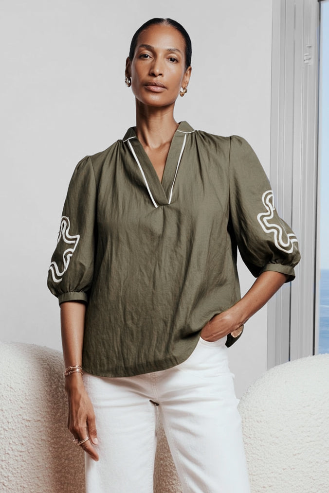 ╴Women's 3/4 Sleeve Abstract Appliqué Blouse