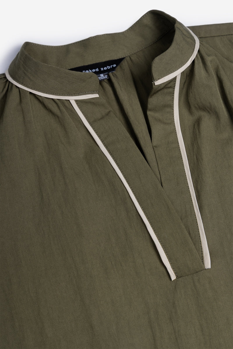 ╴Lightweight woven fabric with a relaxed, airy fit.