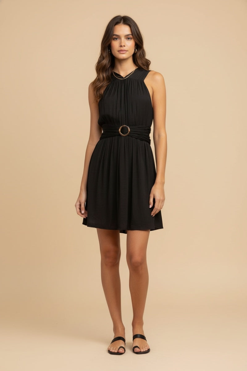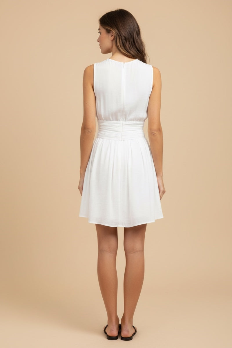 Sleeveless Mini Flutter Dress With Strap Accent