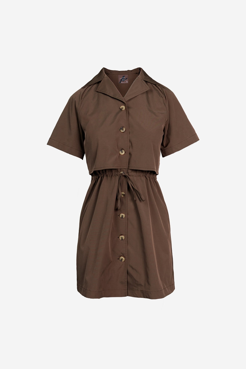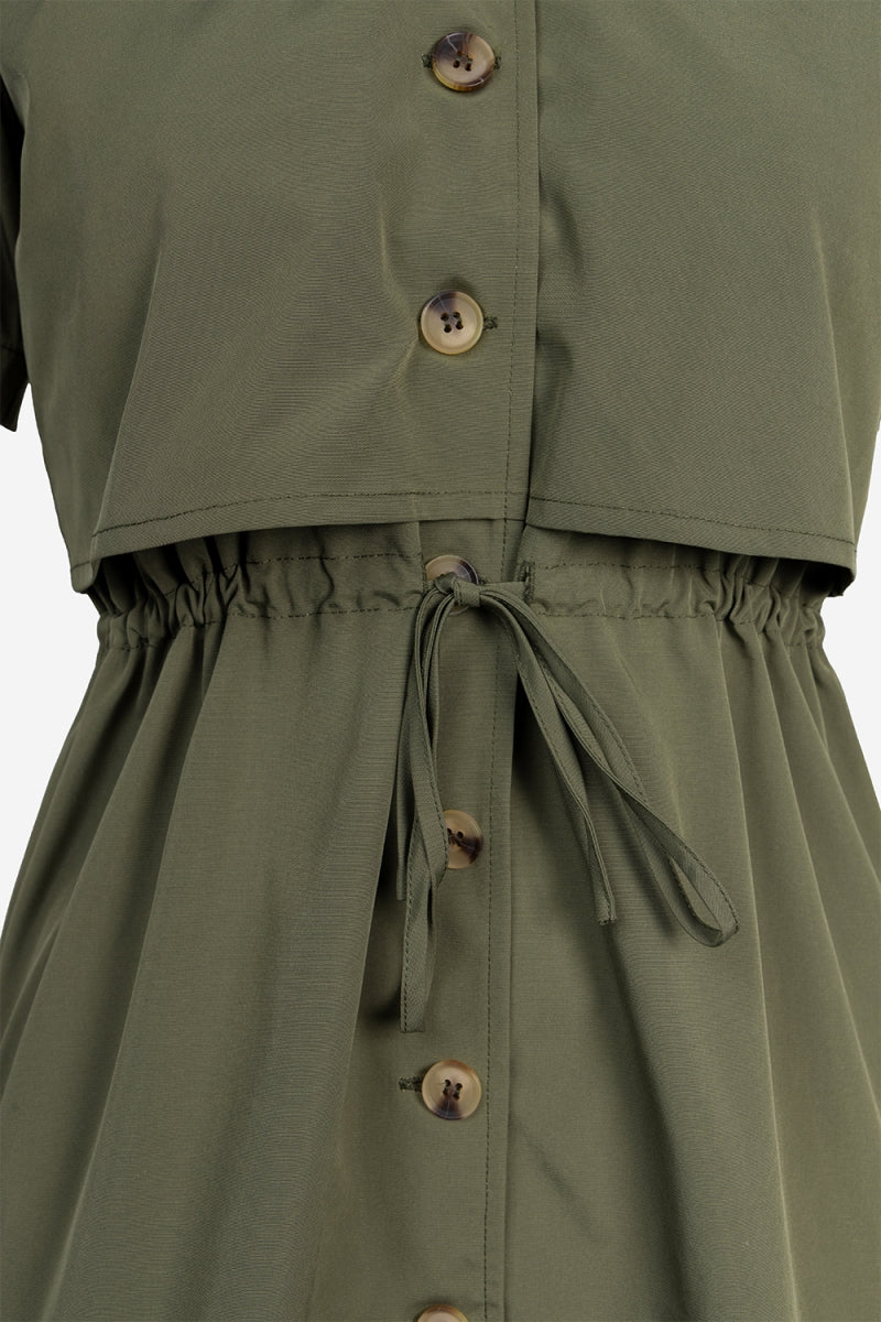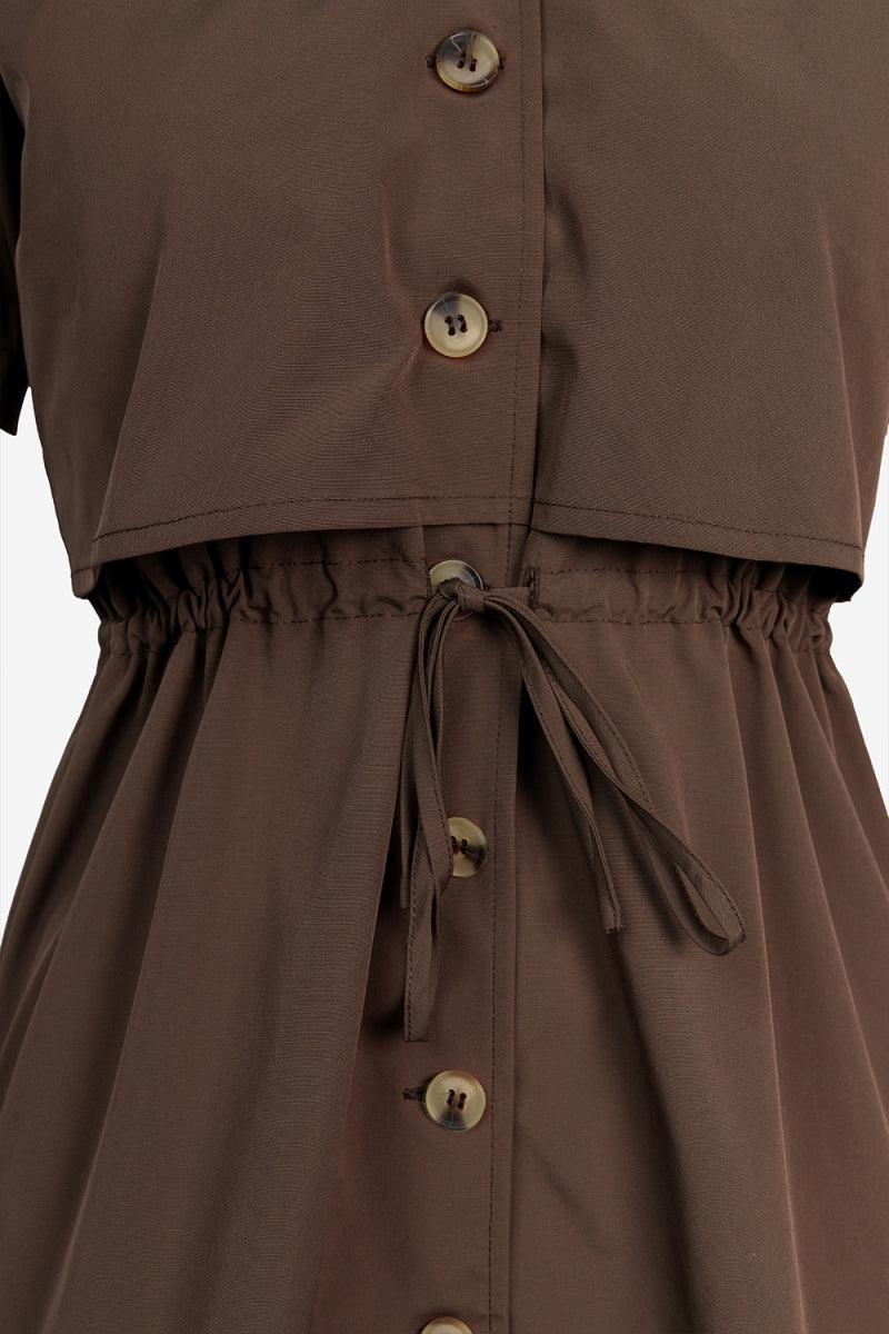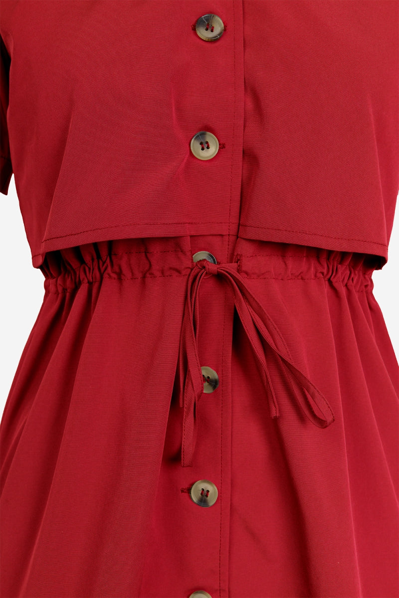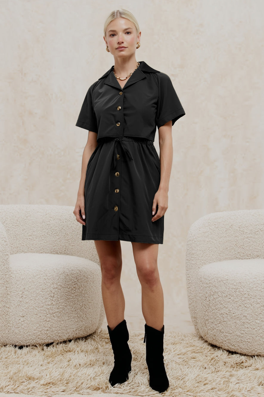 ╴Women's Button Front Mini Shirt Dress With Drawstring Waist