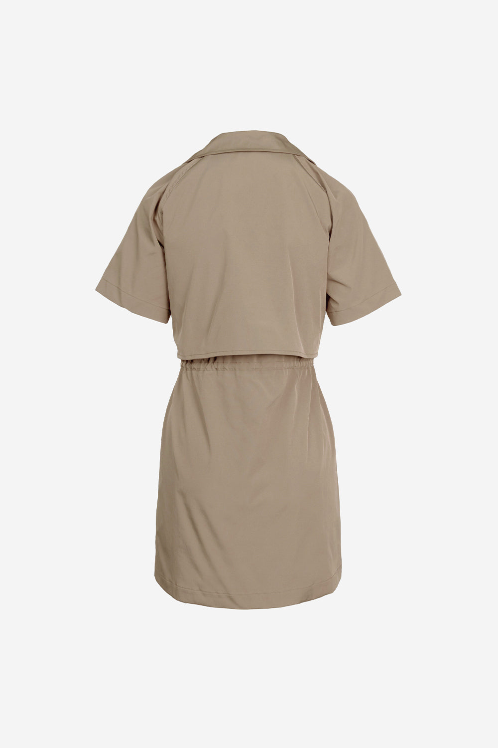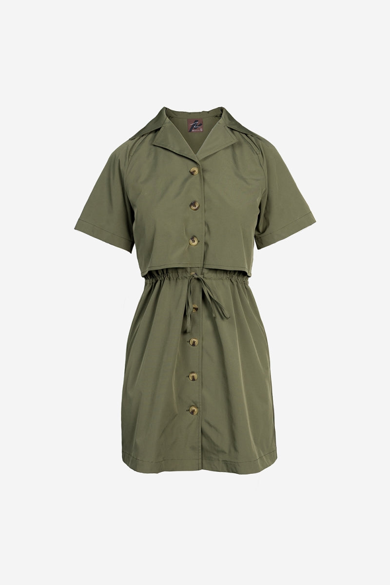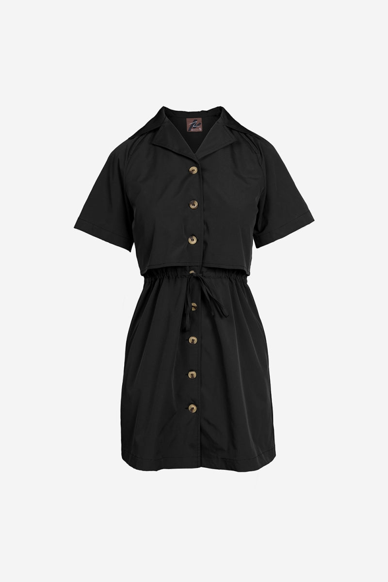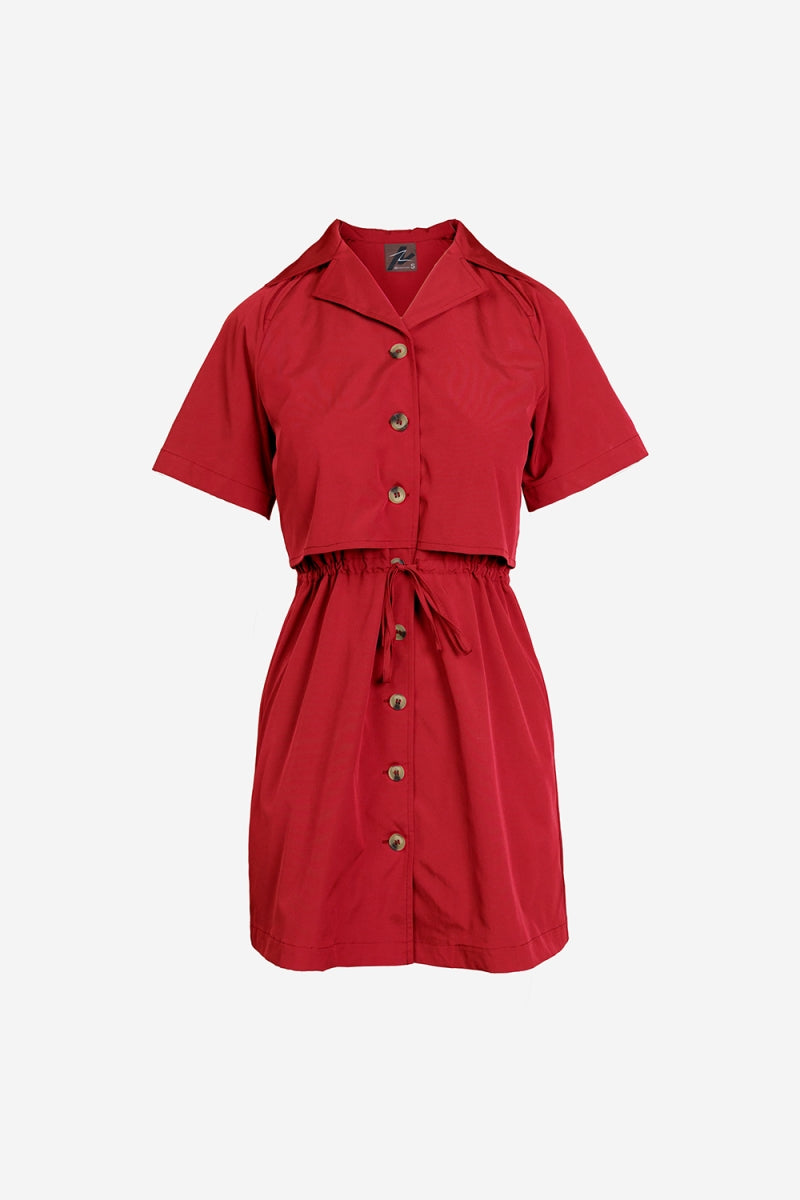 ╴Women's Button Front Mini Shirt Dress With Drawstring Waist