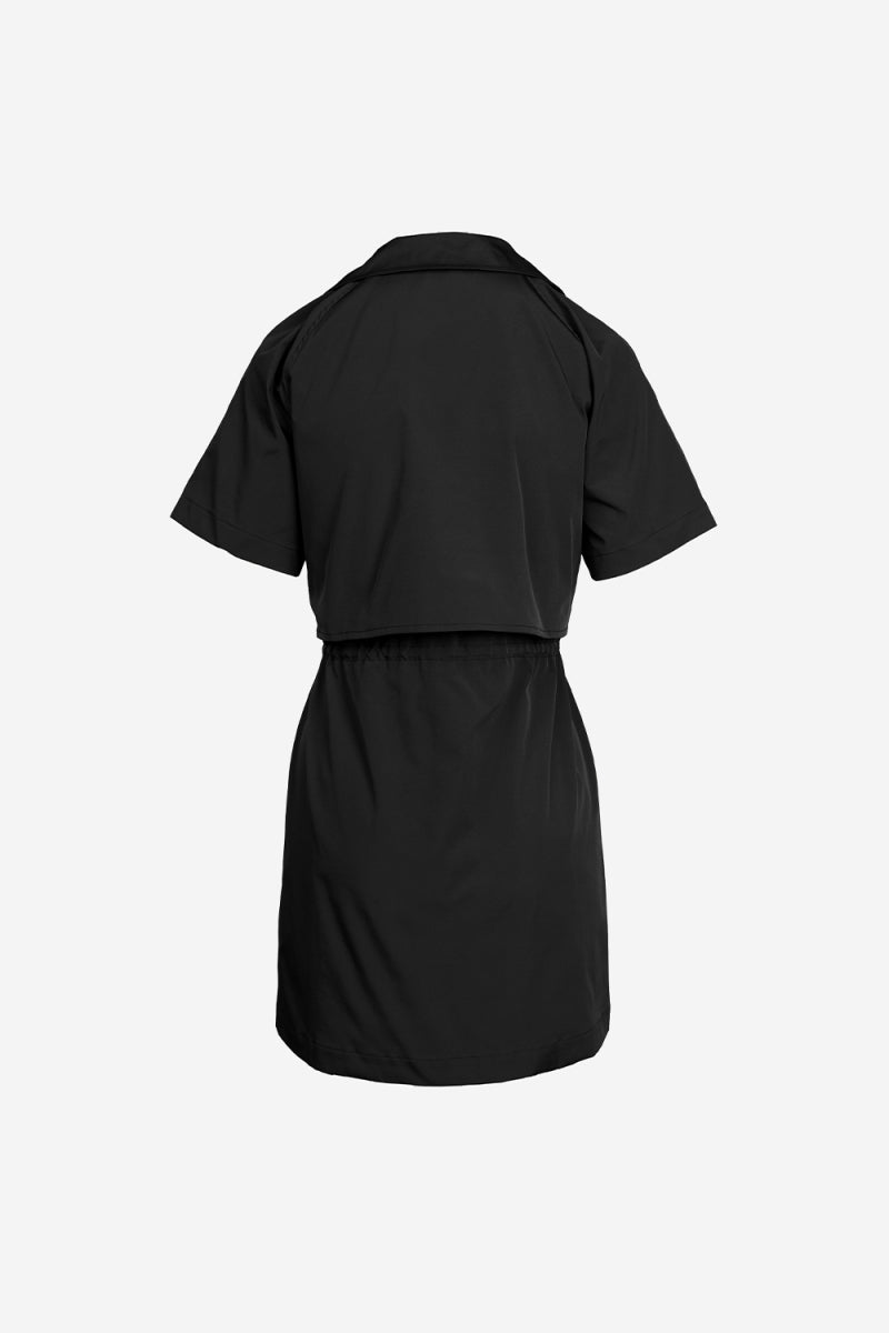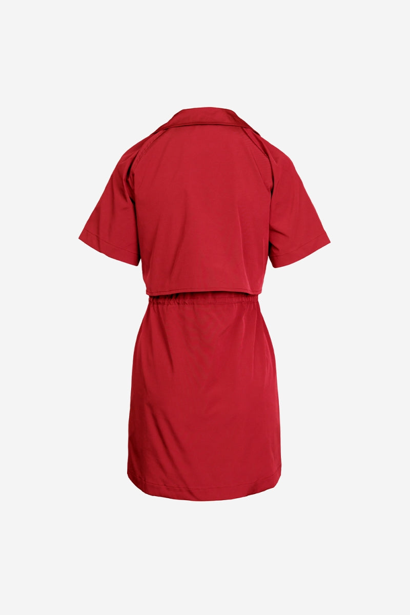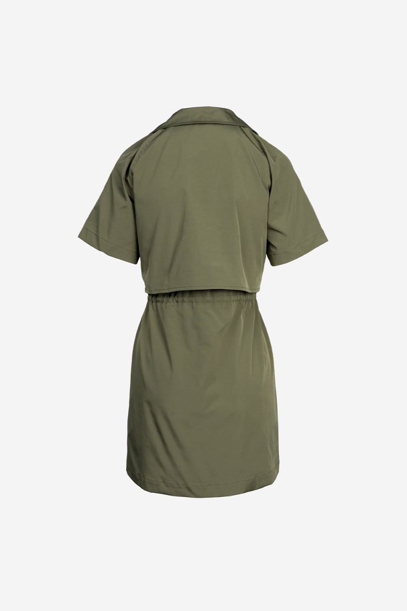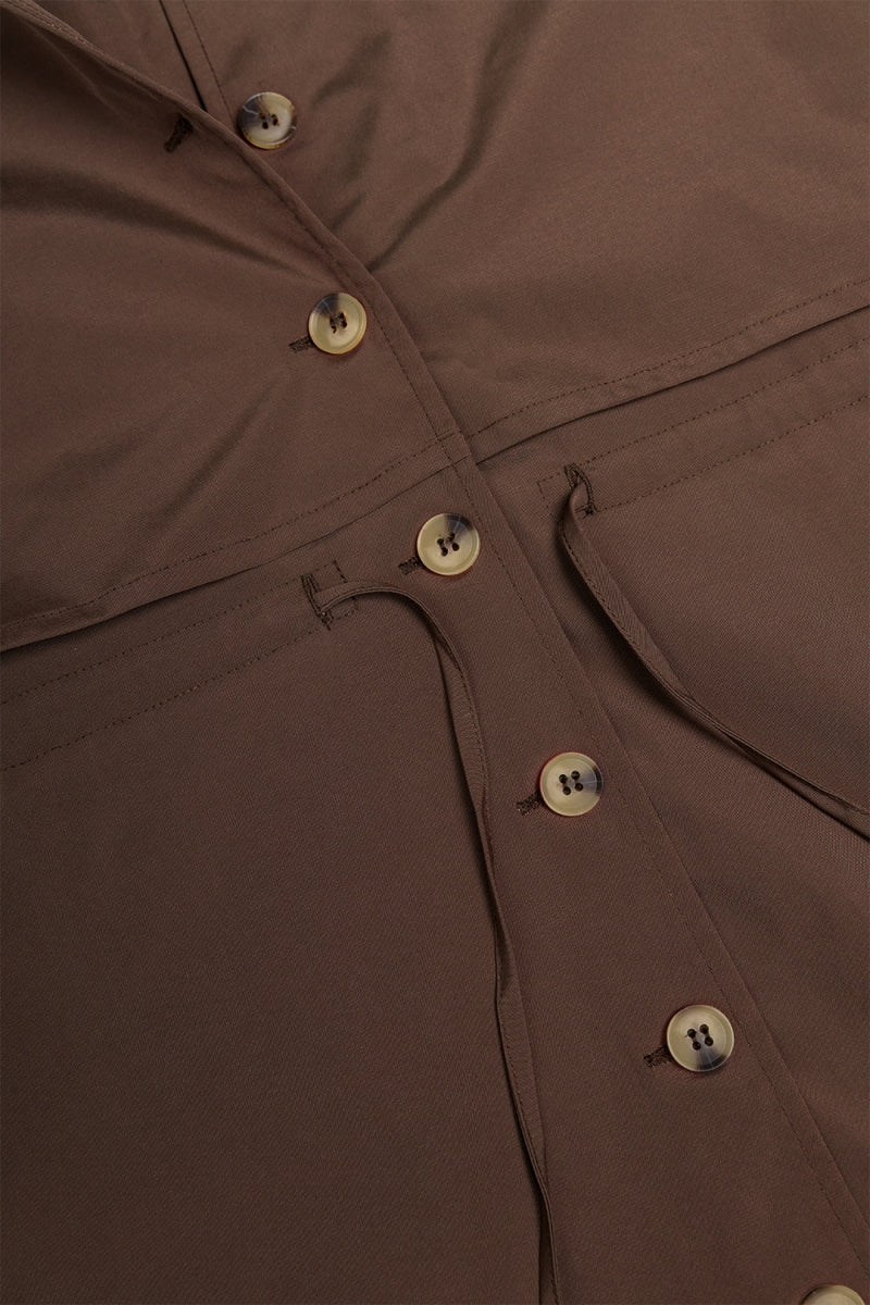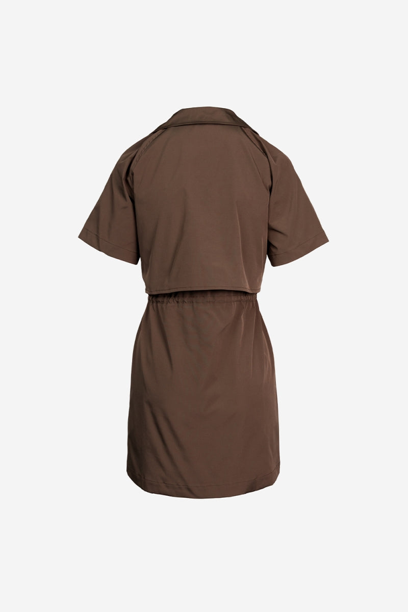 ╴Women's Button Front Mini Shirt Dress With Drawstring Waist